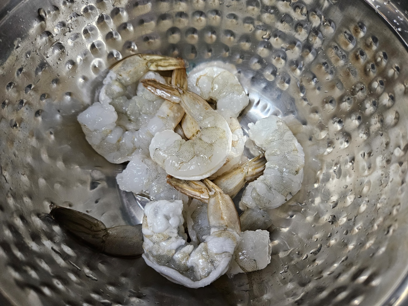 0) 냉동새우 미리 꺼내서 물에 한 번 씻어서 준비, 마늘도 썰어서 준비