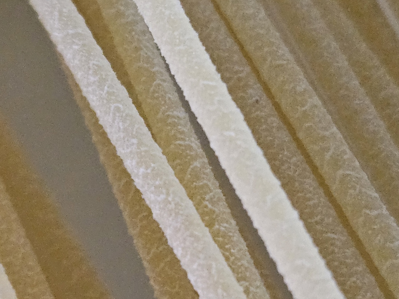 1인분 정도의 파스타를 꺼냈습니다. 파스타 표면의 밀가루 덕분에 거칠거칠한 느낌이 신기했습니다. 시중의 일반 파스타는 보통 매끈한 질감입니다.