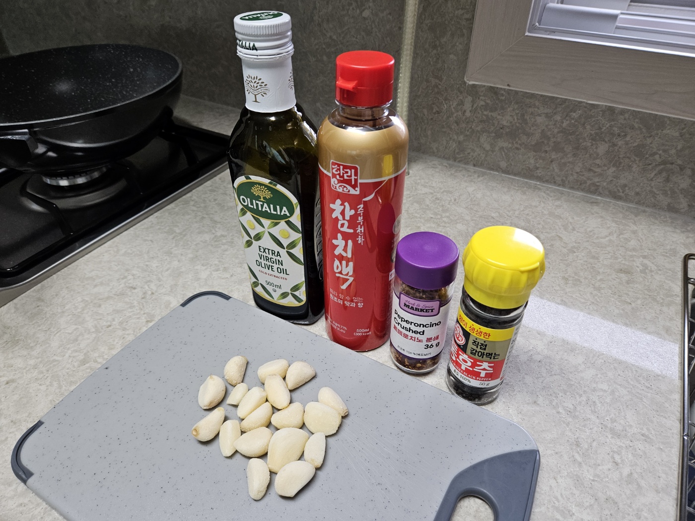 (다진 마늘, 편마늘 상관없어요. 저는 편마늘을 사용했습니다.)