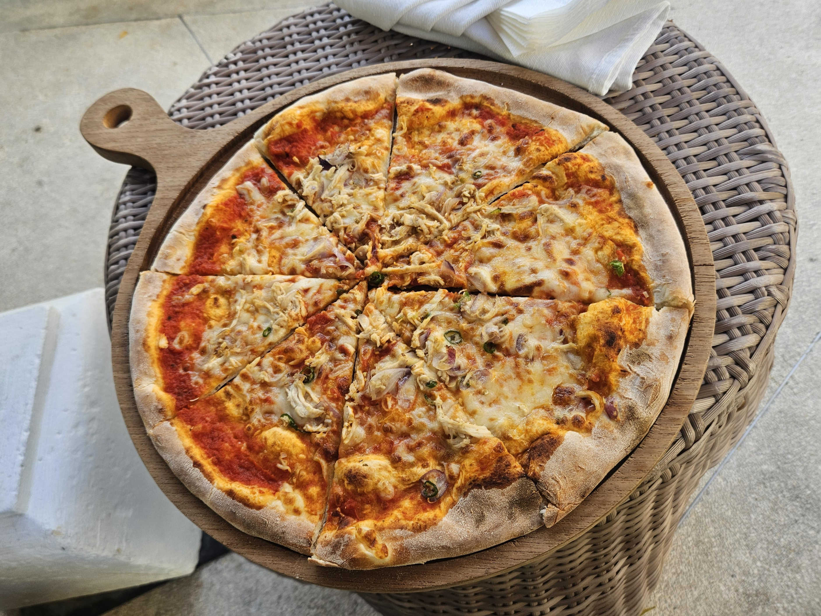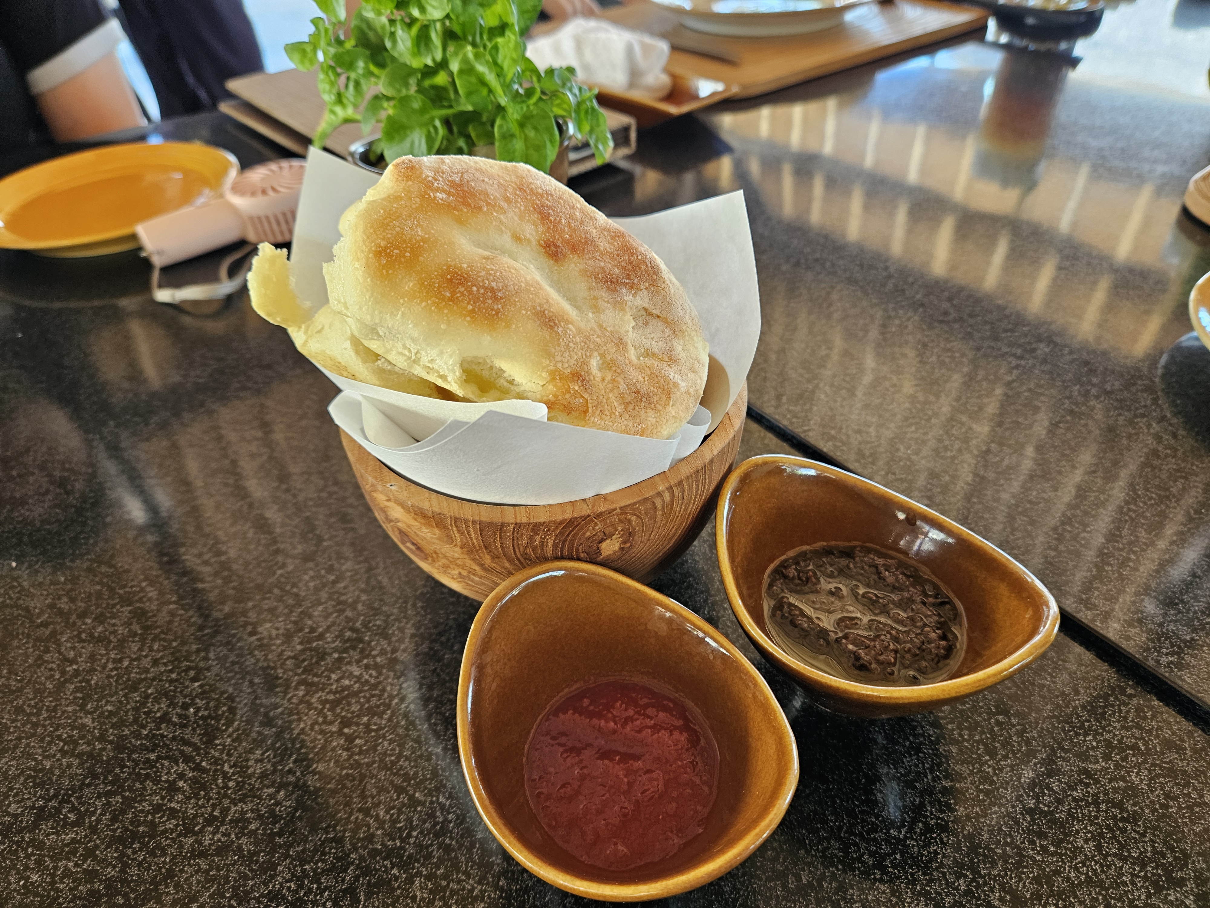 아야나 리조트 메인 로비에 있는 이탈리안 레스토랑입니다. 마르게리타 피자, 디아볼라 피자, 아야나 리조트 시그니처 모히또 주문했고, 제 입맛에 아야나 시그니처 모히또는 평범했습니다. 아쉬움에 기본 모히또가 생각나는 맛이었어요. 피자는 맛있었습니다. 두 가지 소스와 제공되는 식전 빵이 별미더라고요. 맛있었습니다.