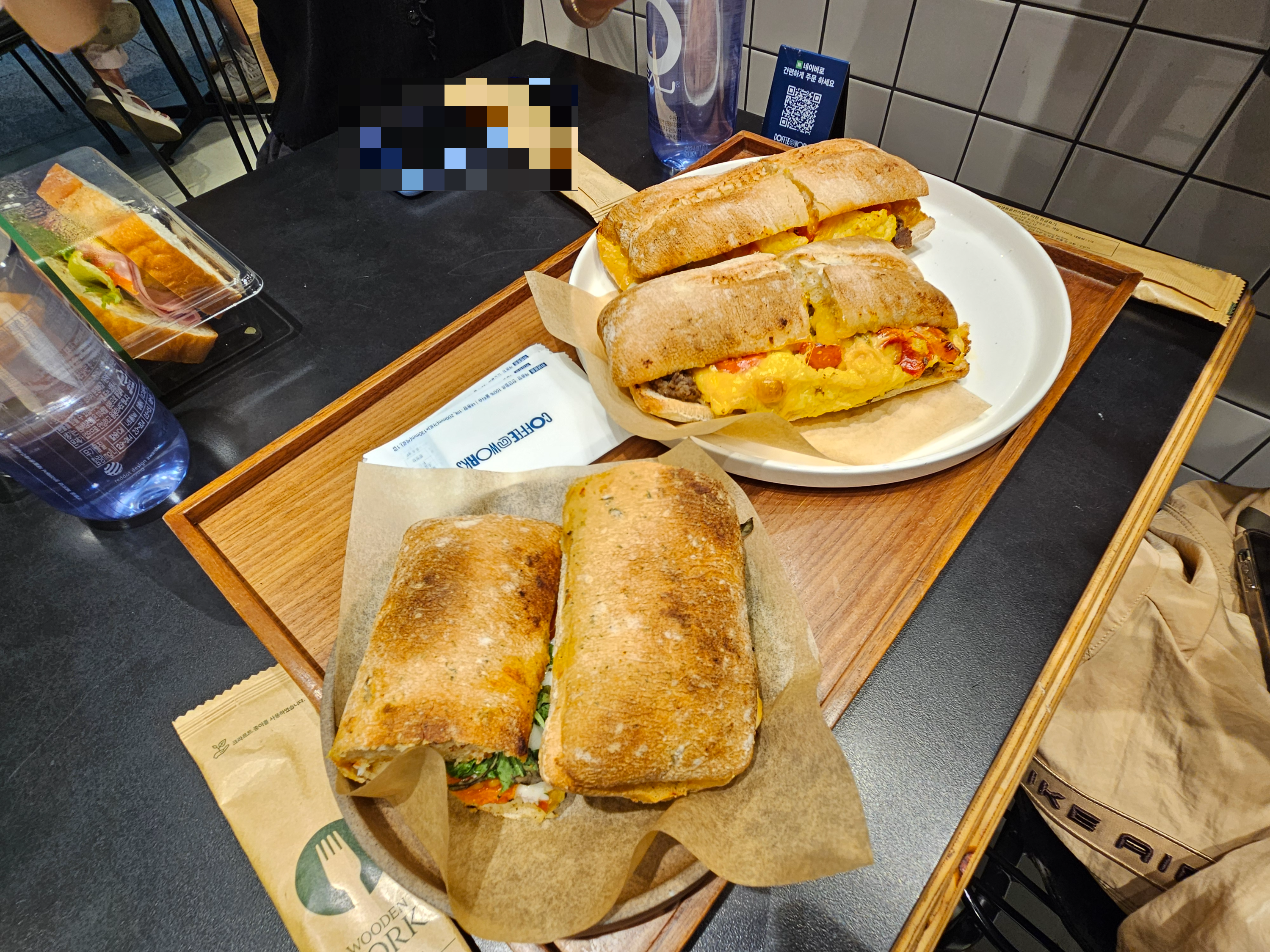 인천 공항 면세구역에는 24시간 식당이 몇 없는데, 가려고 했던 식당(한식, 뜨거운 국물을 먹고 비행기를 타고 싶었음)은 재료 소진으로 주문이 불가능하다고 하여 해당 식당과 가장 가까이에 있던 coffe@works에서 아침을 먹었습니다. 아침 일찍 문 여는 식당이 많이 없어서 줄 서서 주문했어요. (주문할 동안 자리 선점 필수)
