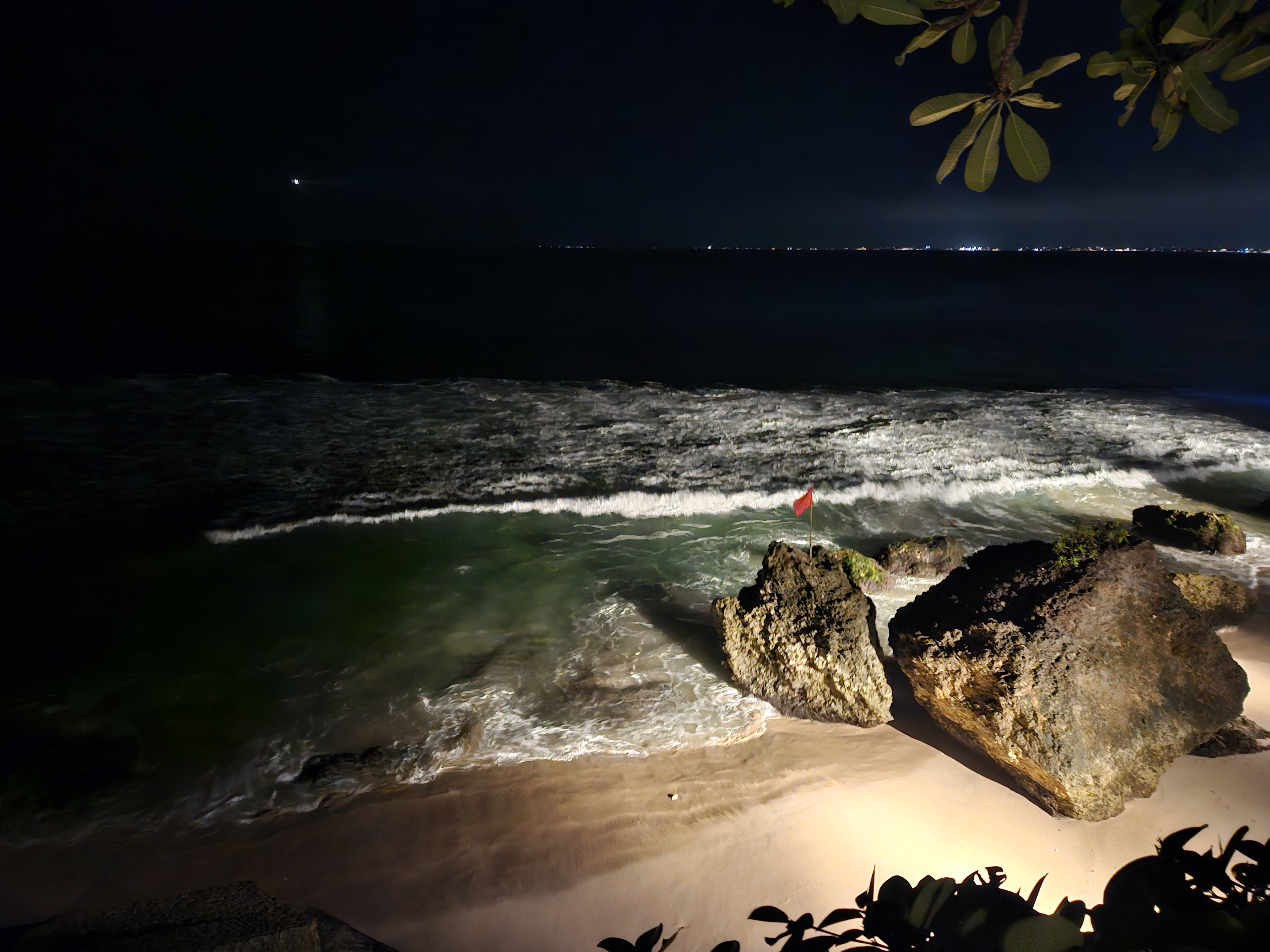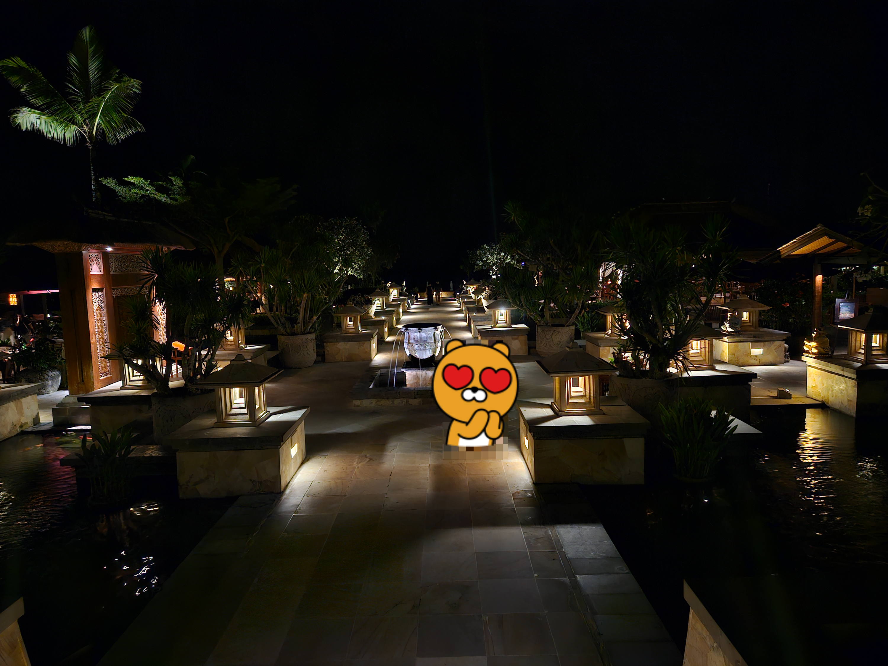 림바 와나 로비에서 아야나 메인 로비까지 트램을 타고 가서 밤 산책을 다녀왔습니다. 밤 10시의 리조트는 아주 조용하고 분위기 있었습니다. 밤바람도 시원하고, 락바쪽으로 나가니 거센 파도 소리도 들렸습니다.