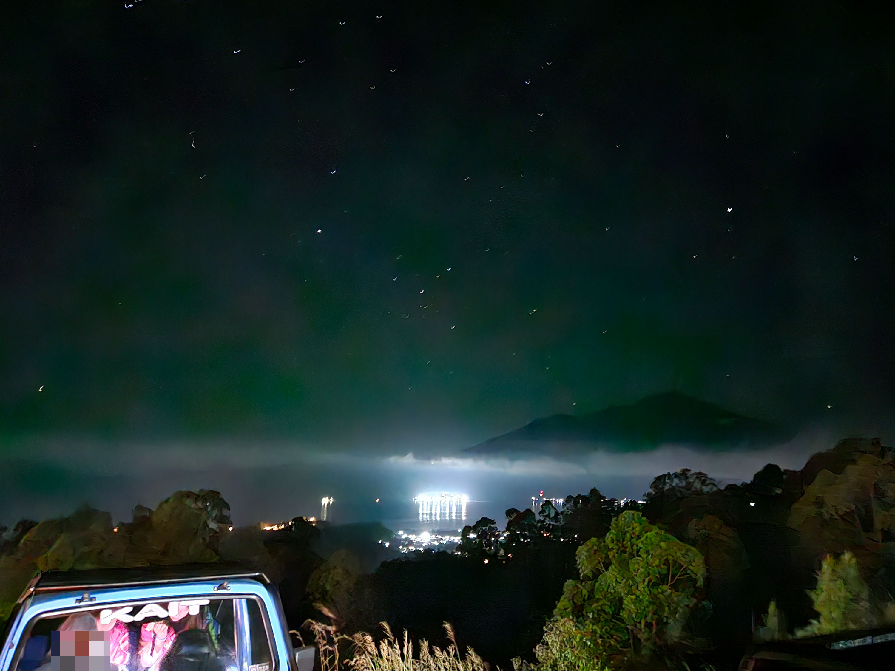 지프를 타고 경사진 산을 올라가는데 찍은 사진입니다. 엄청 많은 별들을 볼 수 있었어요. (별다른 장치 없이 흔들리는 차에서 이런 사진이 나오다니.. 갤럭시 대단해...😍)