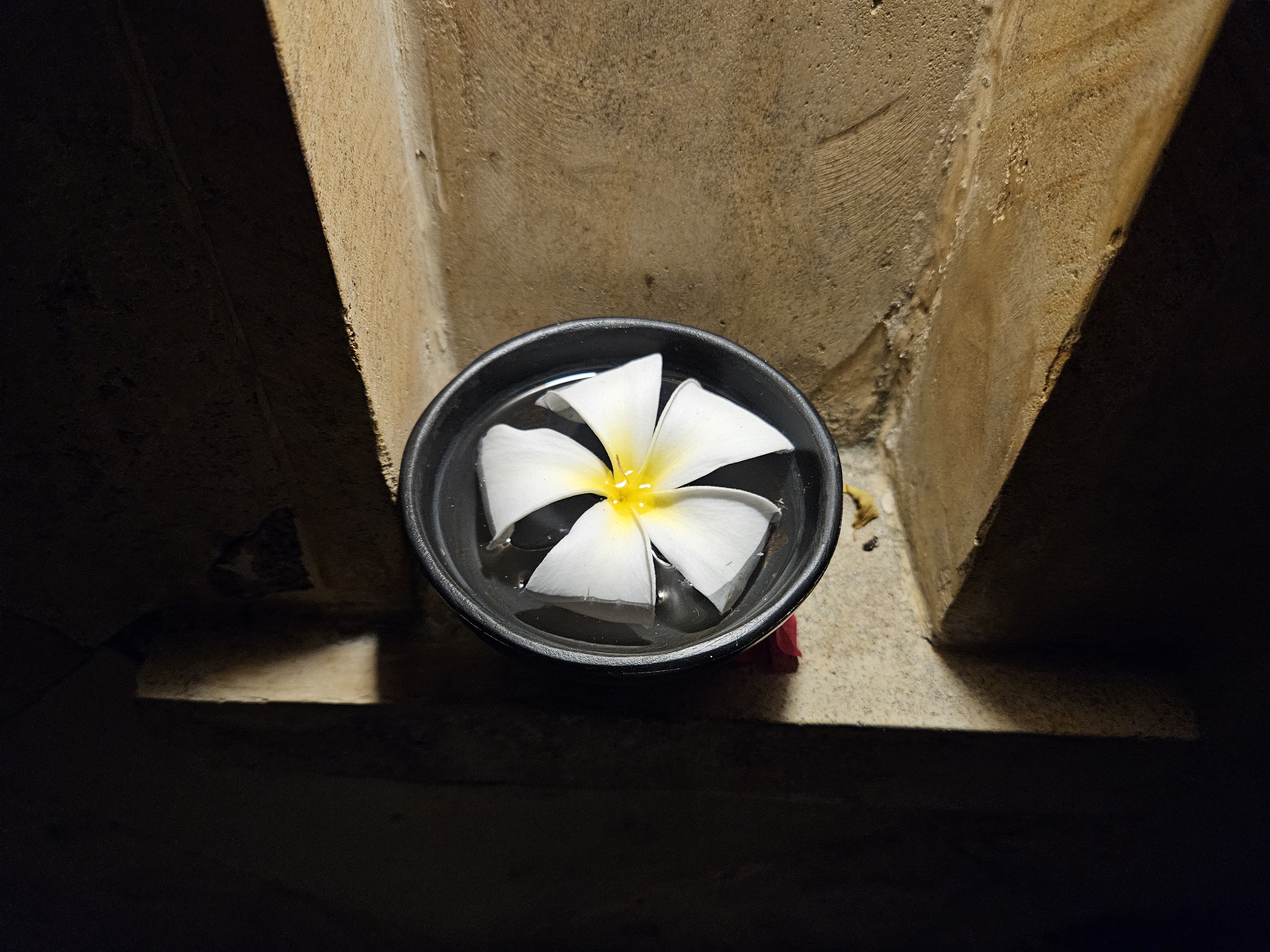 환영 목걸리로 받은 꽃은 발리 길가에서도 엄청 많이 볼 수 있었습니다. 우리는 흔히 프랑지파니라는 이름으로 알고 있는데, 지프투어 가이드에게 뭐라고 부르는지 물어봤는데 인도네시아어로 jepun (져뿐, '져'가 쟈와 져의 사이의 발음인 것 같았습니다.)라고 부르는데 흰색 노란색 분홍색 파란색이 있다고 하더라고요. 엄청 향기롭고, 마음을 여유롭게 만들어 주는 꽃입니다. 휴양지에서만 주로 보이니까 마음이 여유로워지는 것 같아요.