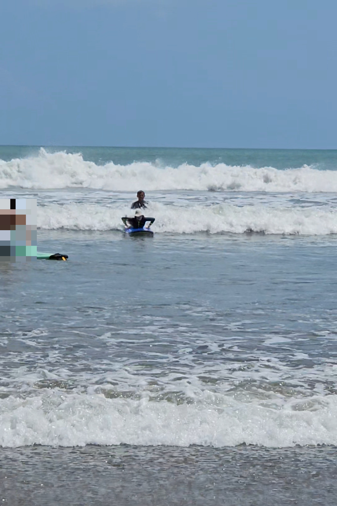 저는 진짜진짜 운동신경이 없어서 그 많은 서핑 시도 중에 한두 번 선 것 같네요.🥲🥲🥲 정말 재밌었지만, 물도 엄청 많이 먹었습니다. 다음에 또 배워보고 싶은 서핑! 운동신경 없는 저를 파도 태워주려 함께 물을 엄청 많이 먹었던 슨생님.. 감사합니다.