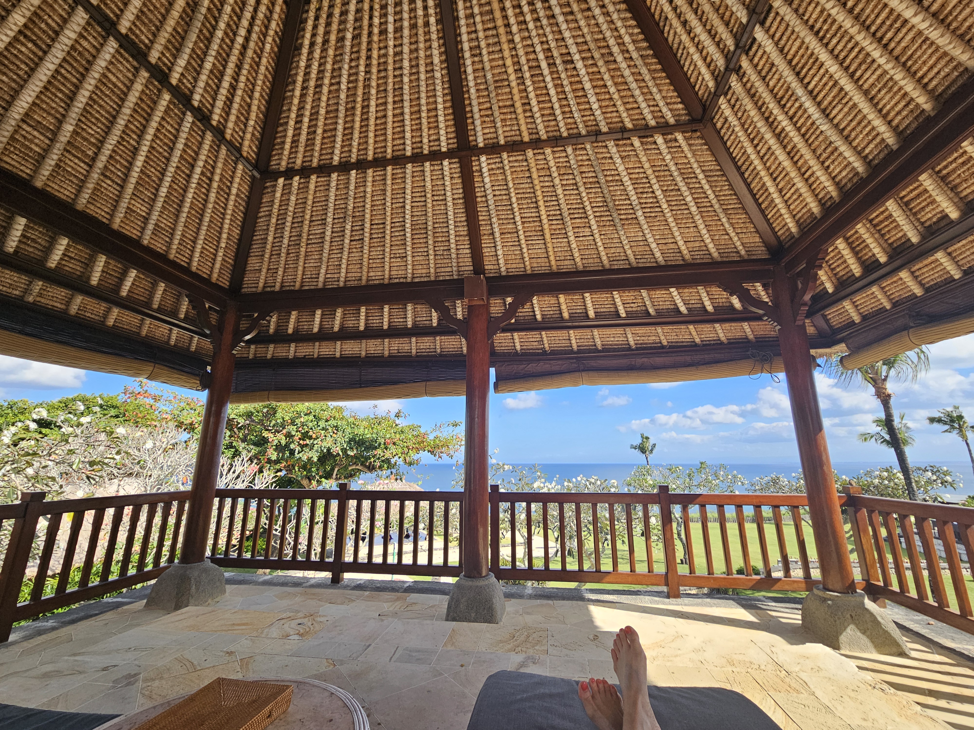 저는 건물의 꼭대기나 지붕의 형태를 좋아하는데, 그런 제 취향에 딱 맞게 발리 가옥의 지붕들은 모두 특색 있는 포인트들을 가지고 있습니다. 넓은 하늘과 독특한 지붕의 모양이 무척 평화롭고 고요하게 느껴집니다.