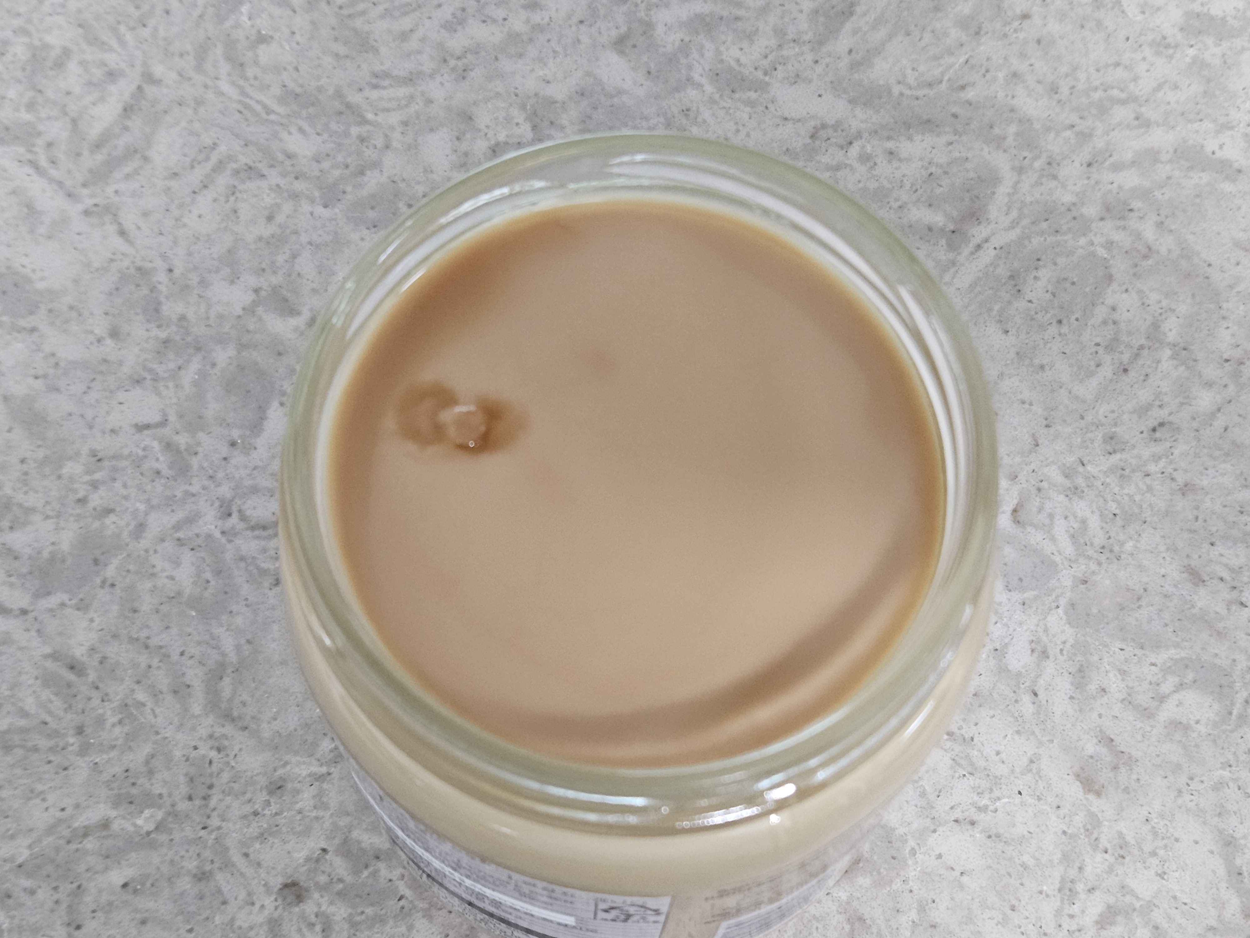 퓨어 메이플 시럽이라고 했는데, 일단 뚜껑을 열어보면 내용물도 상당히 퓨어해 보입니다. 갈색의 투명한 메이플 시럽을 농축해서 응고하면 이렇게 베이지 색이 된다니 신기합니다.