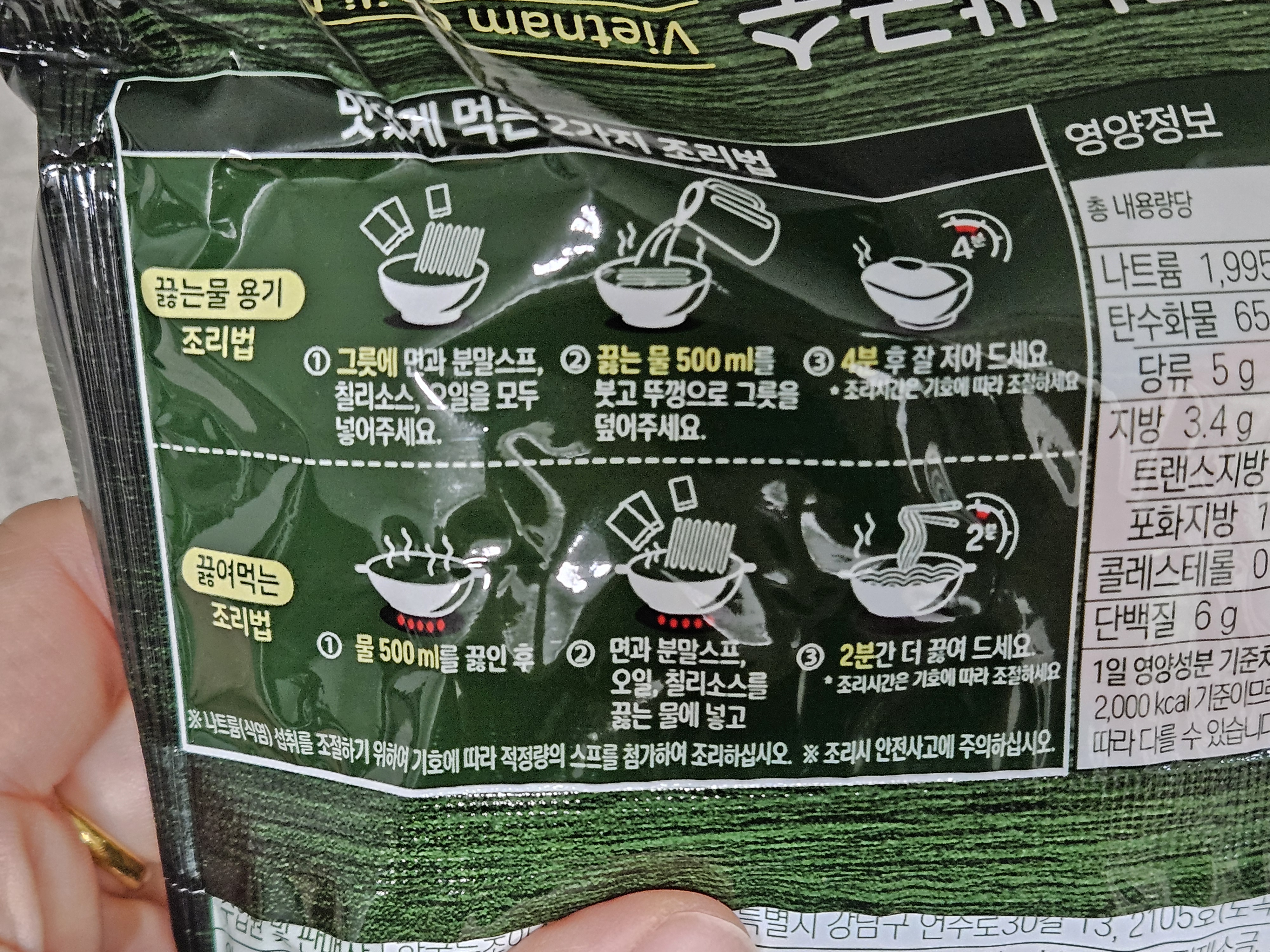 먹는 방법이 간단해서 정말 좋습니다. 굳이 끓여먹지 않아고 뜨거운 물만 있으면 간단하게 먹을 수 있어서 간편합니다. 컵라면 먹는 방법으로 조리 가능하지만, 컵라면 보다 덜 자극적일것같은 느낌.. 하지만 나트륨은 컵라면 뺨을 친다는것.. 그래도 튀긴 면이 아니고 쌀국수면이라 몸에 좋을 것 같다는 자기 합리화를 하면서 만들어봤습니다.