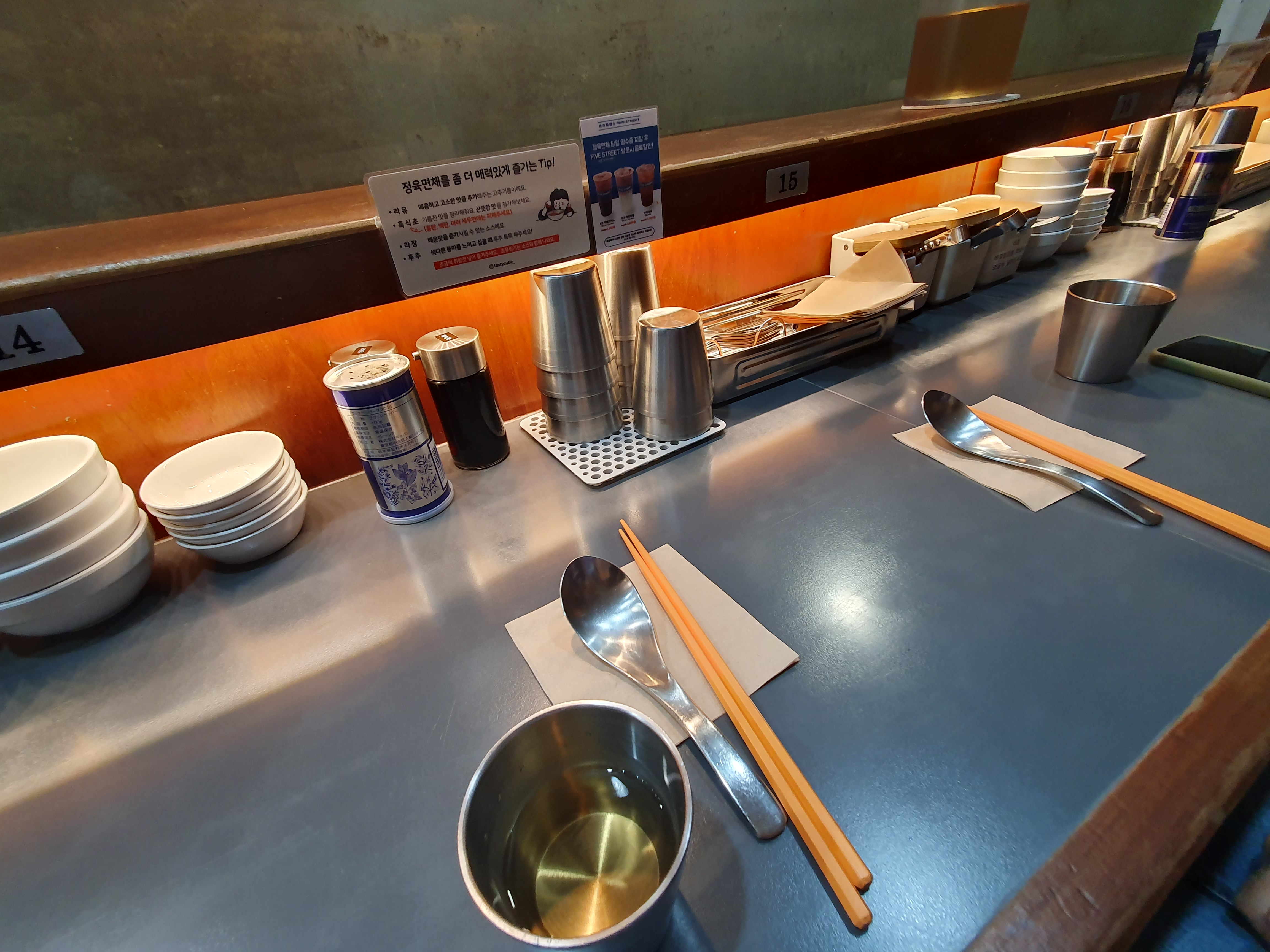 좌석입니다. 혼밥하기 좋은 좌석이라, 혼자 오신 분들도 많고 회전율이 좋습니다. 대기가 있어도 그렇게 많이 기다리지 않아서 좋았습니다.