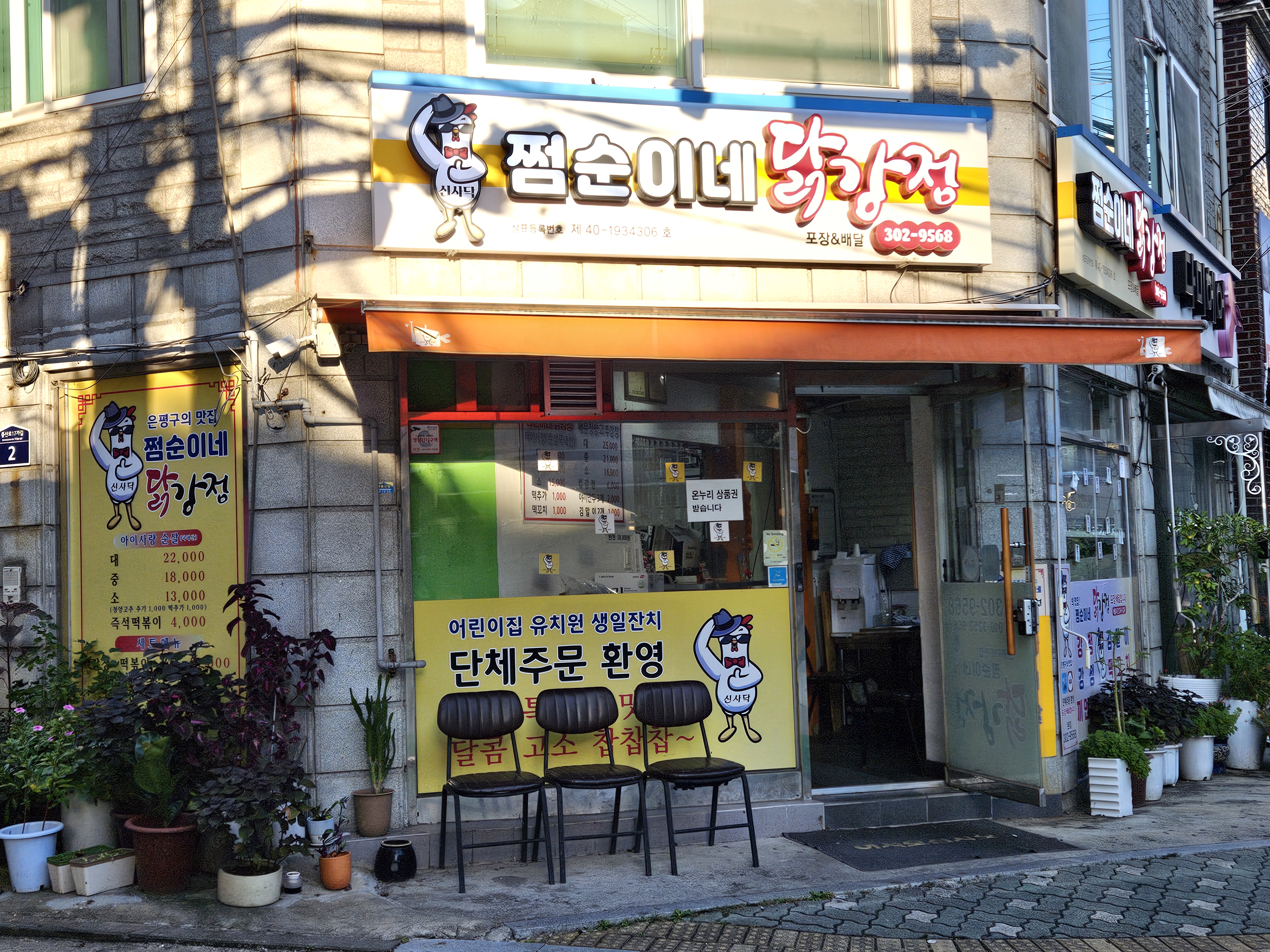 신사동 주민들만 알고있다는 닭강정 맛집, 쩜순이네 닭강정 후기입니다. 내를 건너서 숲으로 도서관을 갈 때마다 본 오래된 닭강정 집인데, 후기를 찾아보니 아는 사람만 먹는 동네 맛집이었습니다. 닭강정하면 생각나는 흔한 빨간 양념의 닭강정이 아니고, 순살 닭고기를 바삭하게 튀여 적당히 투명한 소스에 버무려주는 닭강정입니다. 이미 닭강정 자체가 다른 곳에서 볼 수 없는 독특한 메뉴에요.