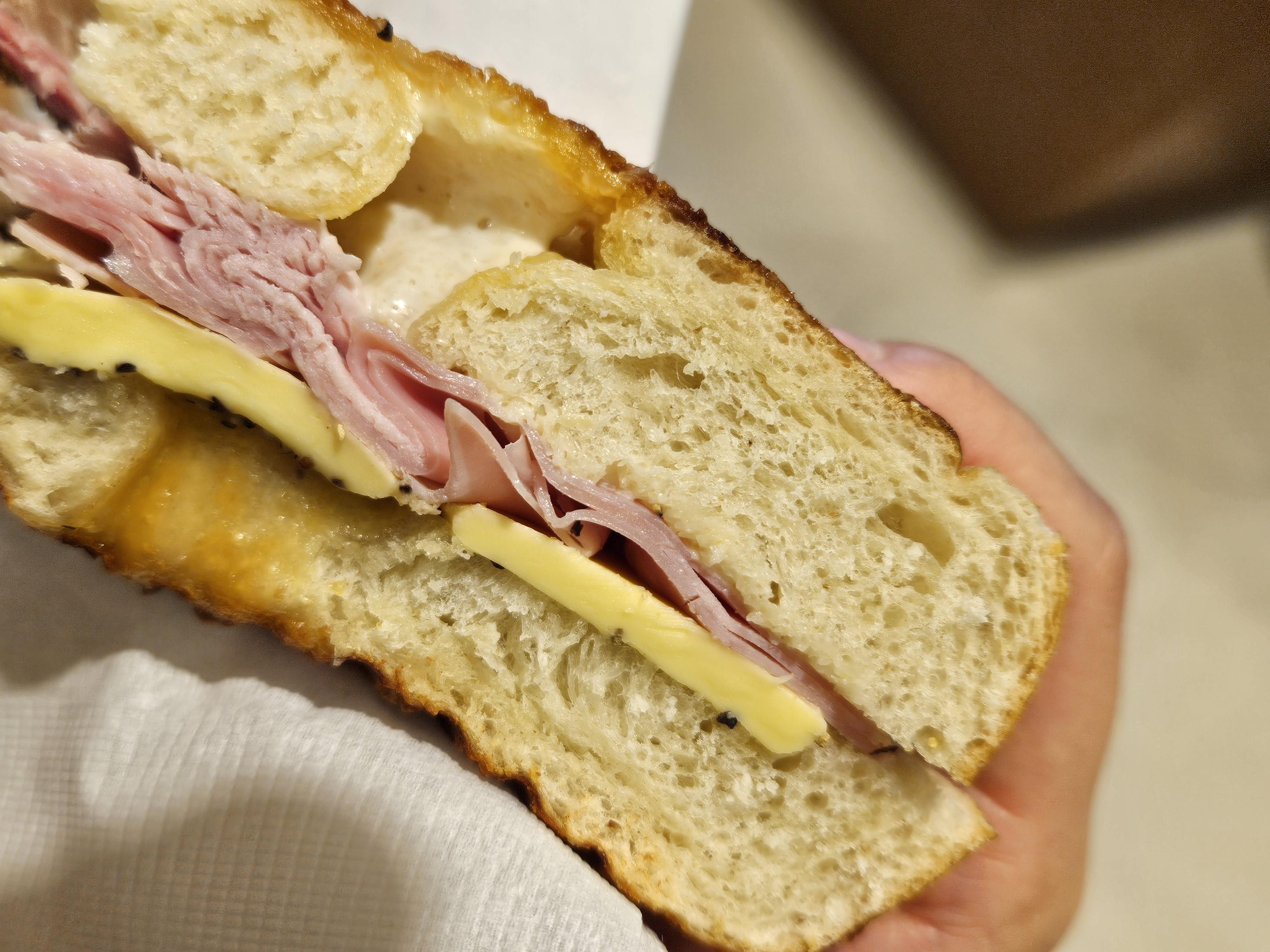 짭짤한 잠봉뵈르와 부드러운 버터, 밀도 있는 베이글의 조합이 기가 막히게 맛있었던 포비 잠봉뵈르 샌드위치