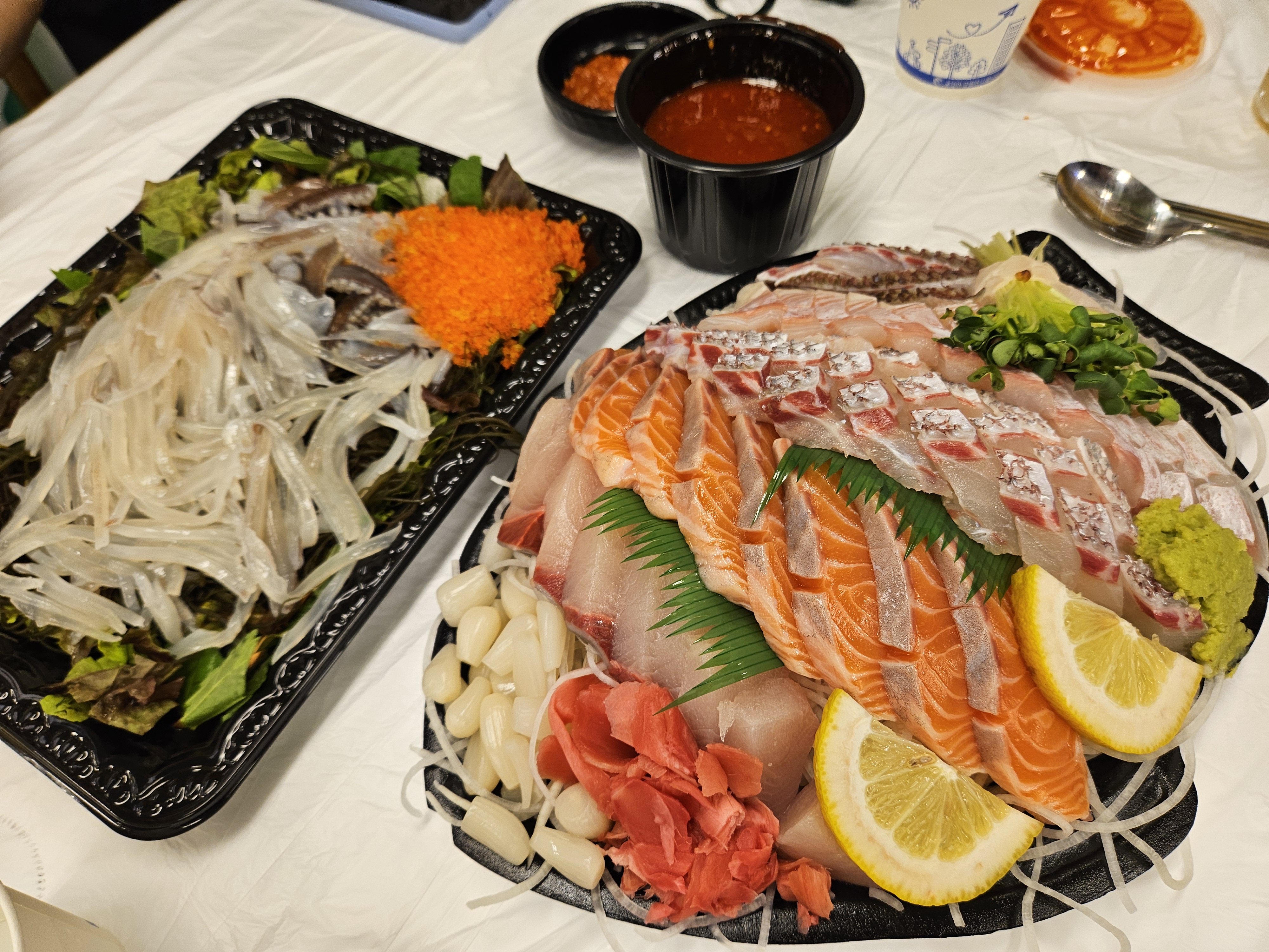 추천해 주신 활 모둠회 정석 소자(2인) + 춤추는 활오징어 한판(채썰기)으로 주문했습니다.