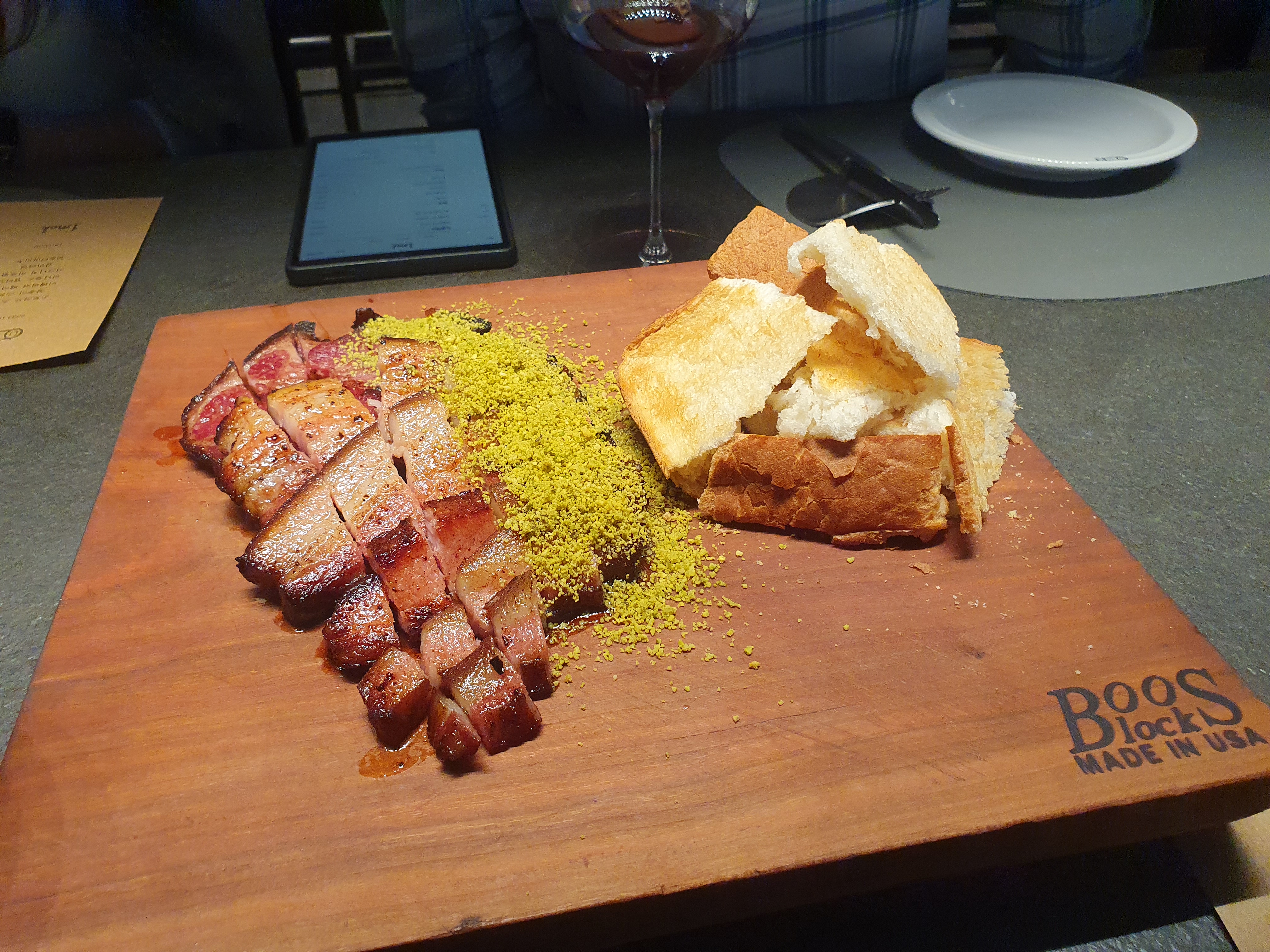 도톰하면서 간이 적당한 이베리코 베이컨에, 메이플 시럽, 피스타치오, 뜨끈 고소한 빵까지 누구도 싫어할 수 없는 조합의 당연하면서도 가장 맛있는 메뉴였습니다. 아는 맛이, 또, 상상이 가는 맛이 무섭죠.