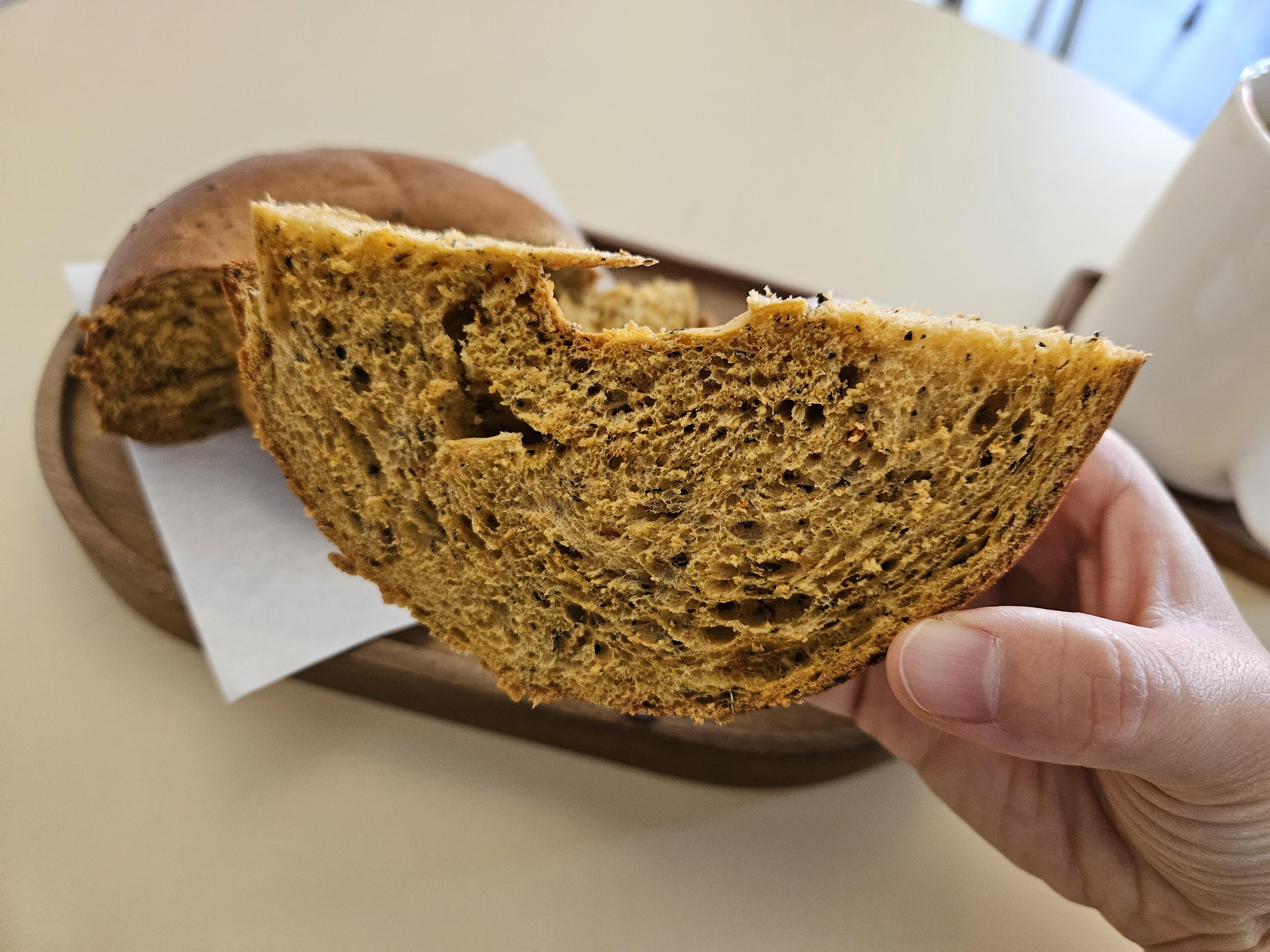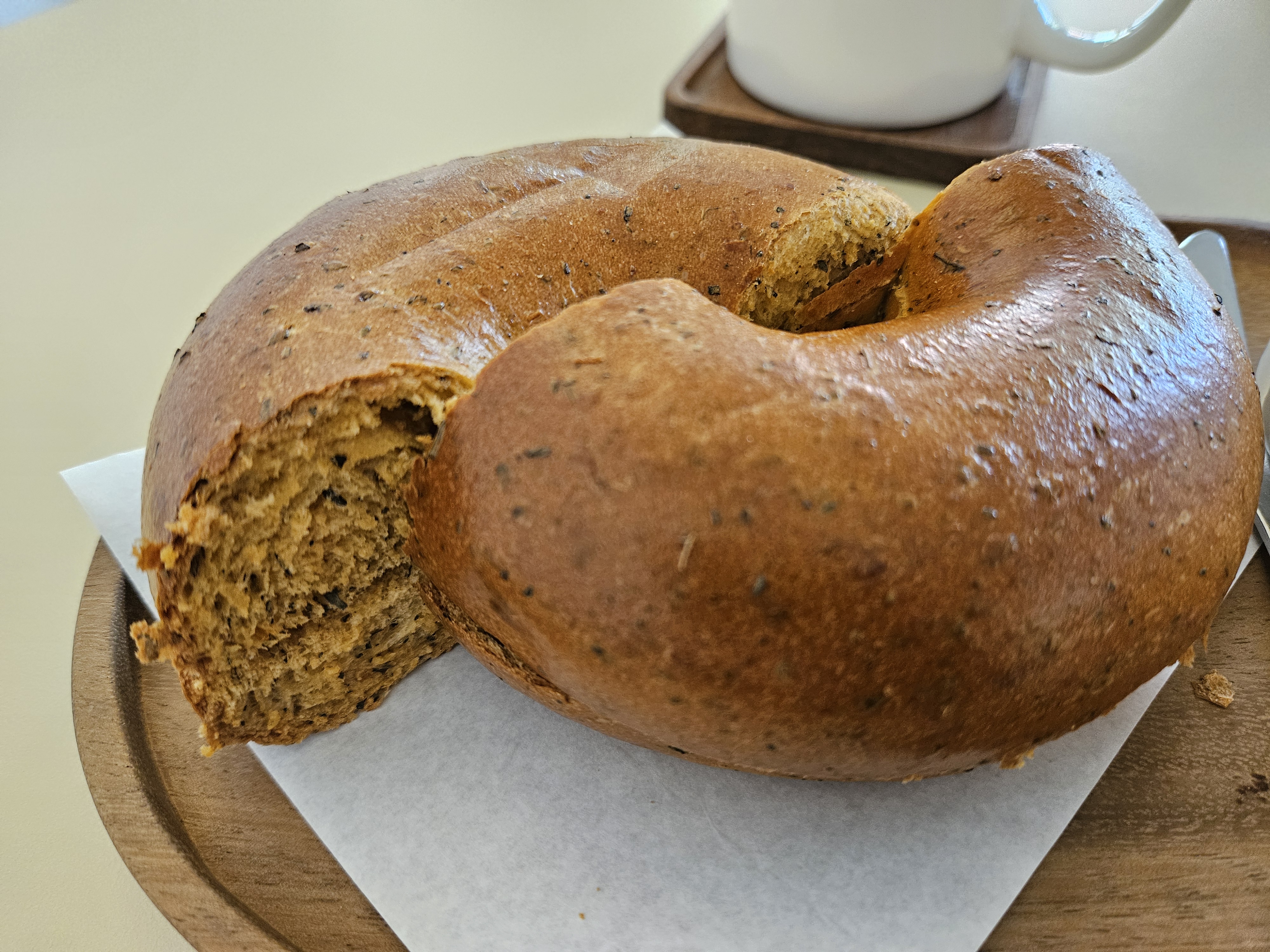 저는 개인적으로 음식 맛의 척도를 속도로 확인하곤 하는데, 맛있는 커피가 반절 사라지기도 전에 베이글을 순삭 했습니다. 토마토 바질 베이글을 정말 맛있게 먹어서, 다음엔 기본 밀크 베이글과 다른 달콤한 건과일이 들어간 베이글도 먹어보고 싶습니다.