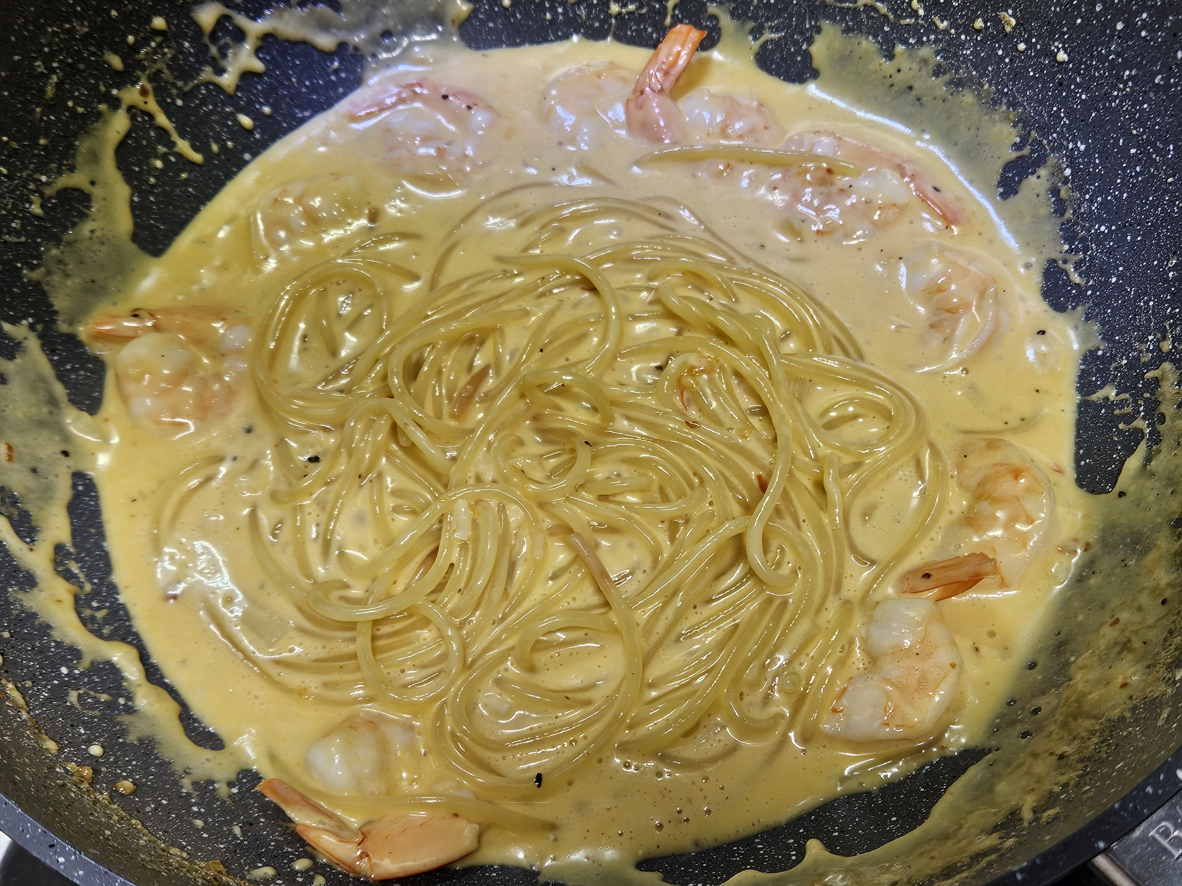 4) 새우와 면이 기호에 맞게 익었다면, 완성입니다.