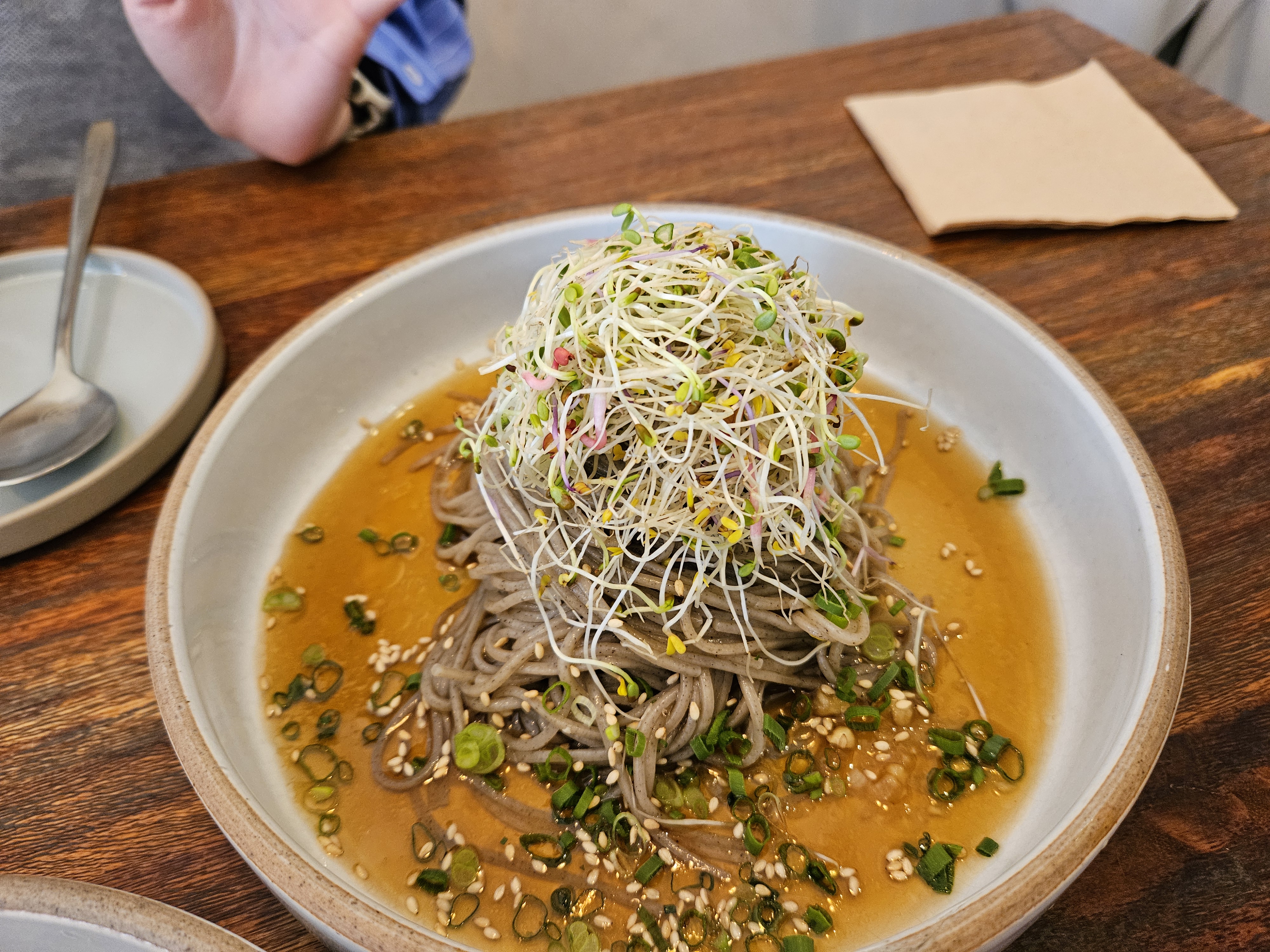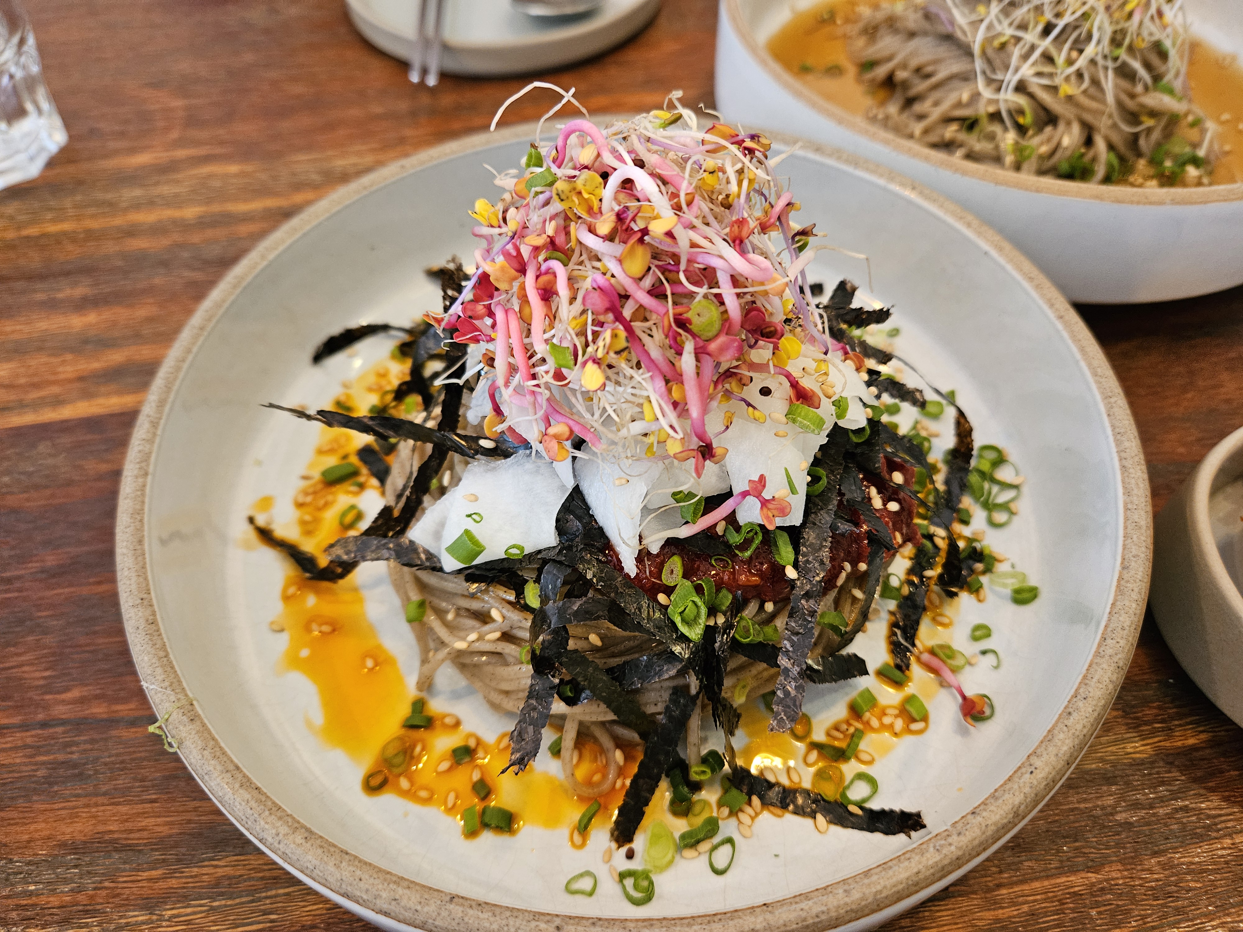 트러플 감자전과 함께 먹을 때는 비빔막국수로 손이 자주 가더니, 트러플 감자전을 다 먹은 뒤로는 새콤하면서 고소한 간장막국수로 손이 자주갔습니다.
