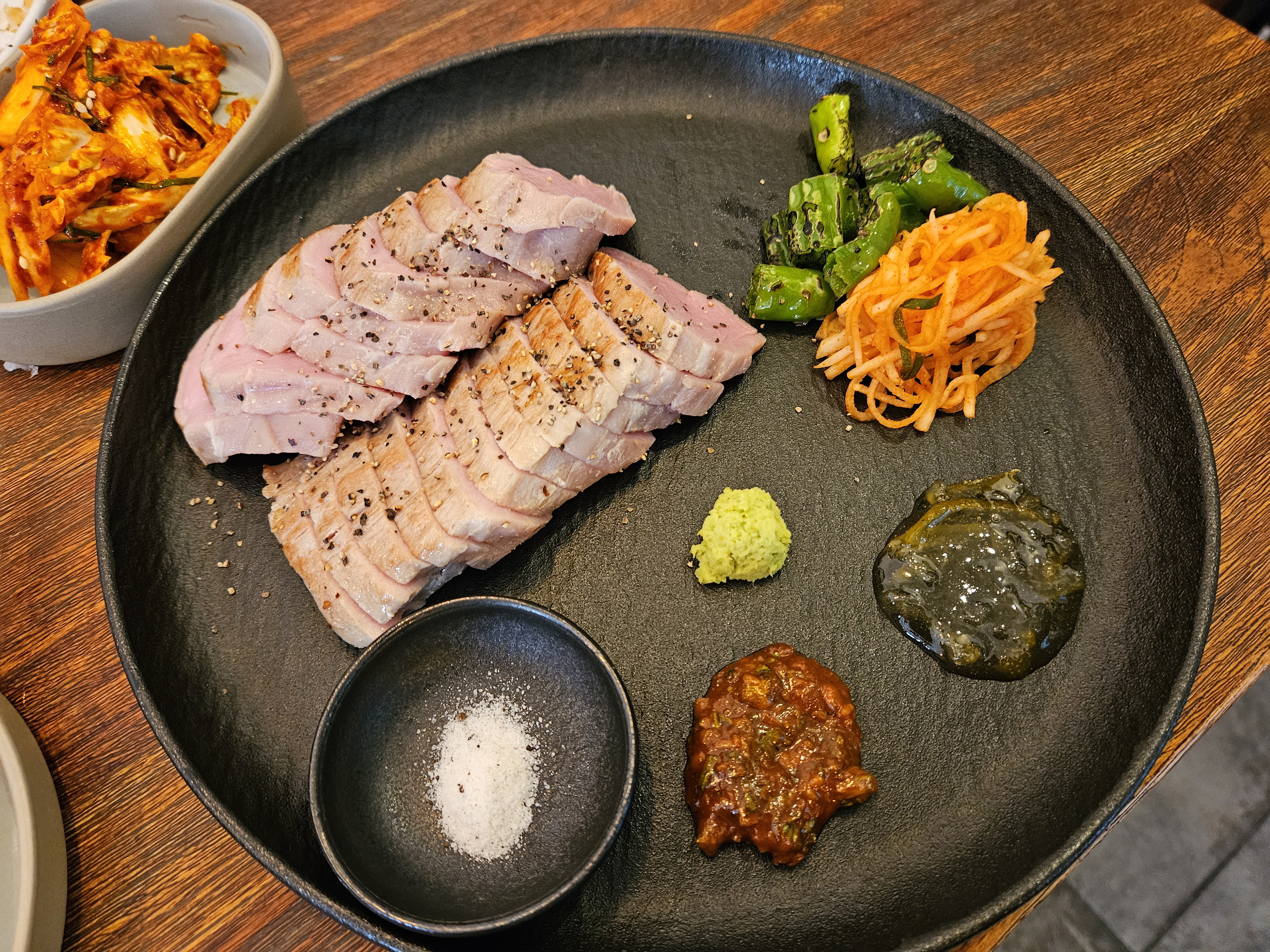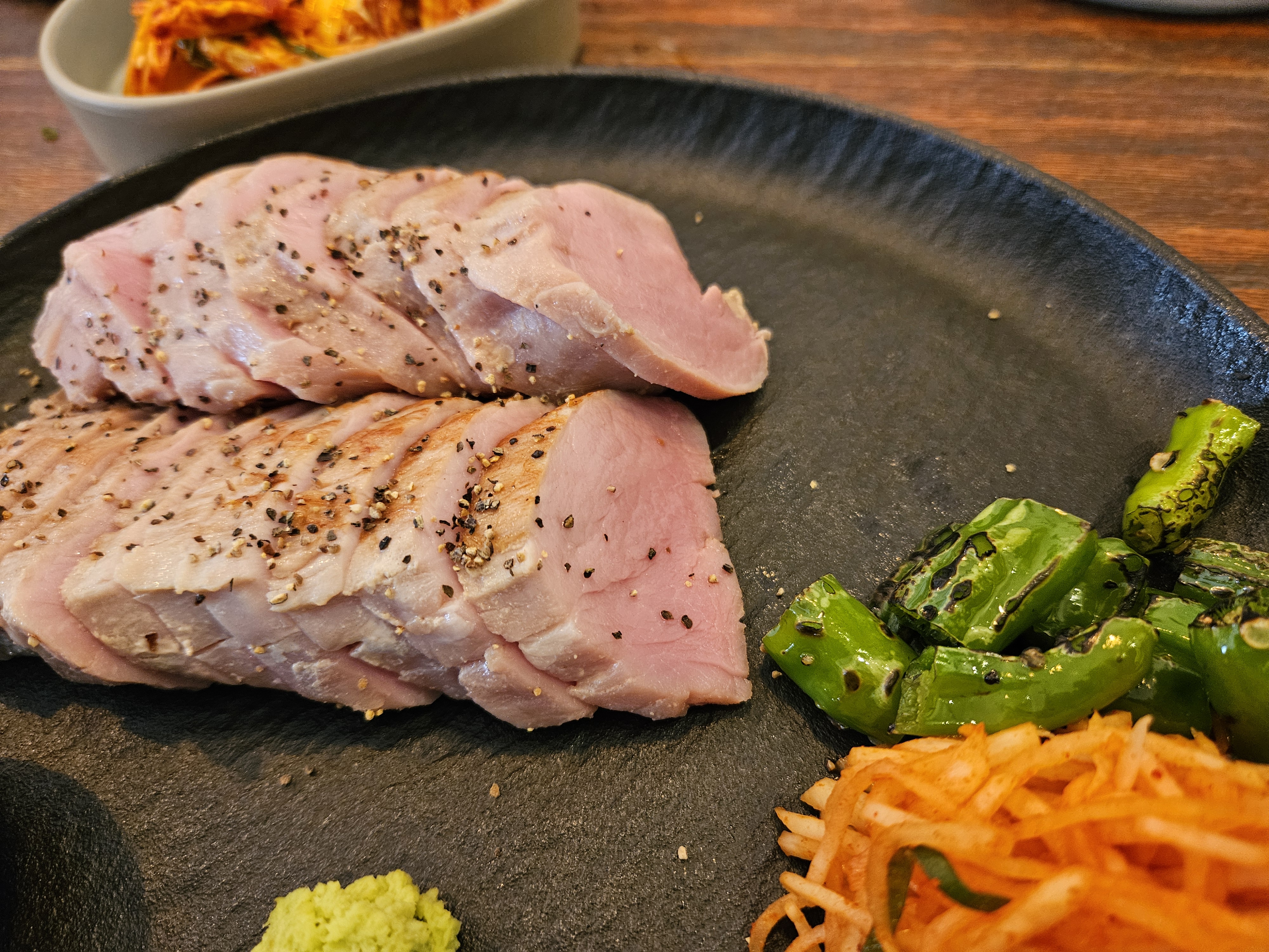 입에서 살살 녹는, 부드러운 식감이 아주 매력적인 수비드 안심 수육입니다.