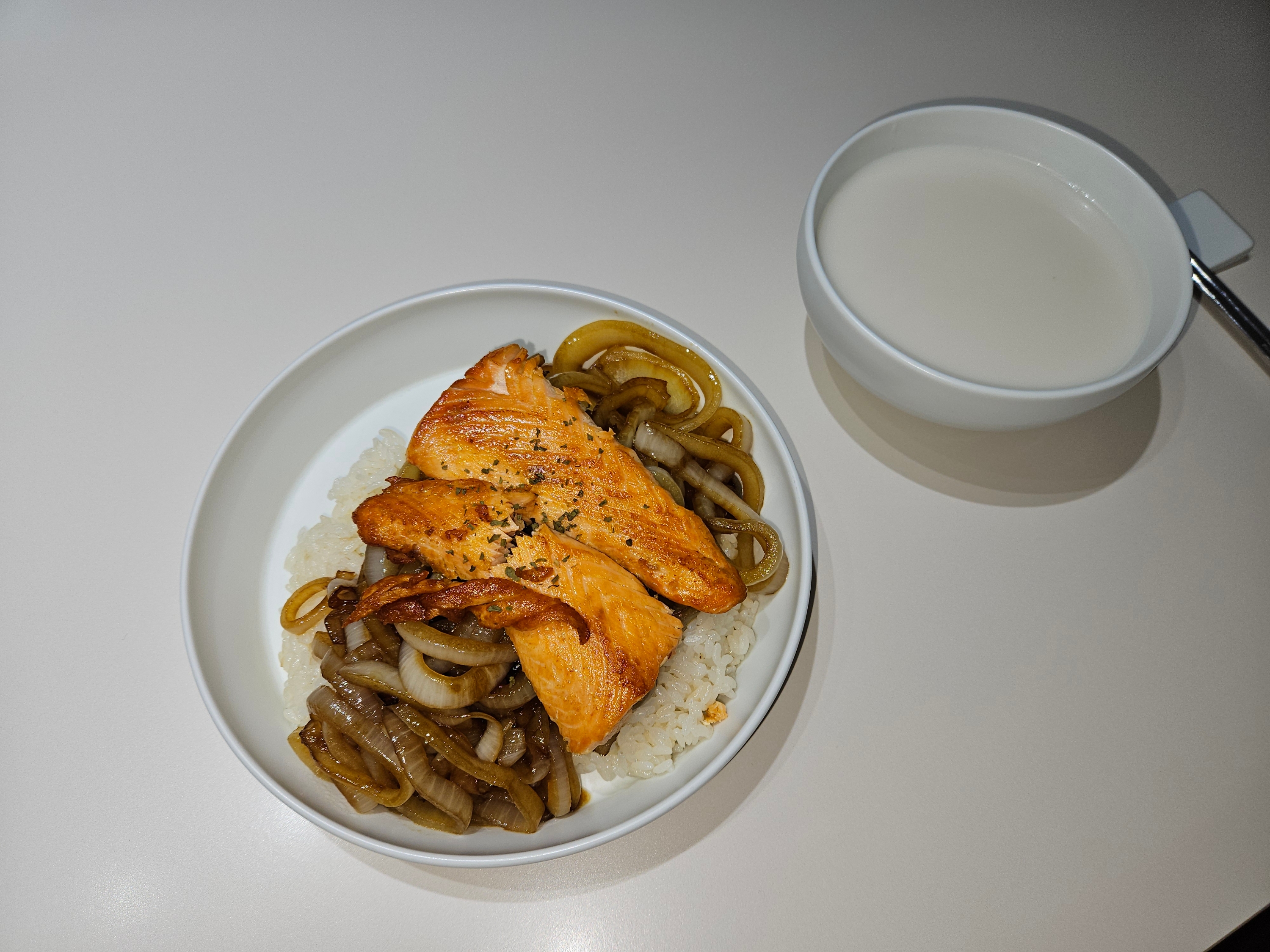 연어 굽는건 어렵지 않았습니다. 사실 이 사진은 연어보다도 저 구운 양파가 킥이에요. 이 글도 사실 양파 구운 방법 메모하려고 쓰는 글입니다. 연어구이 양파덮밥 옆에는 내 자신 원기 회복용 한우 곰탕... 힘내라 내 자신