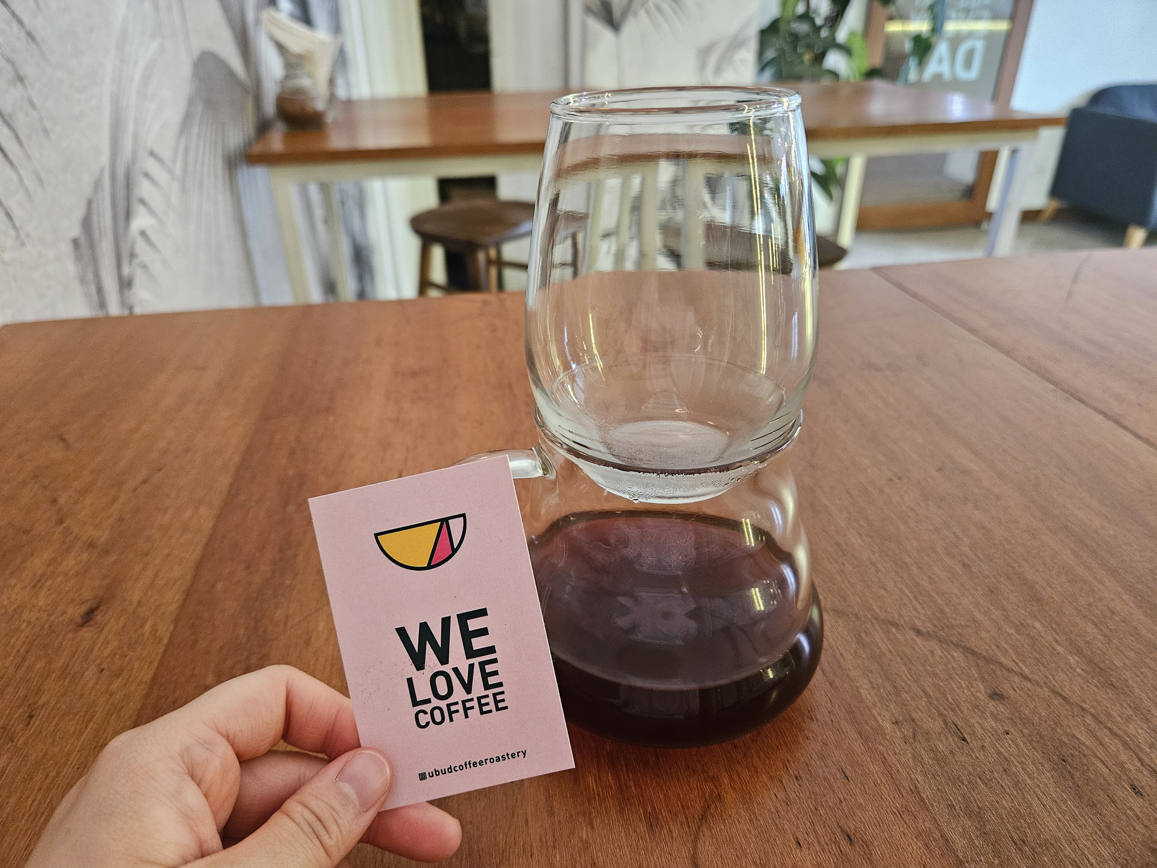 우붓 커피 로스터리에서 0일차 일기를 쓰며 커피와 커피 프라페를 마셨다. 더운날 뜨겁게 마셨지만 맛있었다. 프라페도 맛있었으나, 내 취향은 뜨거운 커피인 것으로. 다른 원두도 도전해봐야지.