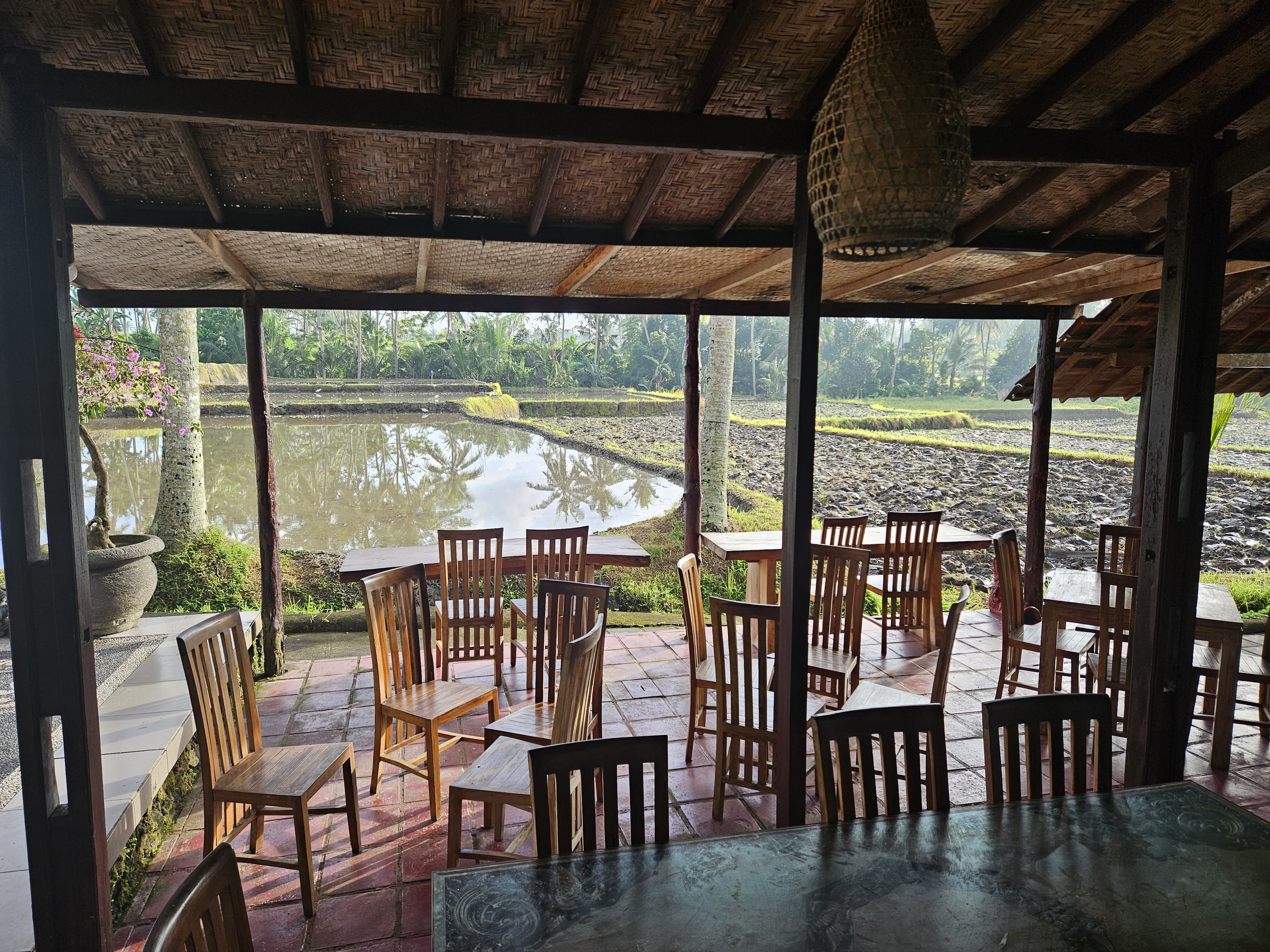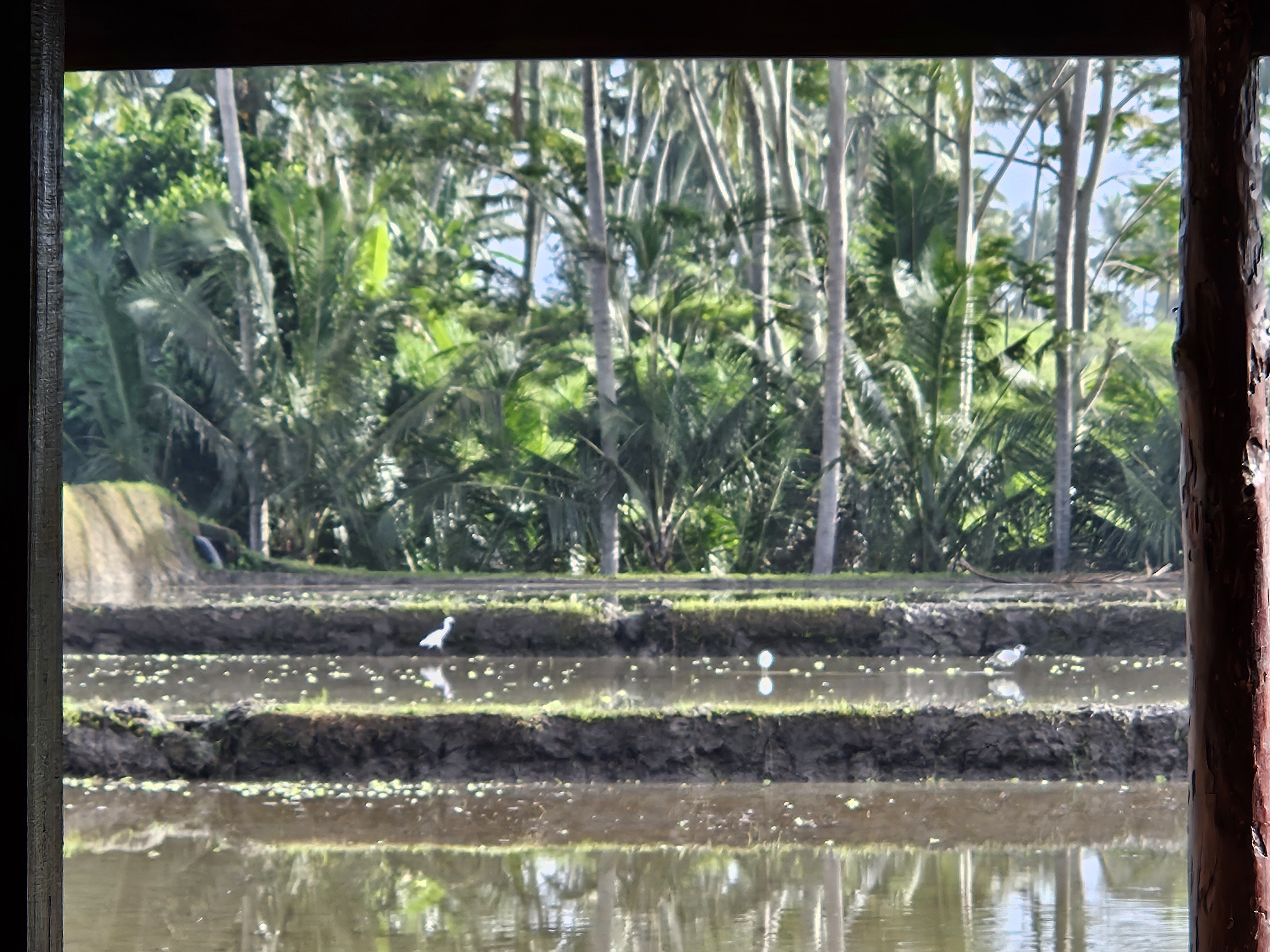 세 번째 사진의 요가 교실은 아침 6시부터하는 빈야사 수업을 듣는 곳인데, 이 곳의 매력은 블라인드를 걷으면 볼 수 있다. 일출과 함께 평화로운 논을 바라보며 요가를 할 수 있어서 정말 황홀하다.
