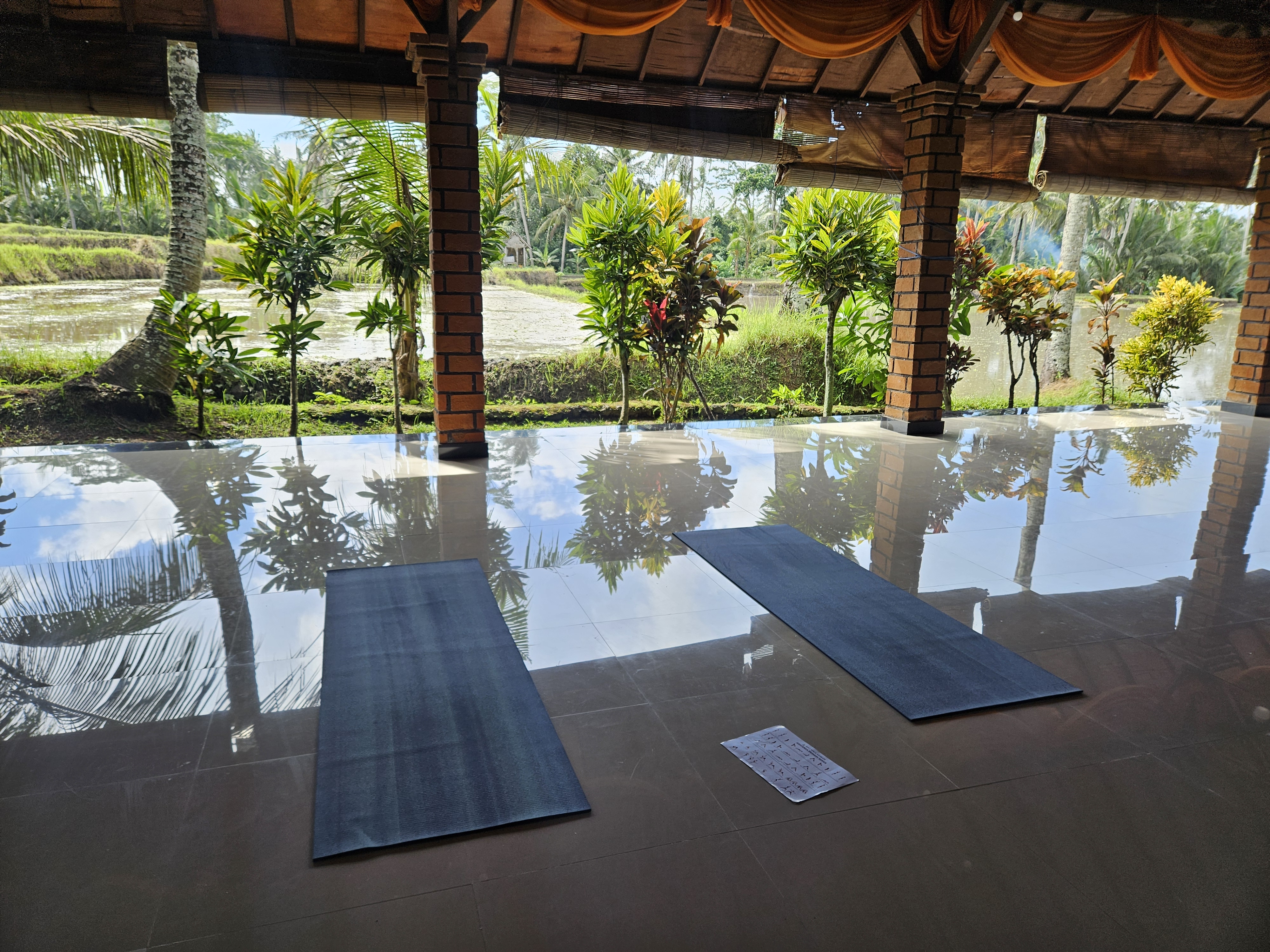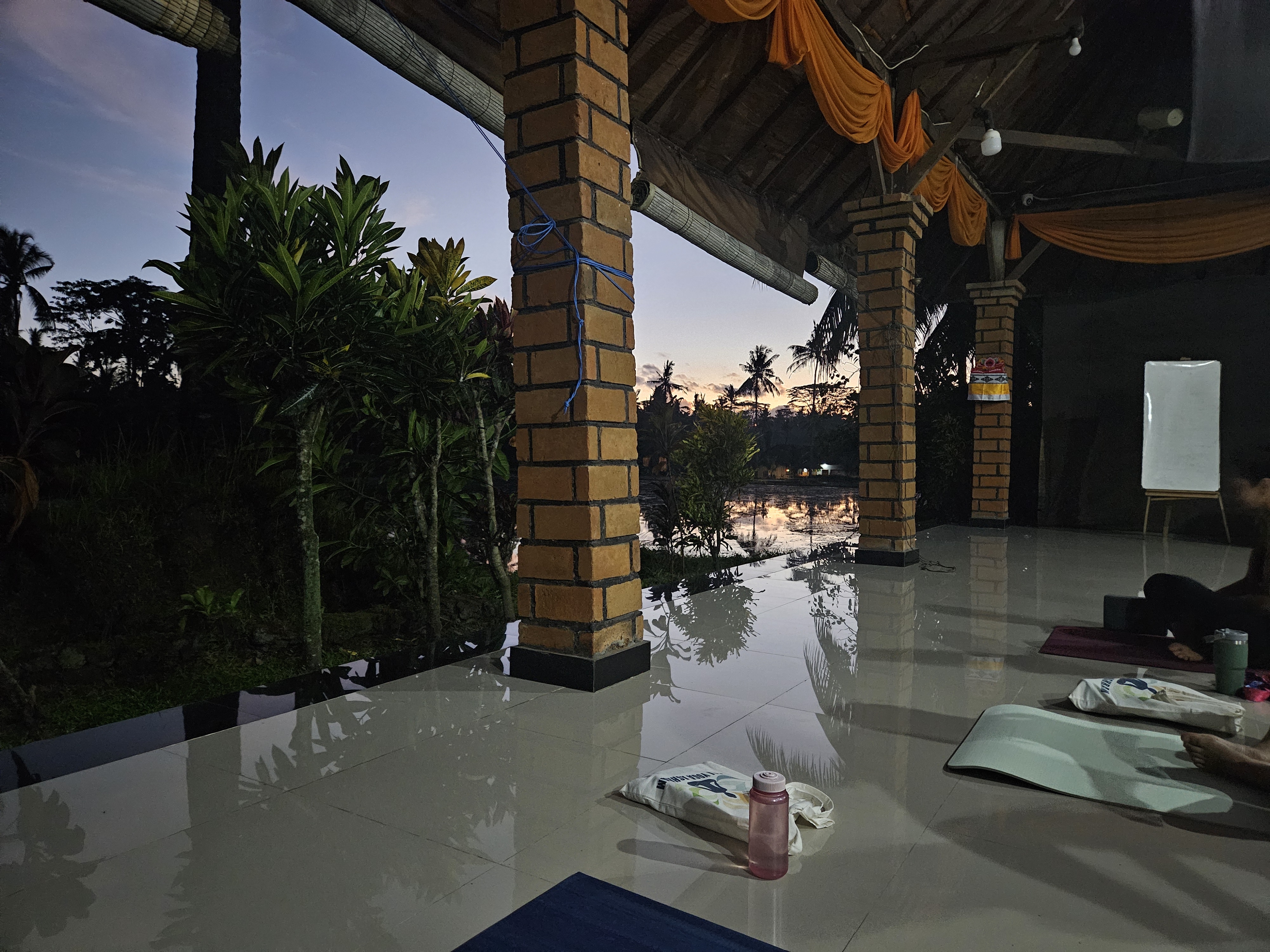 아침 6시 빈야사 플로우 직전의 모습. 요가하면서 일출을 볼 수있다. 실제로는 사진보다 좀 더 어둡게 느껴진다. 빈야사 수업 때, Ankit 선생님이 일출 방향에 서서 햇빛을 등지고 서 있을 때가 있는데, 후광이 어찌나 눈부신지, 동작이 하나도 보이지 않는다. 내가 옆자리 친구에게 마치 선생님이 Jesus 같았어. 라고 하자 엄청 웃었었다. (흐흐흐 웃기고 싶어, 나는 웃음 사냥꾼이라구)