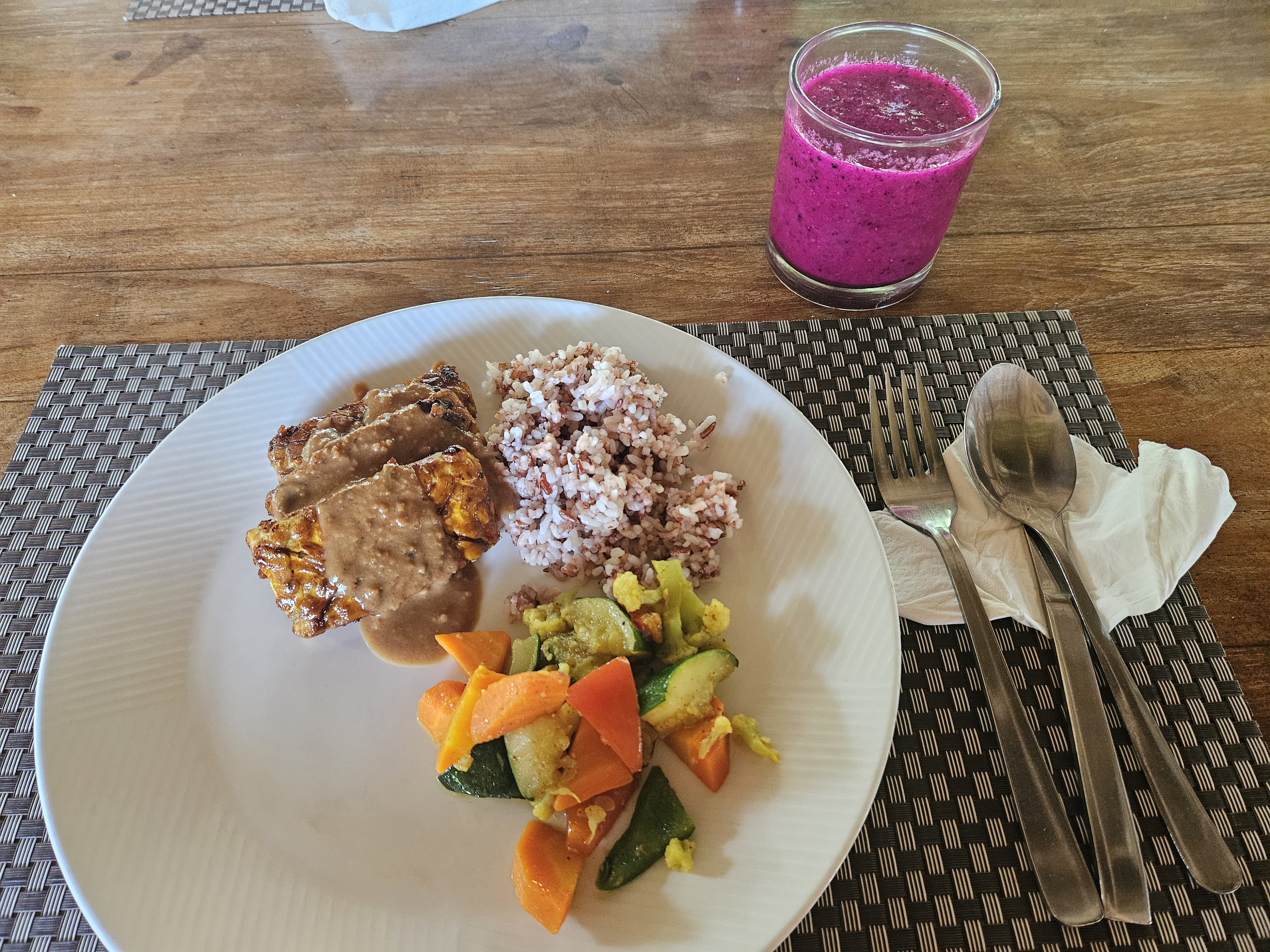 조식은 리조트 뷔페로, 점심과 저녁은 요가 TTC 하는 사람들에게만 제공되는 비건식을 먹는다. 고기와 술을 너무 좋아하는 나에게 가능할까 싶었는데, 완전 가능했다. 심지어 속이 너무 편안하다. 가스 안차는게 최고 좋은 일이다. 그리고, 이에 끼는 일도 많이 없어서 치간칫솔을 사용할 때면, 이전에 고기먹을 때와 달리 치아가 깨끗한 것을 확연히 느낄 수 있다. 그리고 발리 오기 전 충치가 생긴건지 어금니가 살짝 아플 때가 있었는데, 그 통증도 신기하게 사라졌다. 단순히 비건식을 하면서 소화 문제, 치아 문제가 나아진 건지, 요가를 병행하면서 나아진건지 정확한 원인을 알 수 없지만 삶이 상당히 편해졌다. (삶의 질이 올라갔다.)
