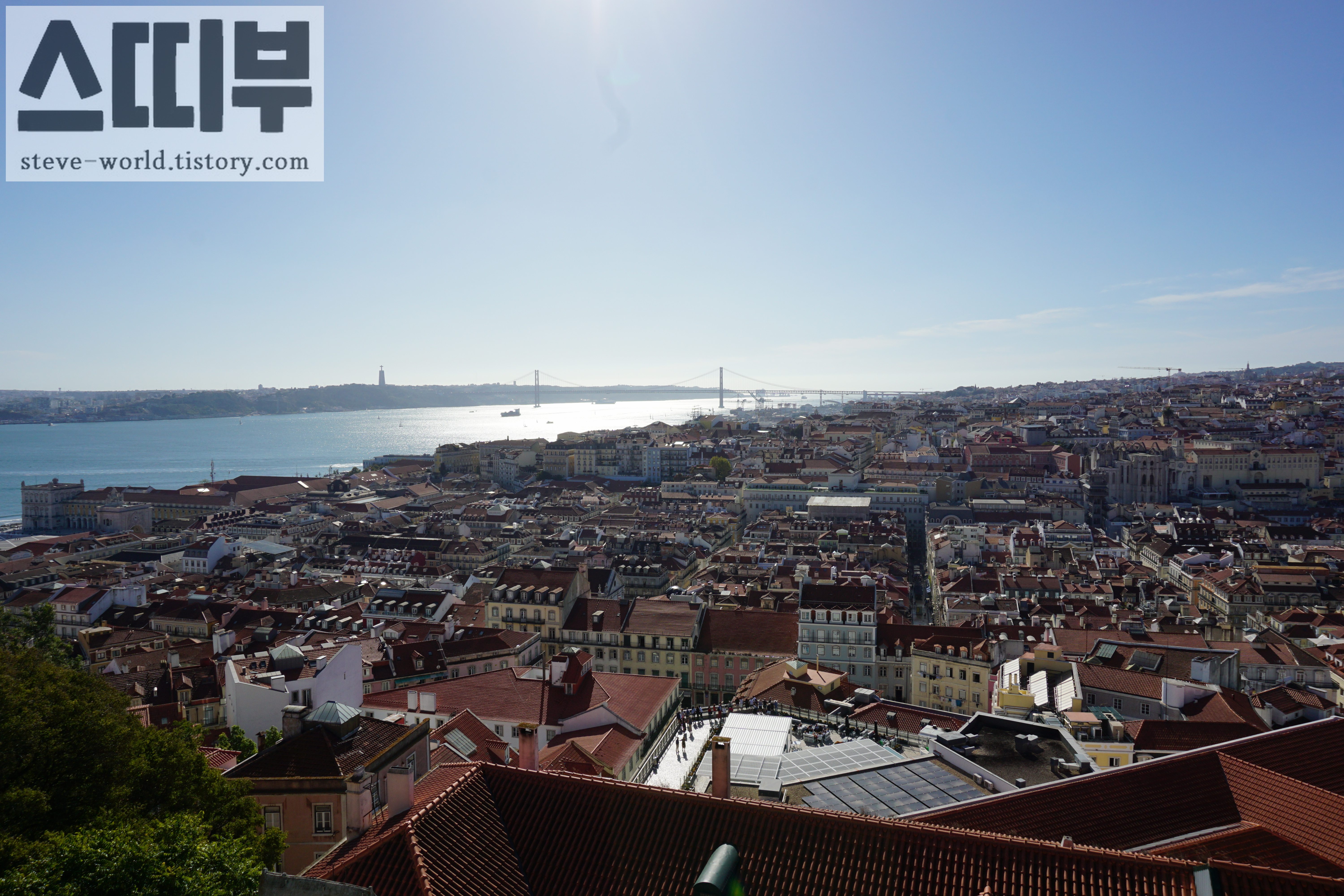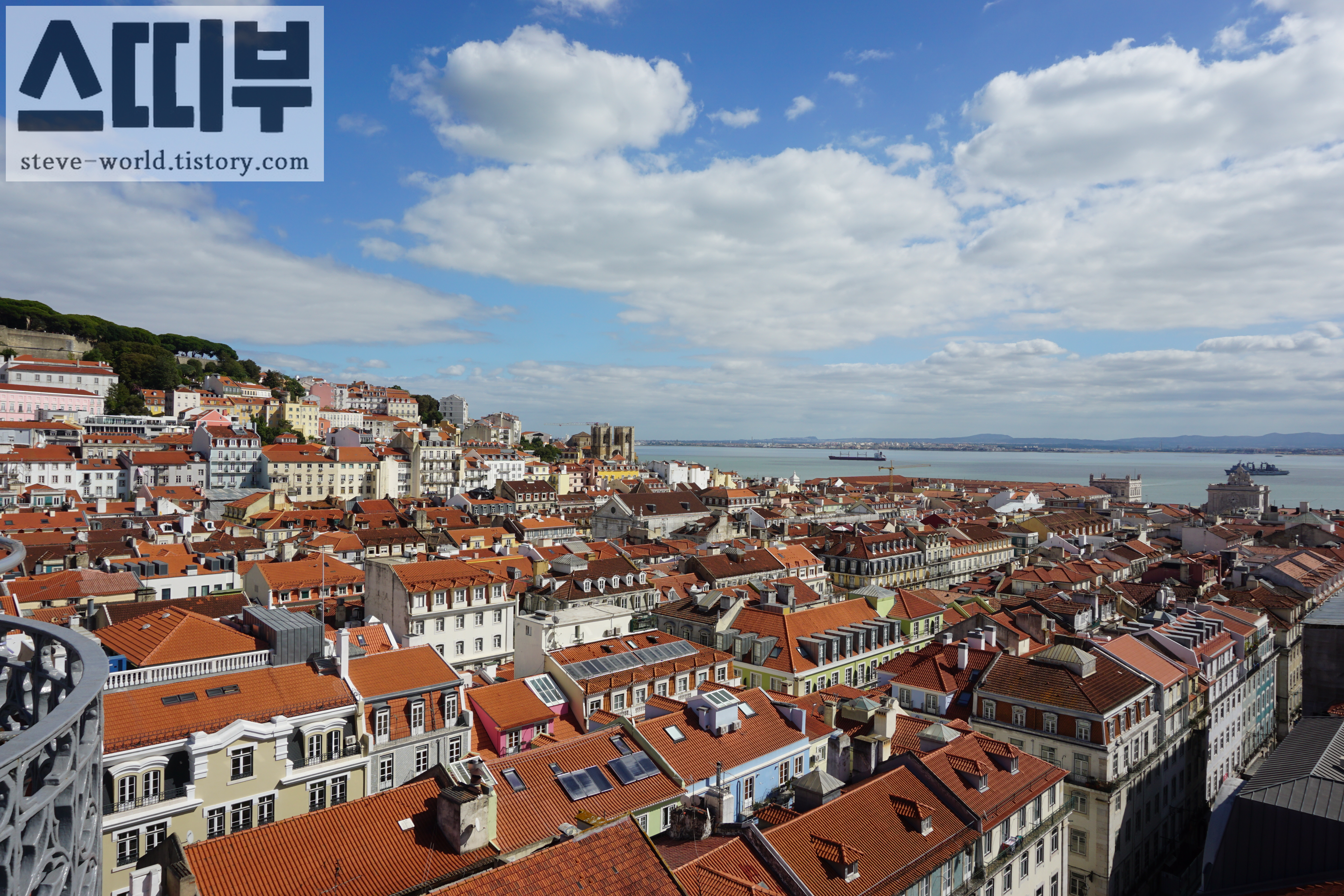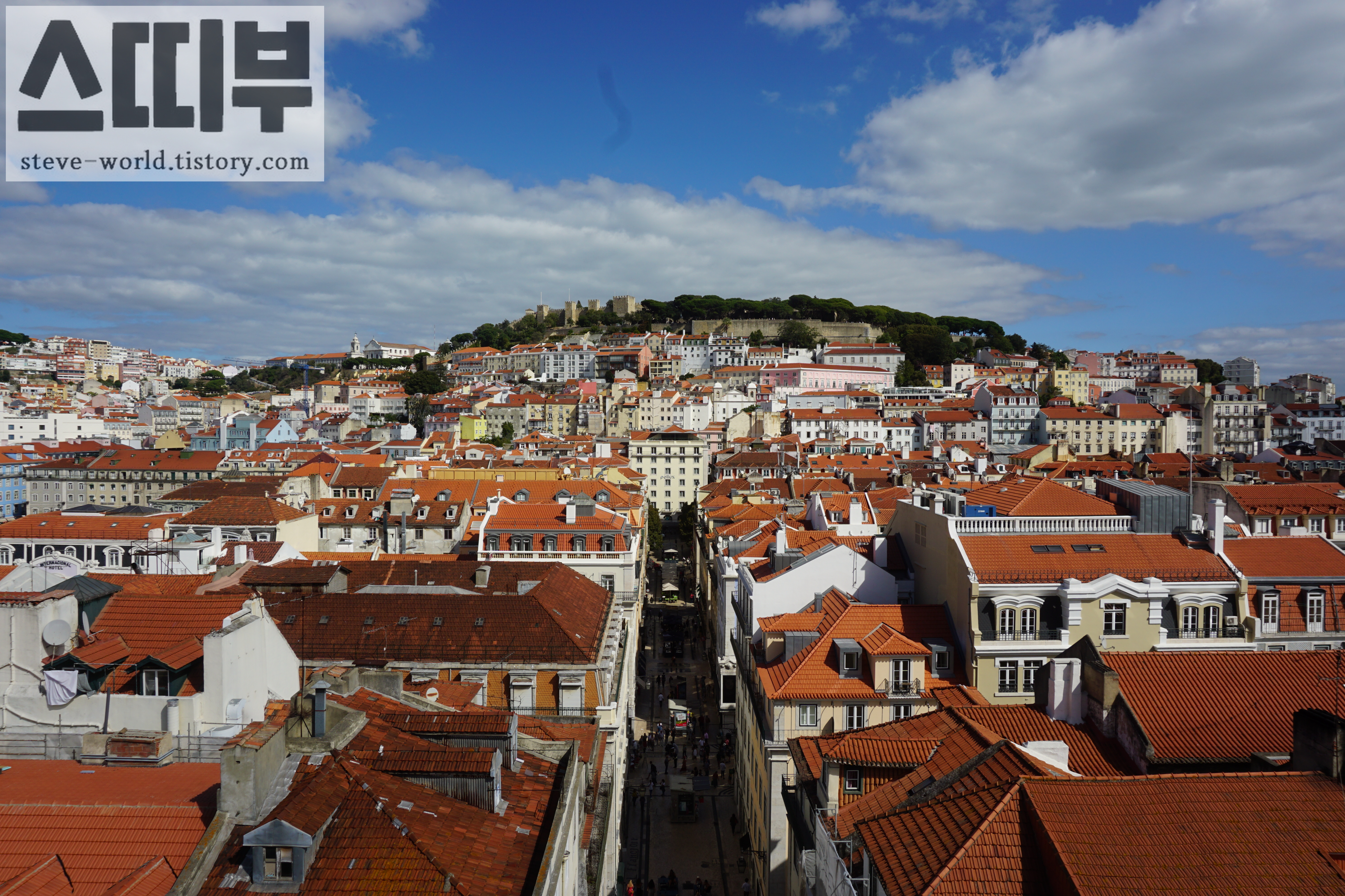 상조르제성을 바라보는 뷰 산타 후스타 엘레베이터(Elevador de Santa Justa)를 타고 올라가 본 리스본의 뷰입니다.