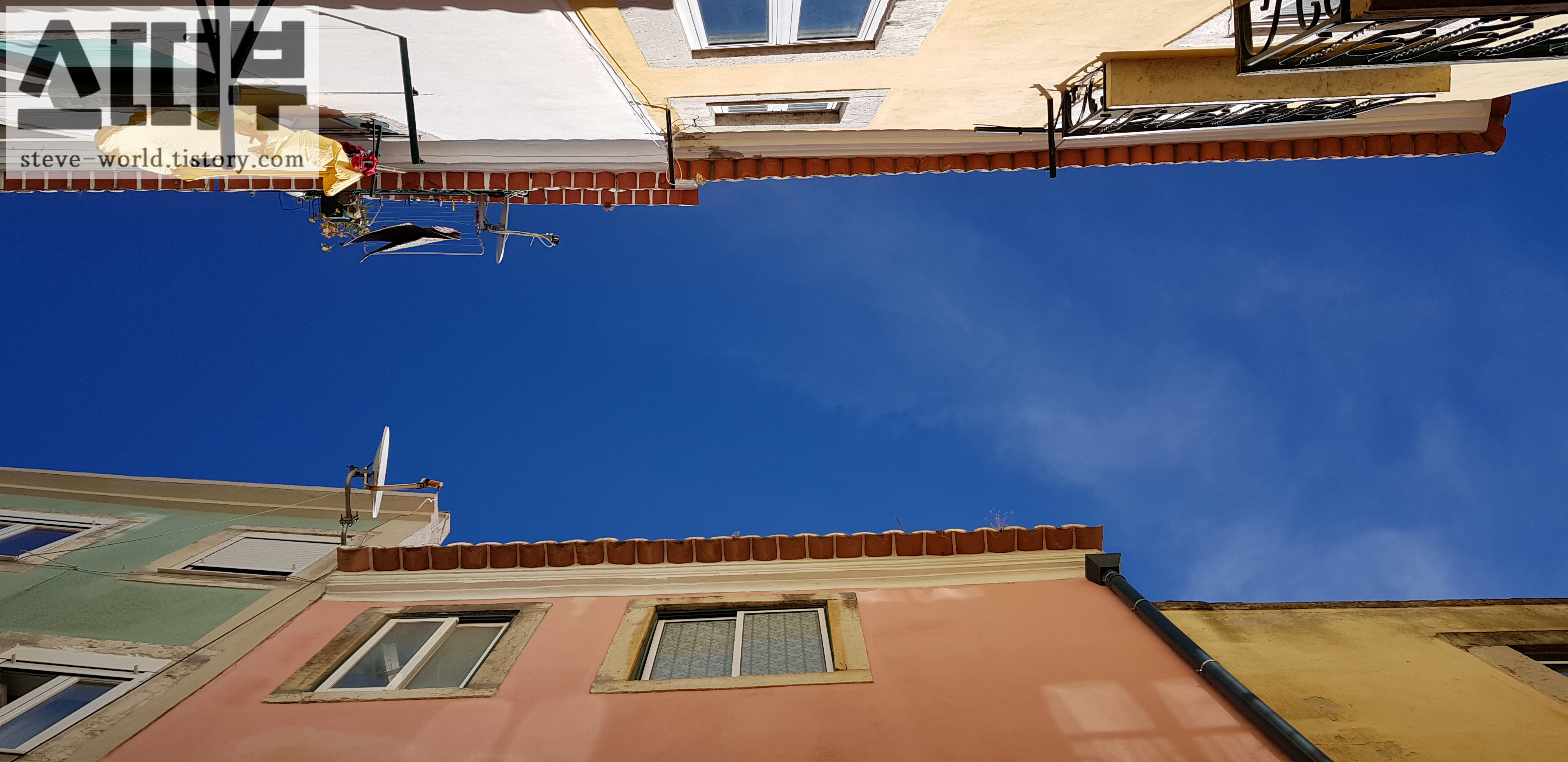 포르투갈에서 마지막 날 보았던 골목 사이의 하늘이 잊히질 않습니다. 파스텔 톤의 알록달록한 벽과 붉은 지붕의 끝퉁이, 파란 하늘, 마지막 날의 그 아쉬움마저도 무척 즐거웠던 여행이었습니다.