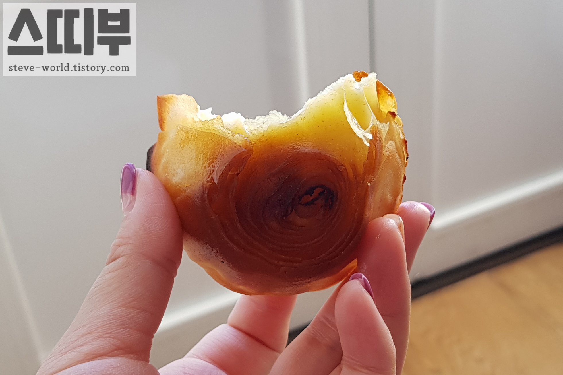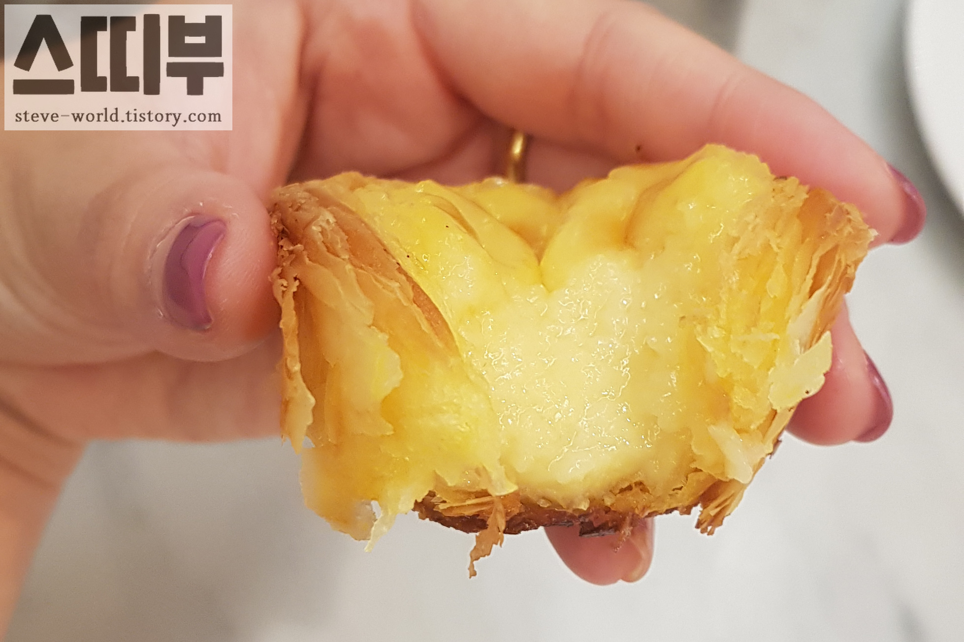 두 번째로 방문한 운이 좋게도, 만테이가리아에서 바로 나온 뜨거운 나타를 맛볼 수 있었습니다. 첫째 날 방문한 시각보다 한시간정도 늦게 방문했는데, 막 한판이 나왔는지 뜨거운 나타를 받았습니다. 커스타드 크림이 정말 용암과도 같았는데, 첫째날 먹은 따뜻한 에그타르트와는 또 완전 다른 에그타르트였습니다.