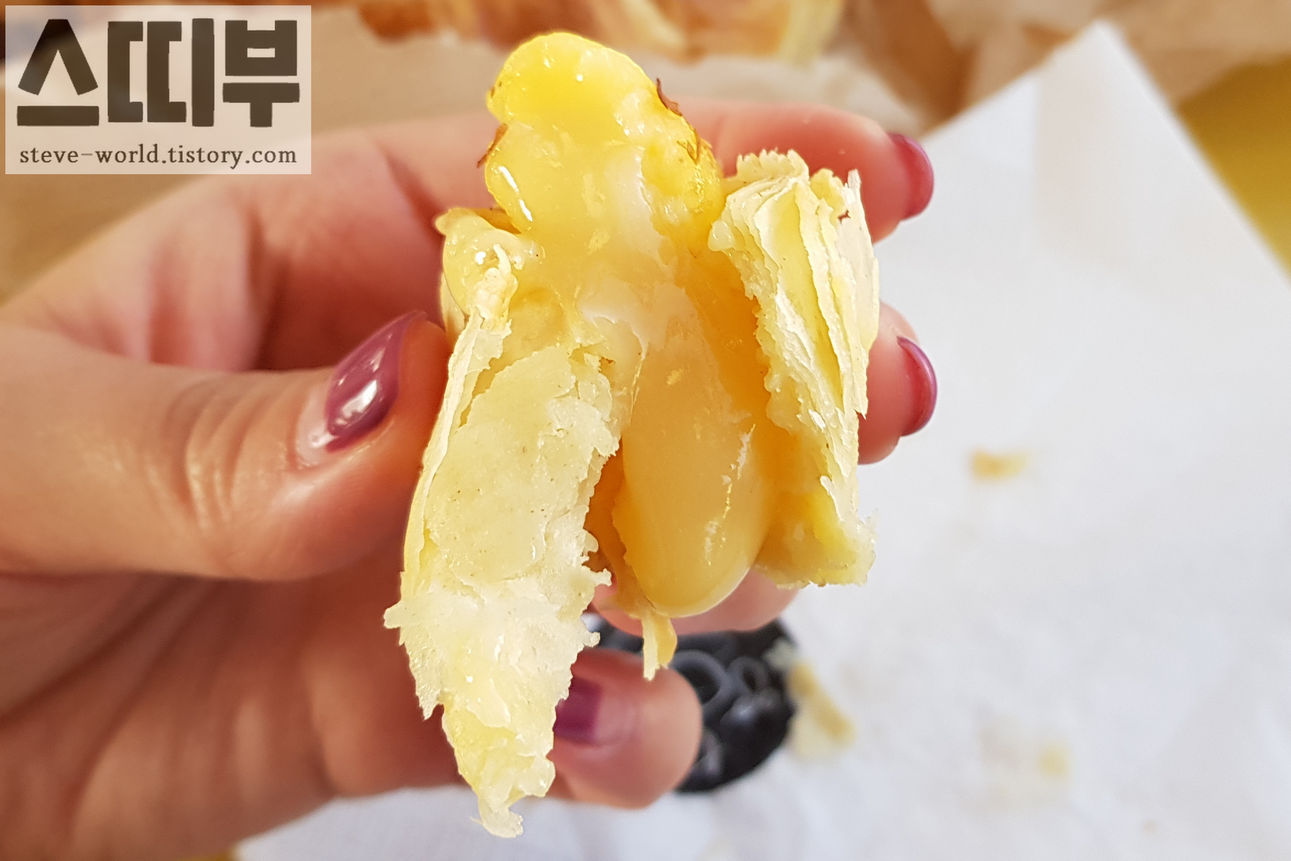 바삭바삭한 겉 파이지와 뜨겁게 커스타드 크림을 머금은 속
