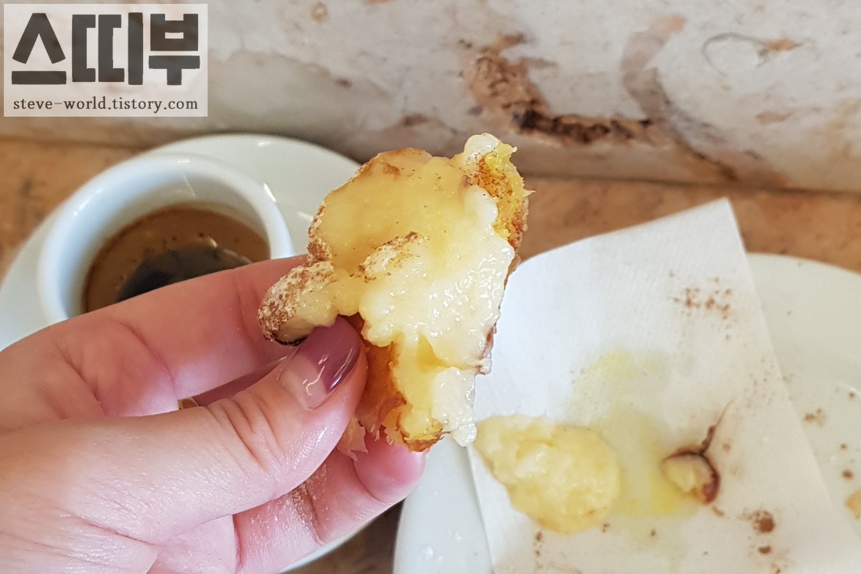 너무 뜨거운 탓에 커스타드 크림이 흘러내렸어요. [2] Blu Coffee Shop 블루 커피샵, 포르투 캄파냐 역 내에 있는 카페