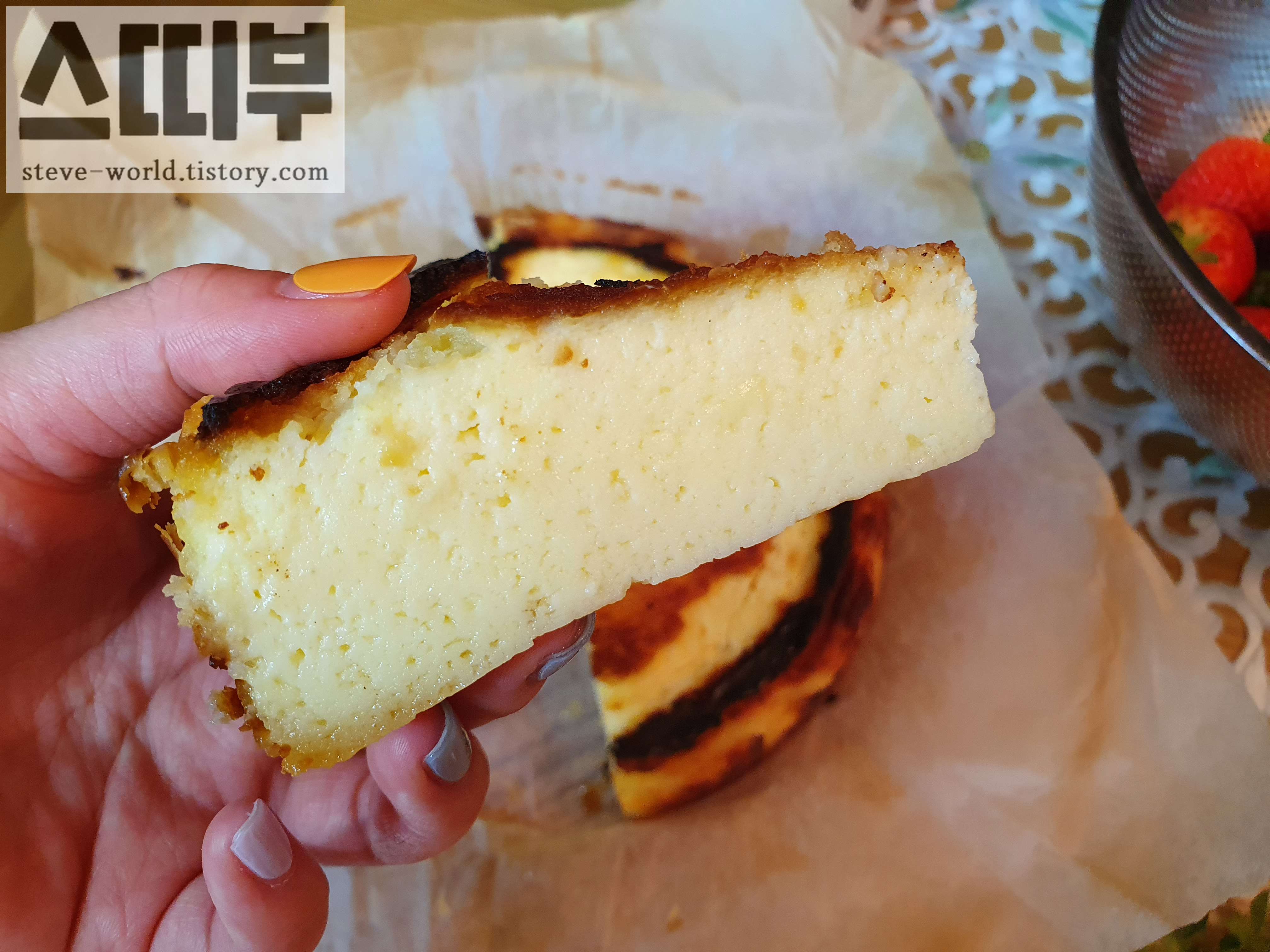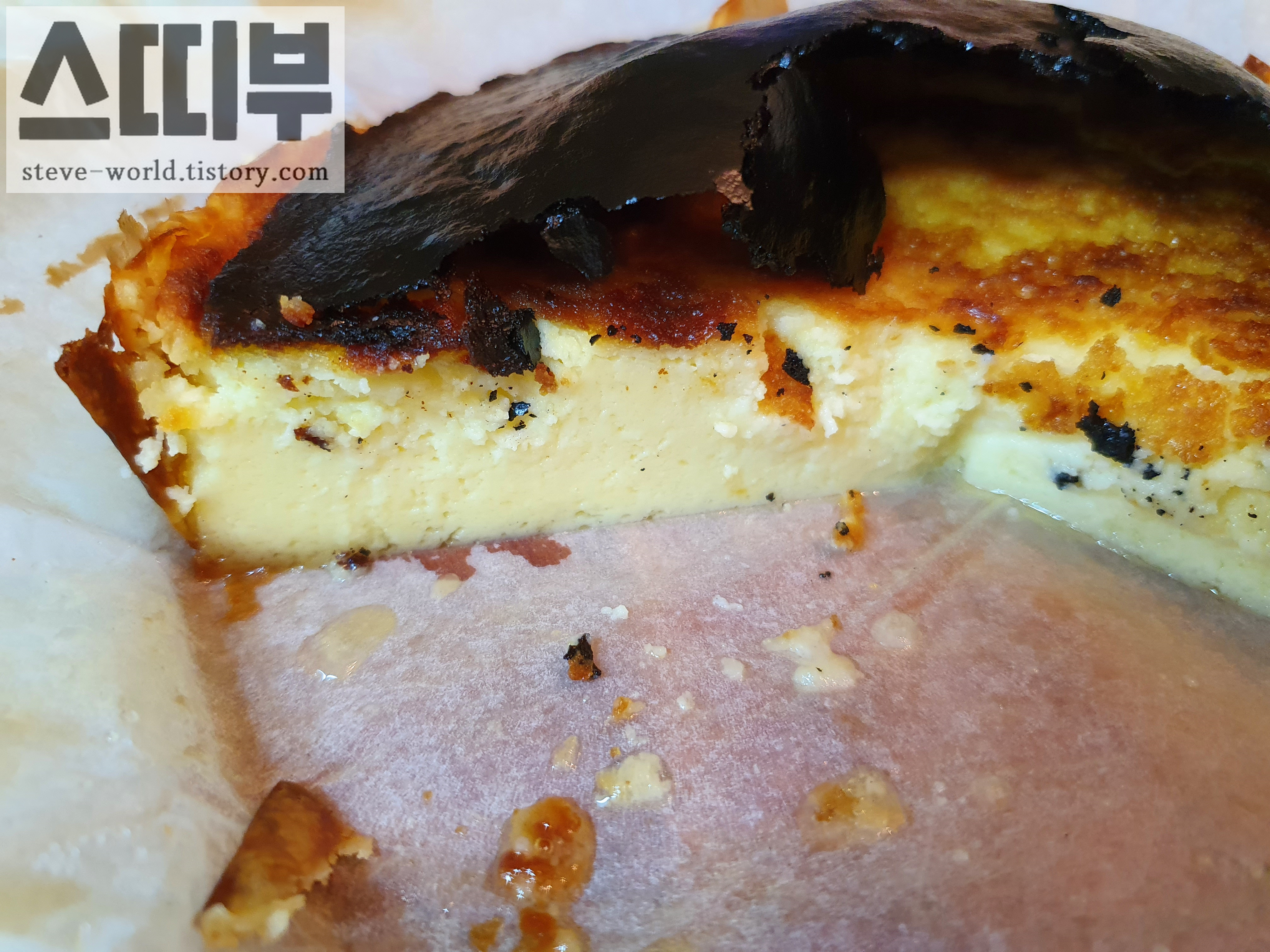 갓 만든 바스크 치즈케이크는 크림치즈의 묵직한 맛과 느끼함이 공존하는 맛입니다.