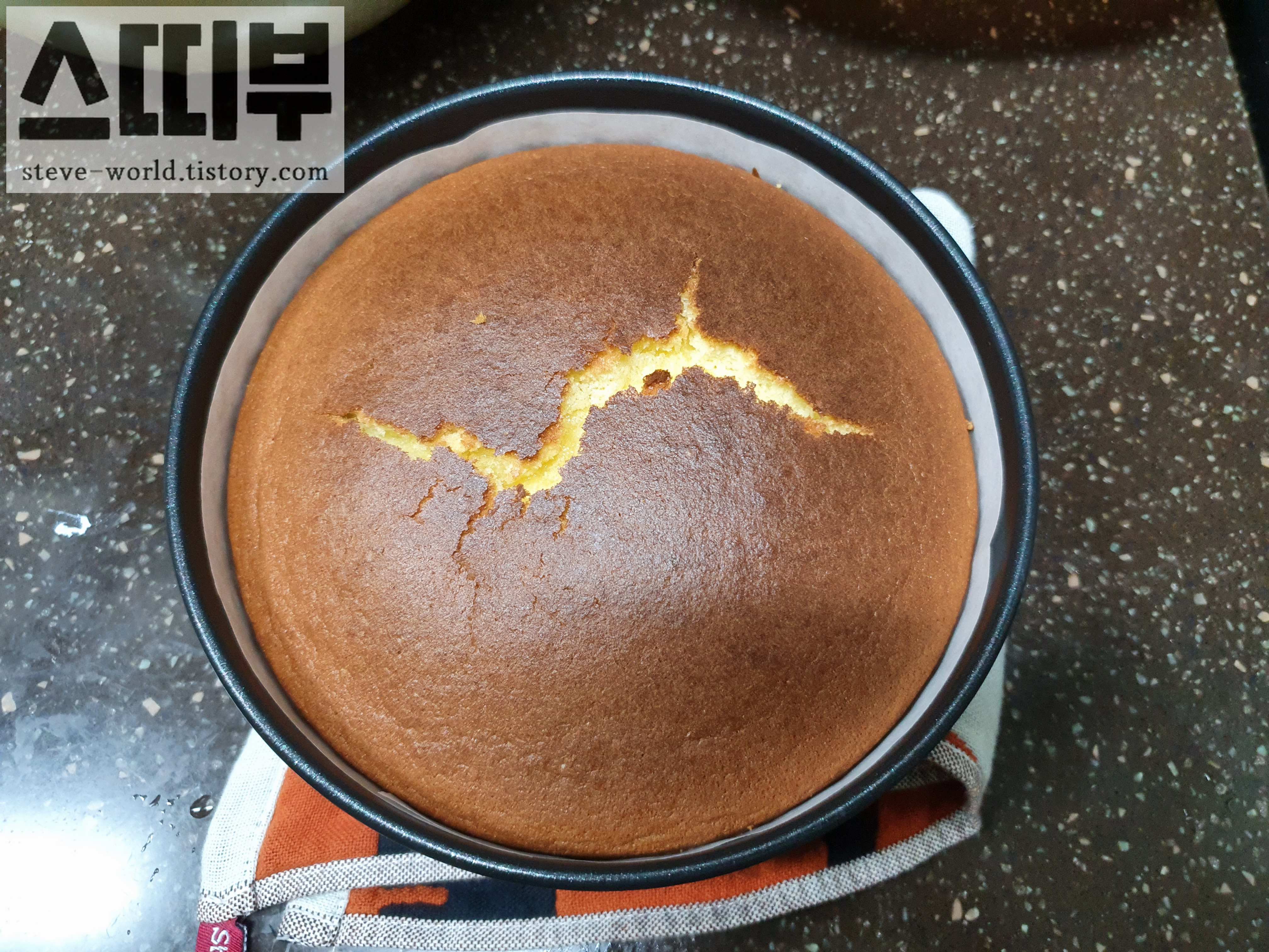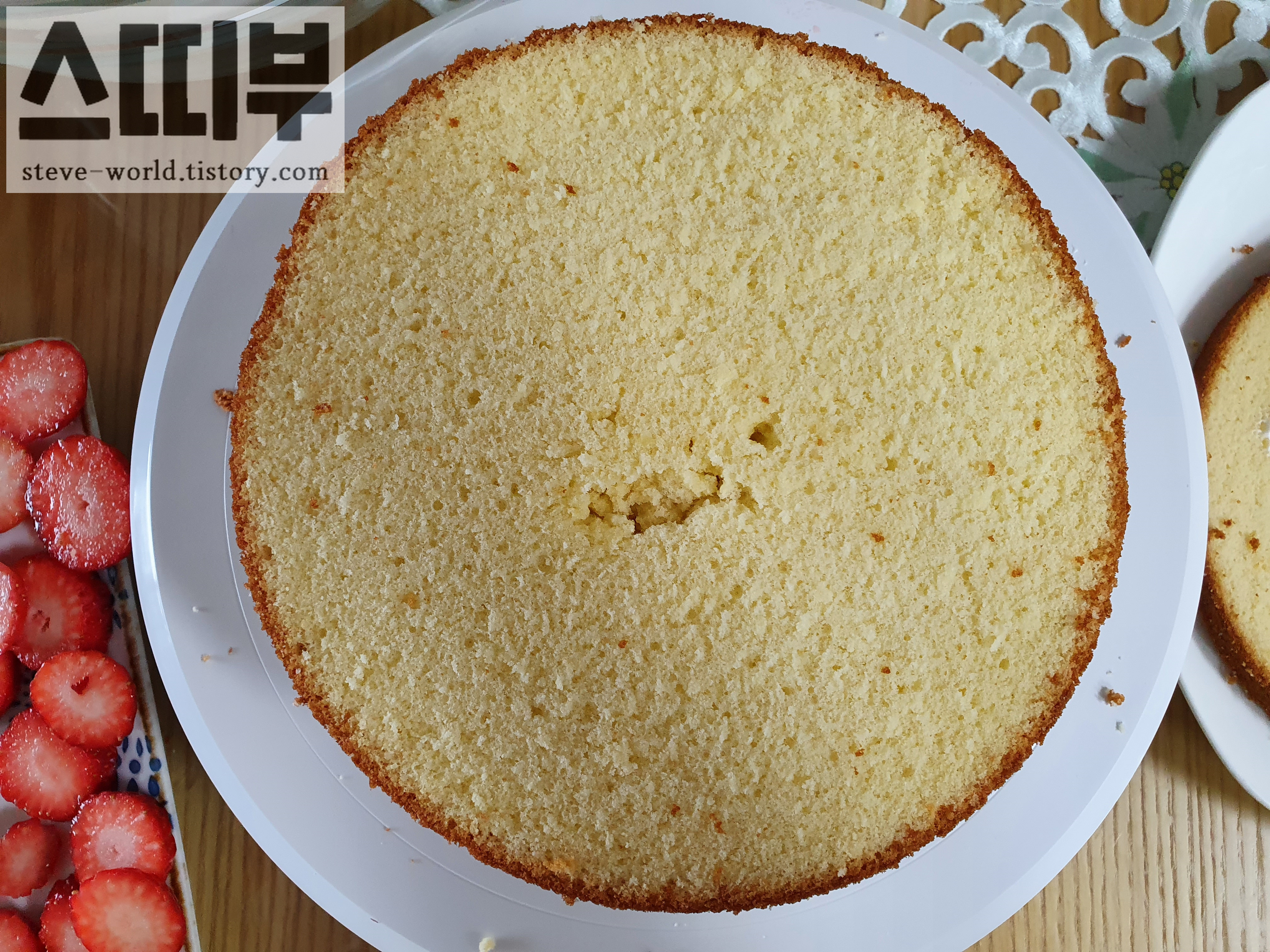 물론 윗부분은 잘라낼 거라 터져 나와도 케이크 만드는 데는 문제없습니다.