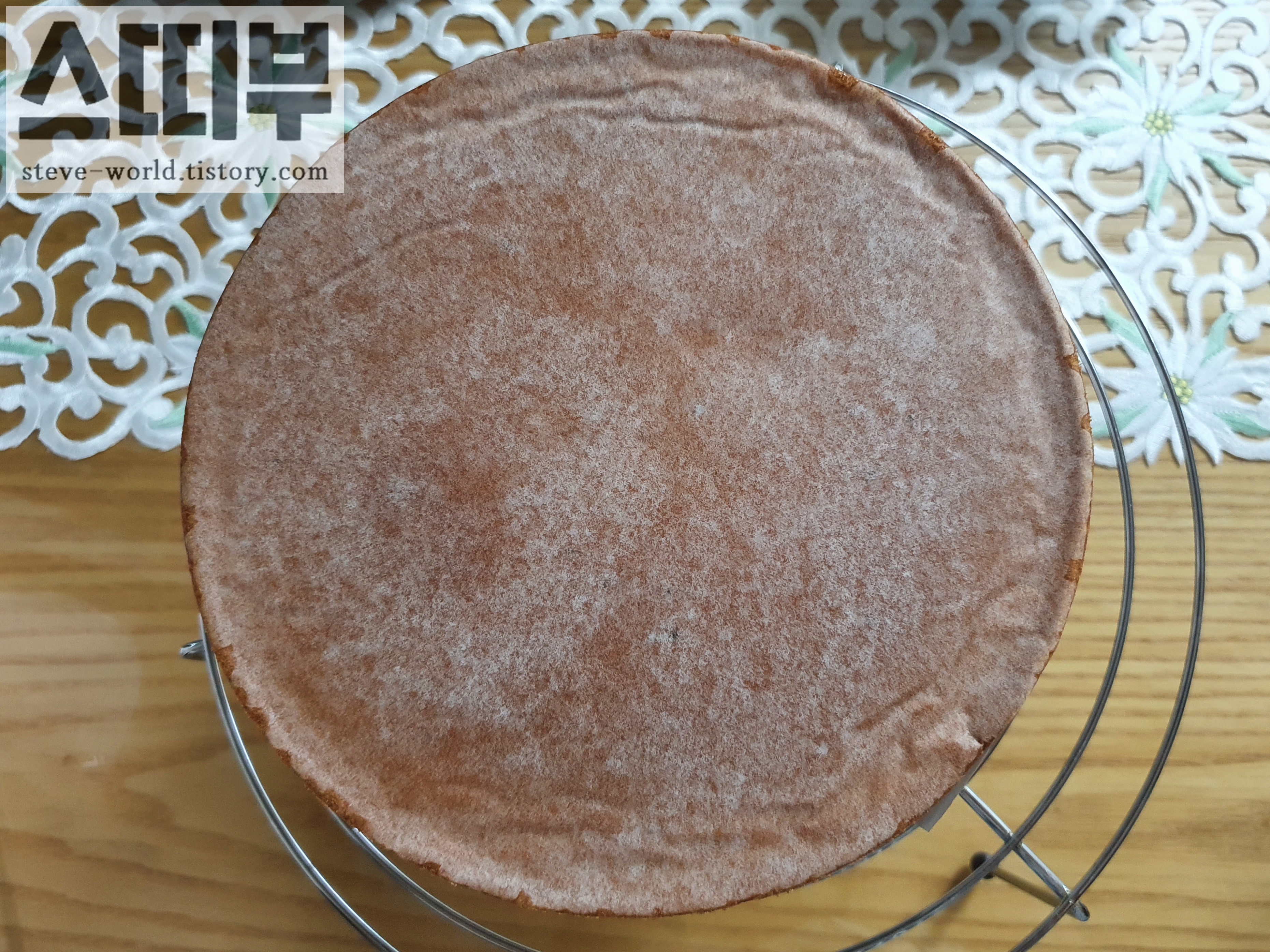 틀을 탕탕 친 후 식힘망 위에 꺼낸 모습입니다.