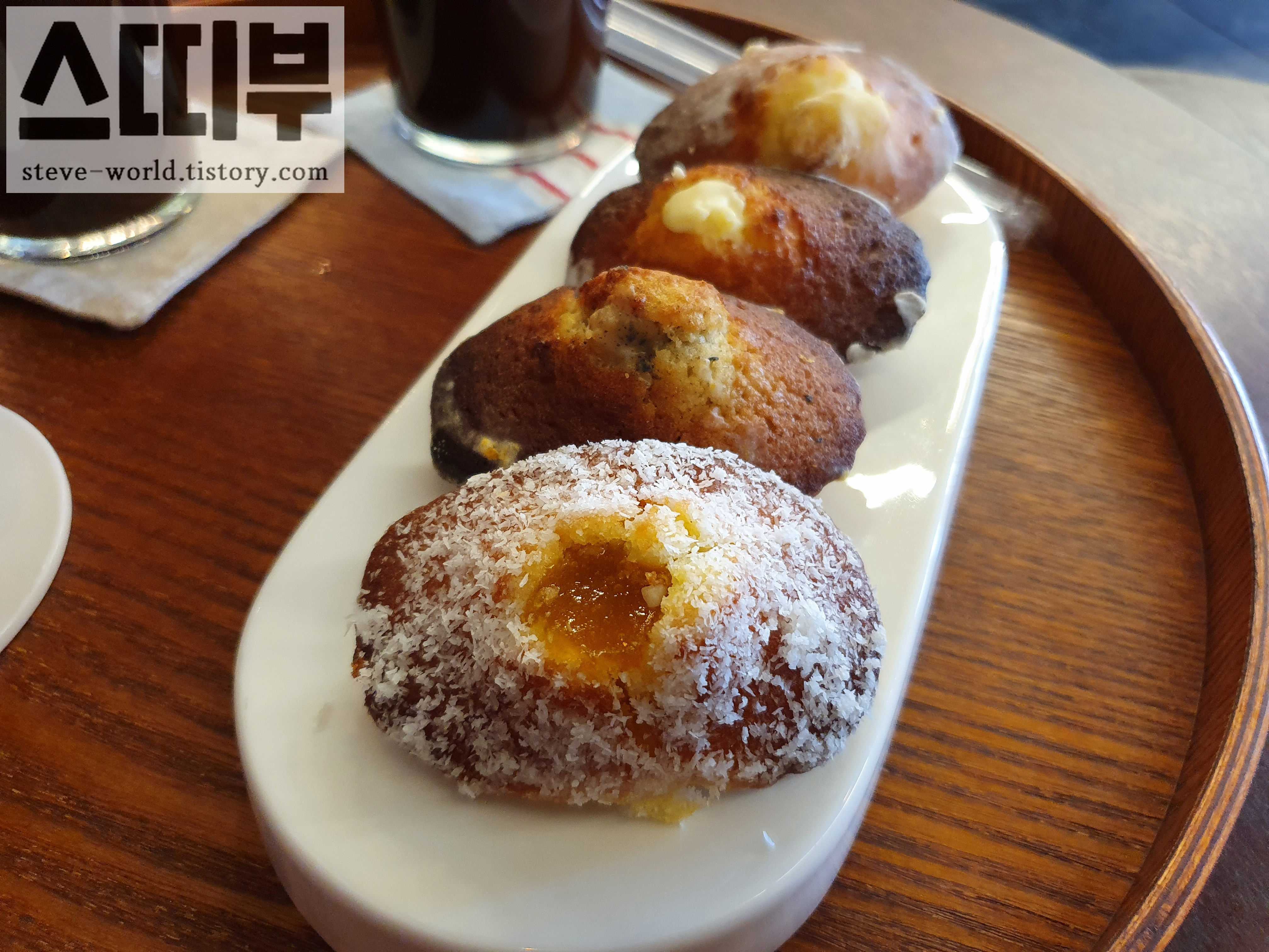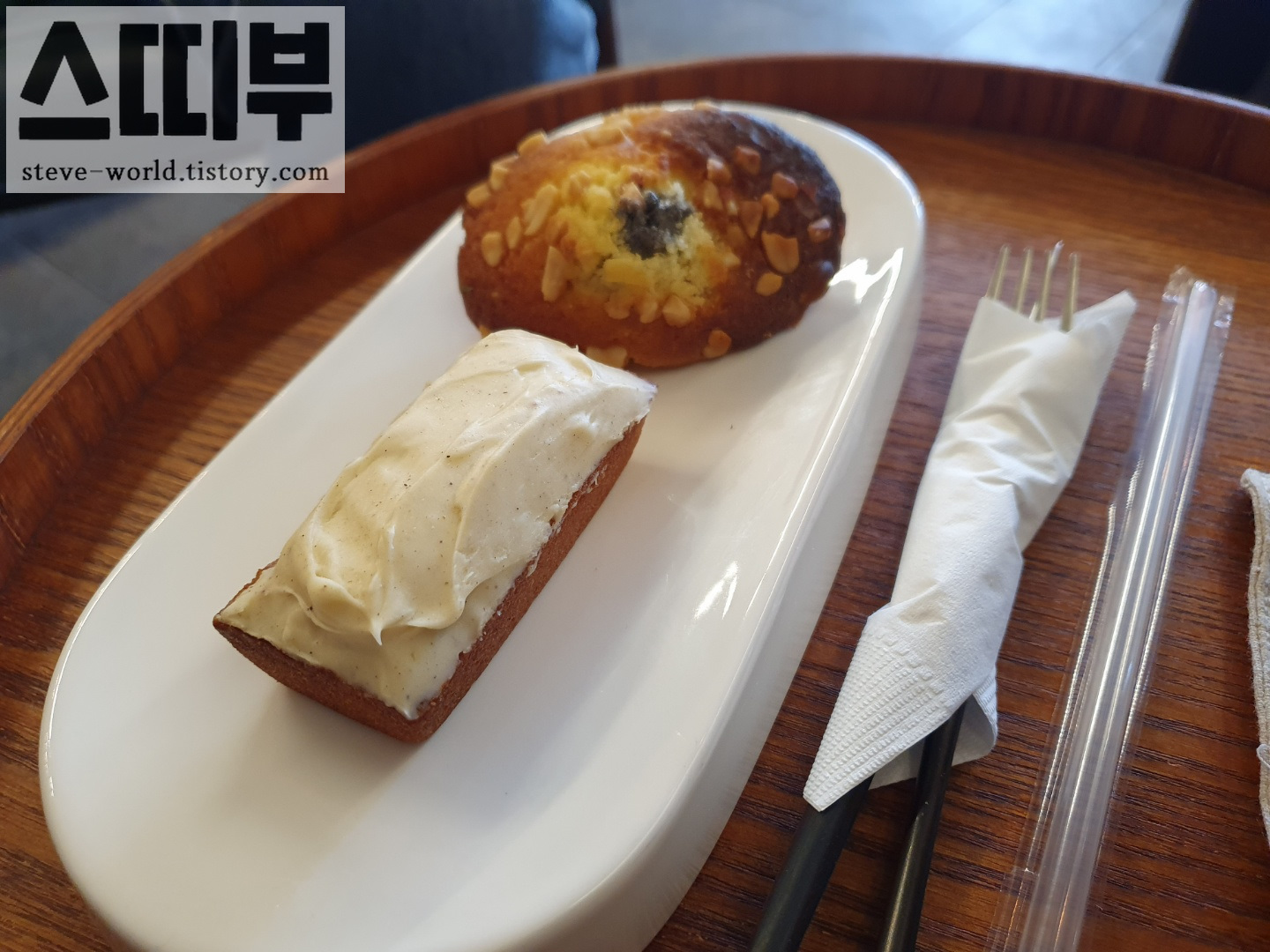 일행이 한 분 더 와서 커피 한잔과 마들렌 하나, 휘낭시에 하나를 추가 주문했습니다.