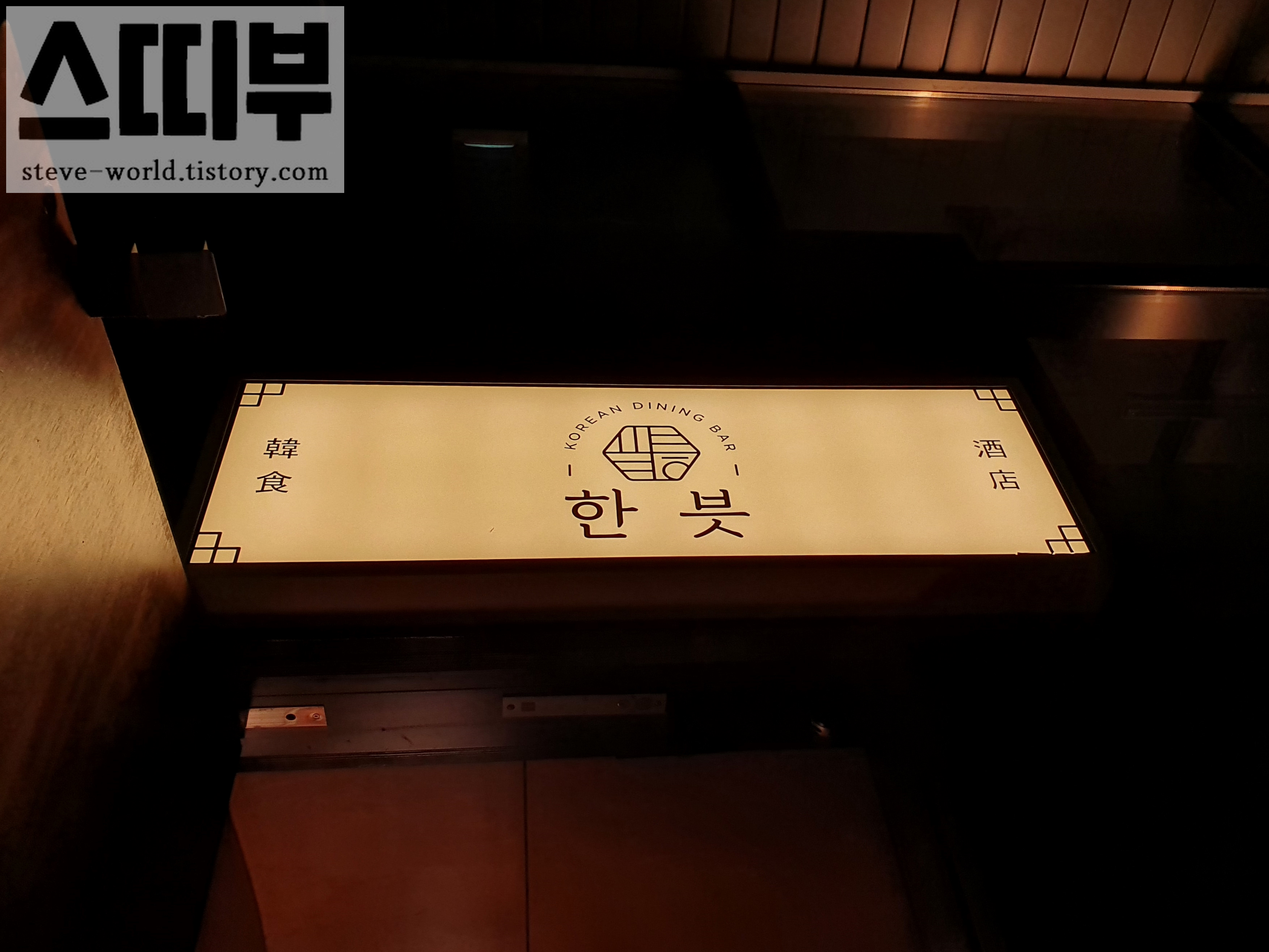 가게를 나오면서 찍은 어두움과 잘 어울리는 한븟의 간판