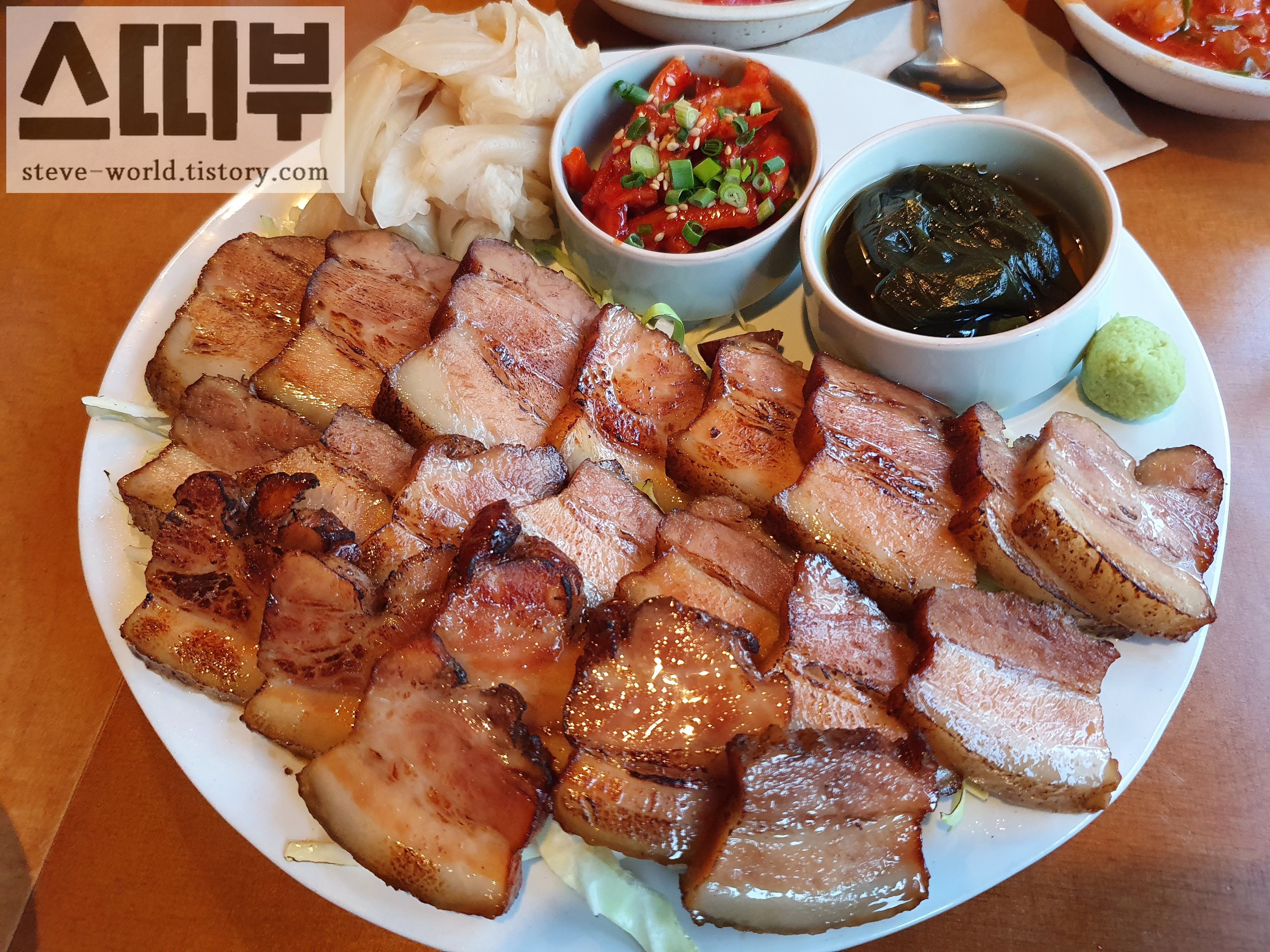 잡내 없이 깔끔한 통삼겹 간장구이입니다. 야들야들한 식감도 좋고 간도 적절해 맛있었습니다.