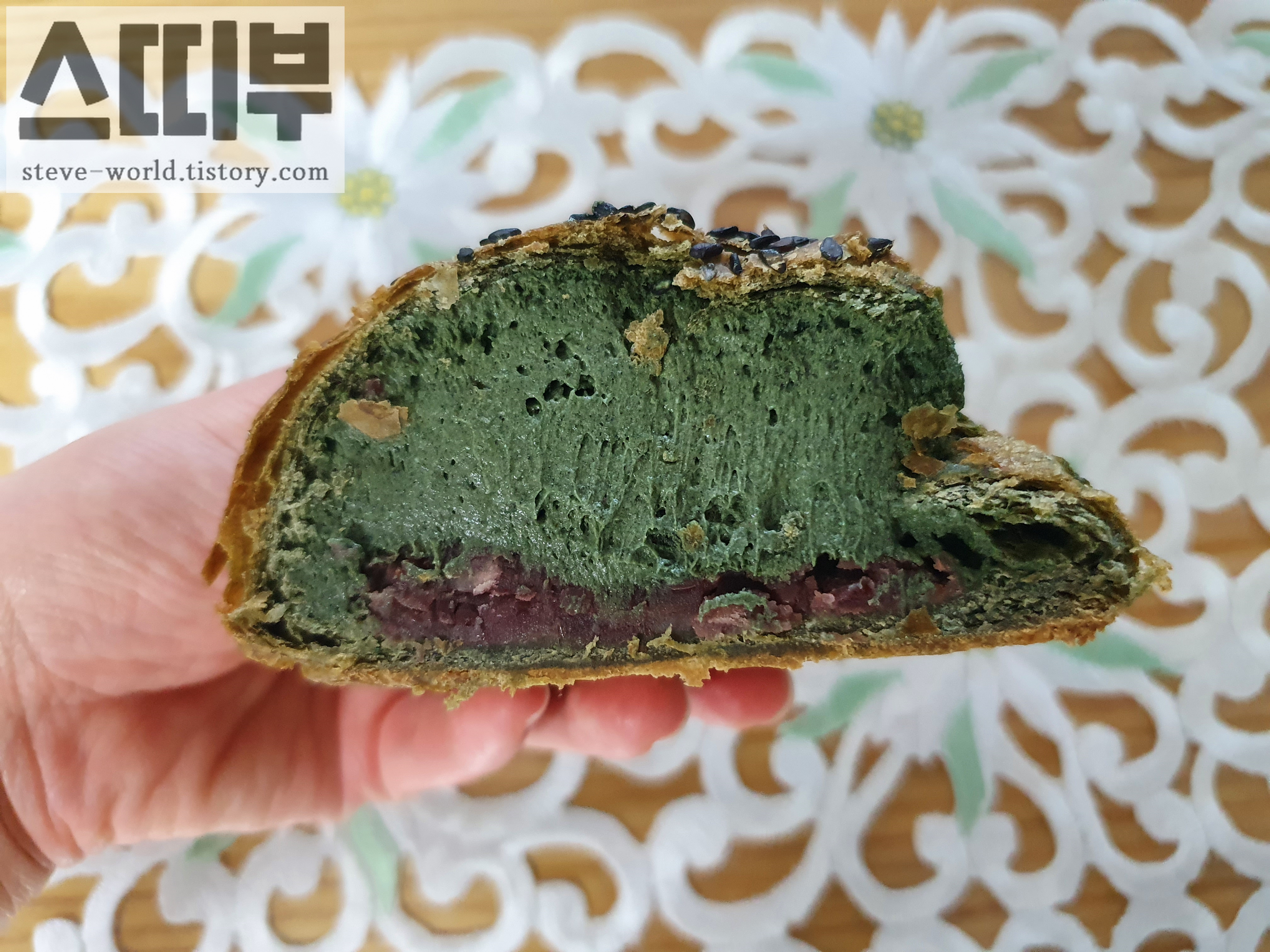 얇게 깔린 단팥도 쑥의 맛과 잘 어우러집니다. 쑥의 담백하면서도 특유의 향 덕분에 크림빵이 느끼하지 않았습니다.