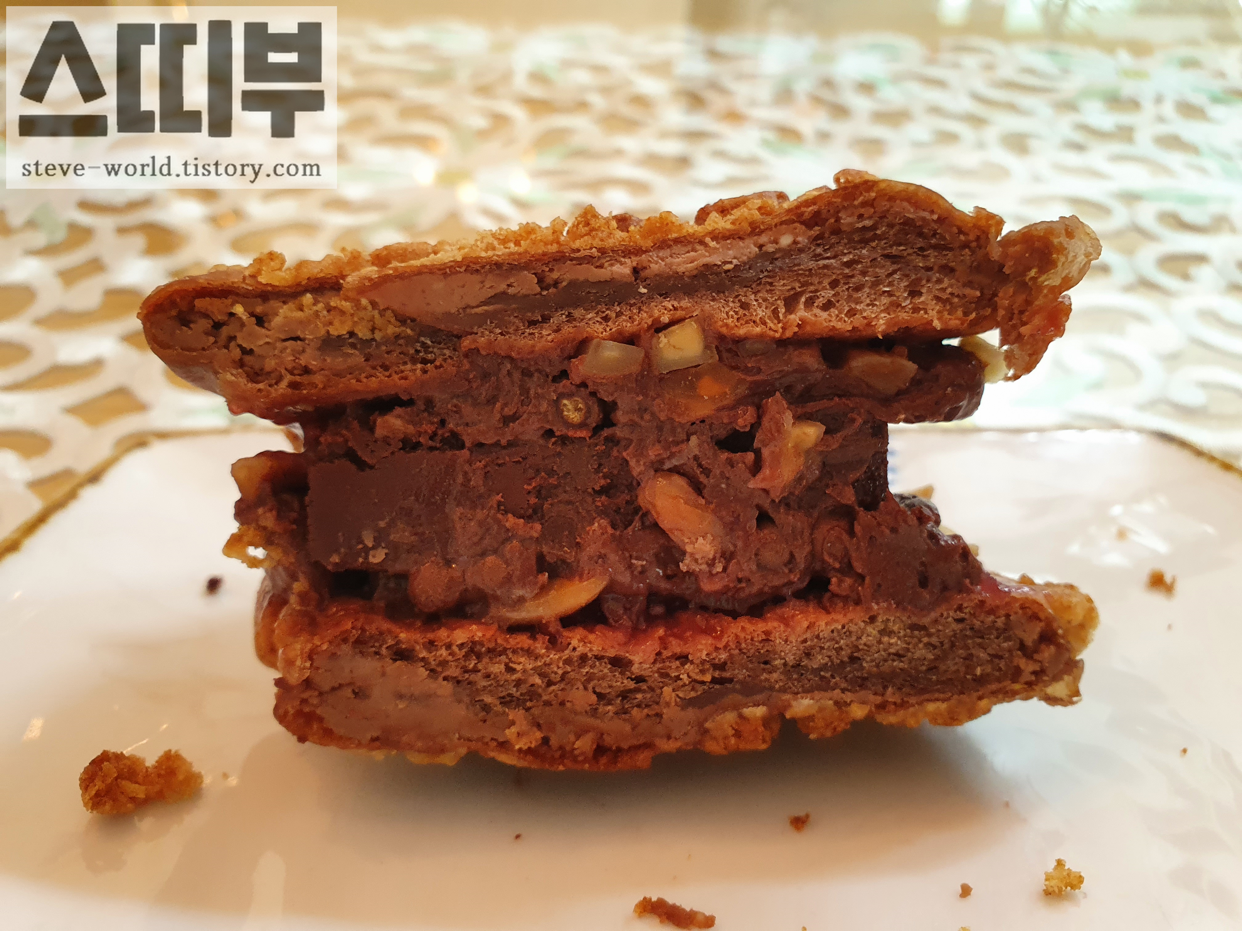 크기는 작지만, 두툼한 두께를 자랑하는 맘모스빵입니다. 빵과 빵 사이 두툼한 초콜렛이 보여주듯 꾸덕한 초코의 맛이 핵심인 빵입니다. 따뜻한 아메리카노와 먹으니 정말 꿀맛이었어요.