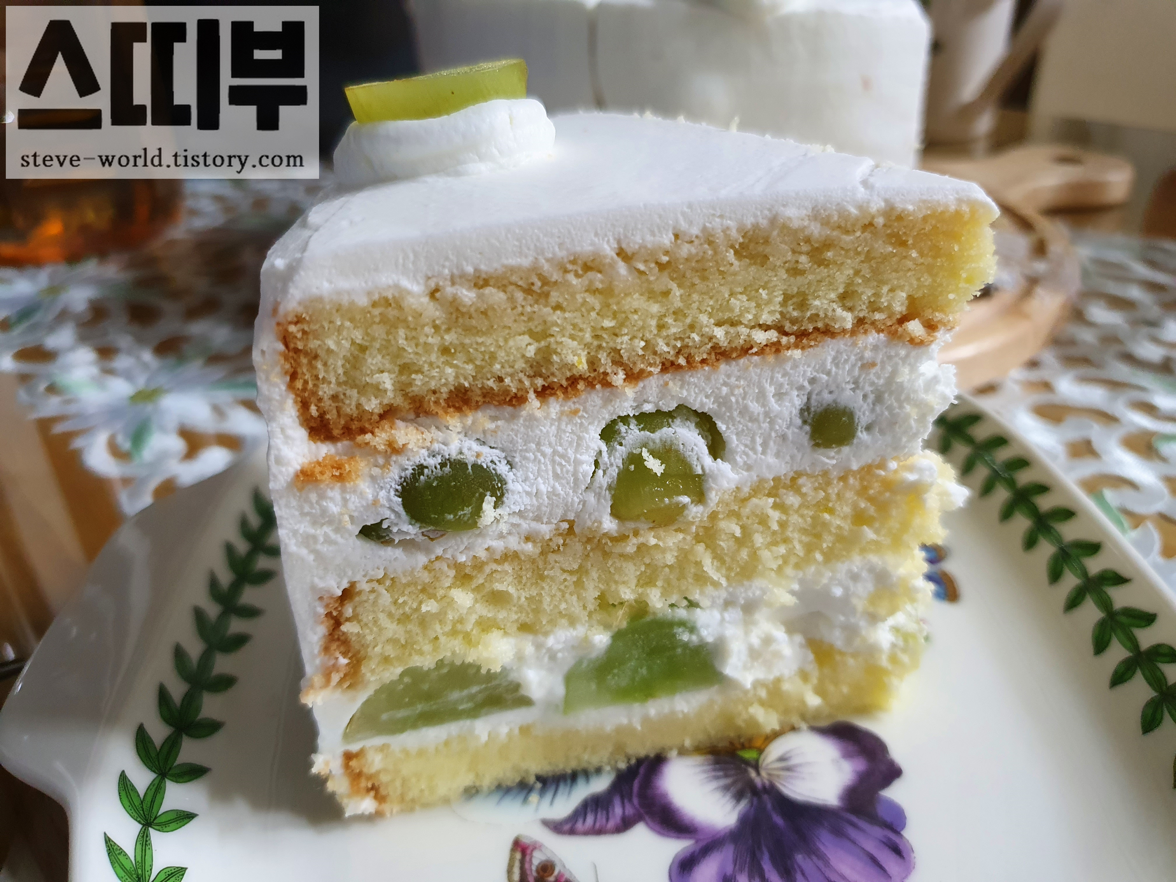 느끼함 전혀 없는 상큼한 요거트 크림과 새콤달콤한 청포도의 조화가 매력적인 정말 맛있는 케이크였습니다. 요거트 생크림은 키위, 청포도 등 새콤한 과일과의 합이 좋은 듯합니다.