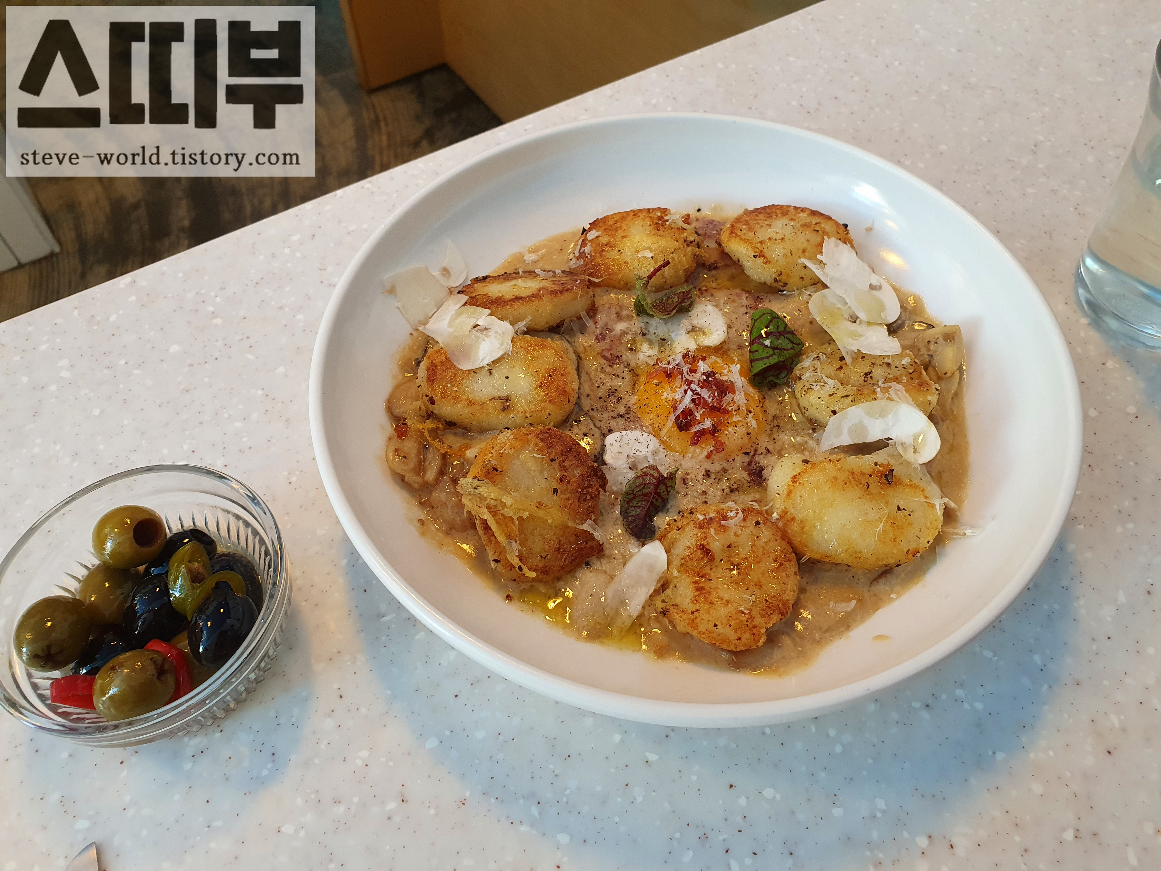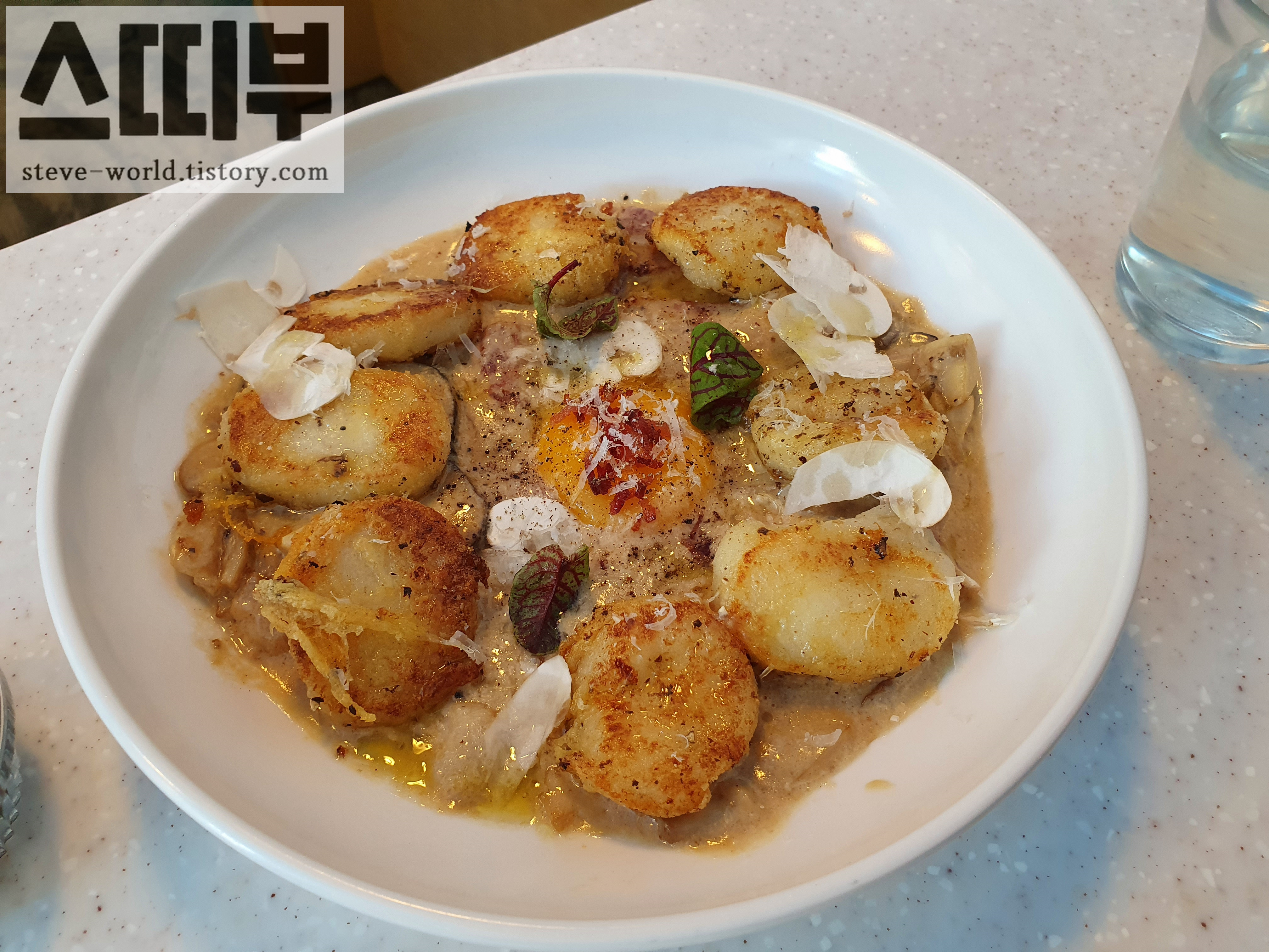 진득하면서도 진한 크림소스의 고소한 맛과 겉은 바삭하면서도 쫀득한 뇨끼의 식감이 정말 잘 어우러진 메뉴입니다.
