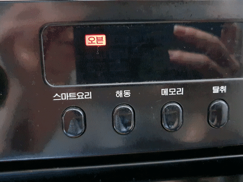 예열이 시작되면, 오븐 옆에 '예열'이라는 글씨가 깜빡거립니다.