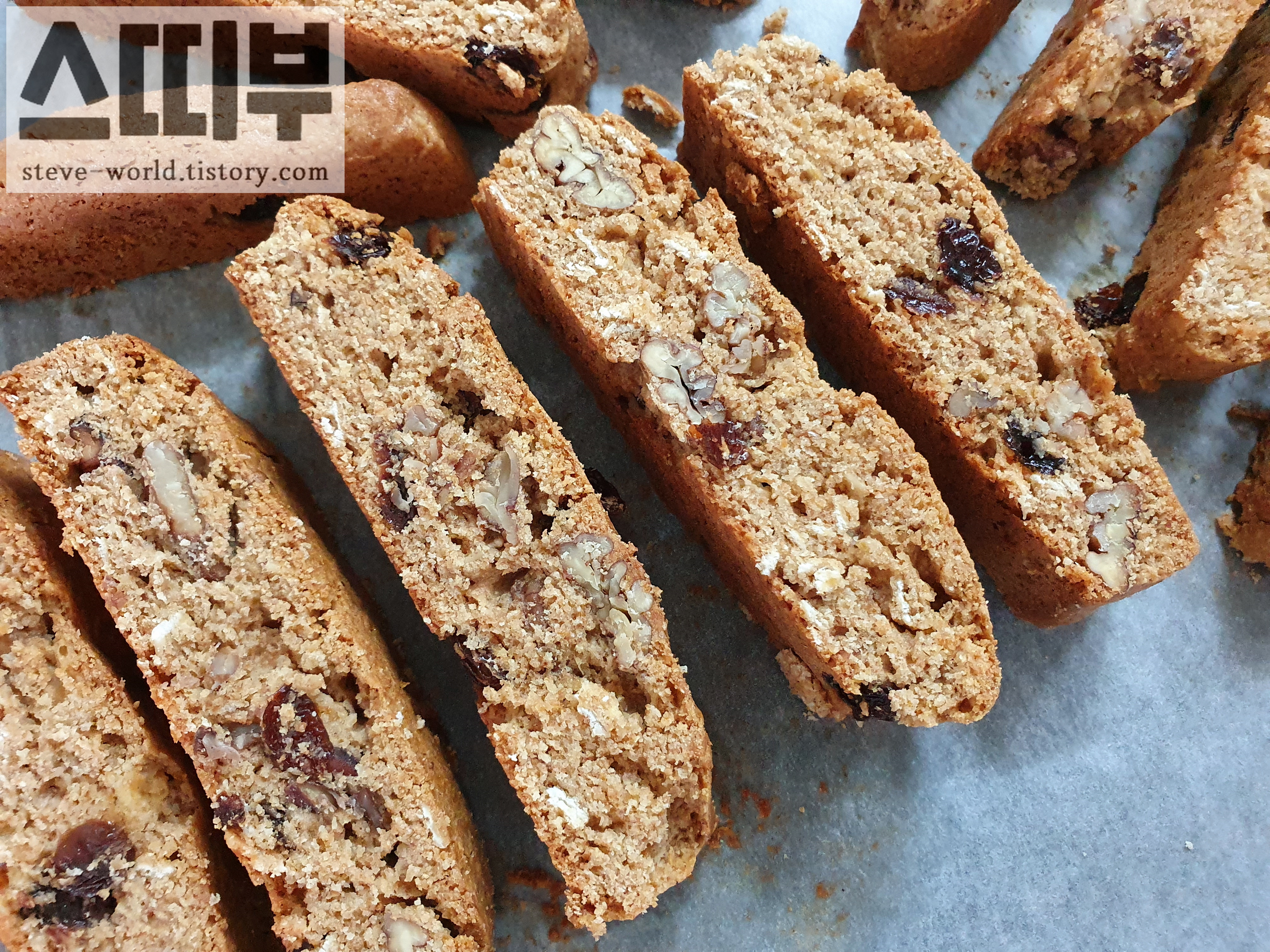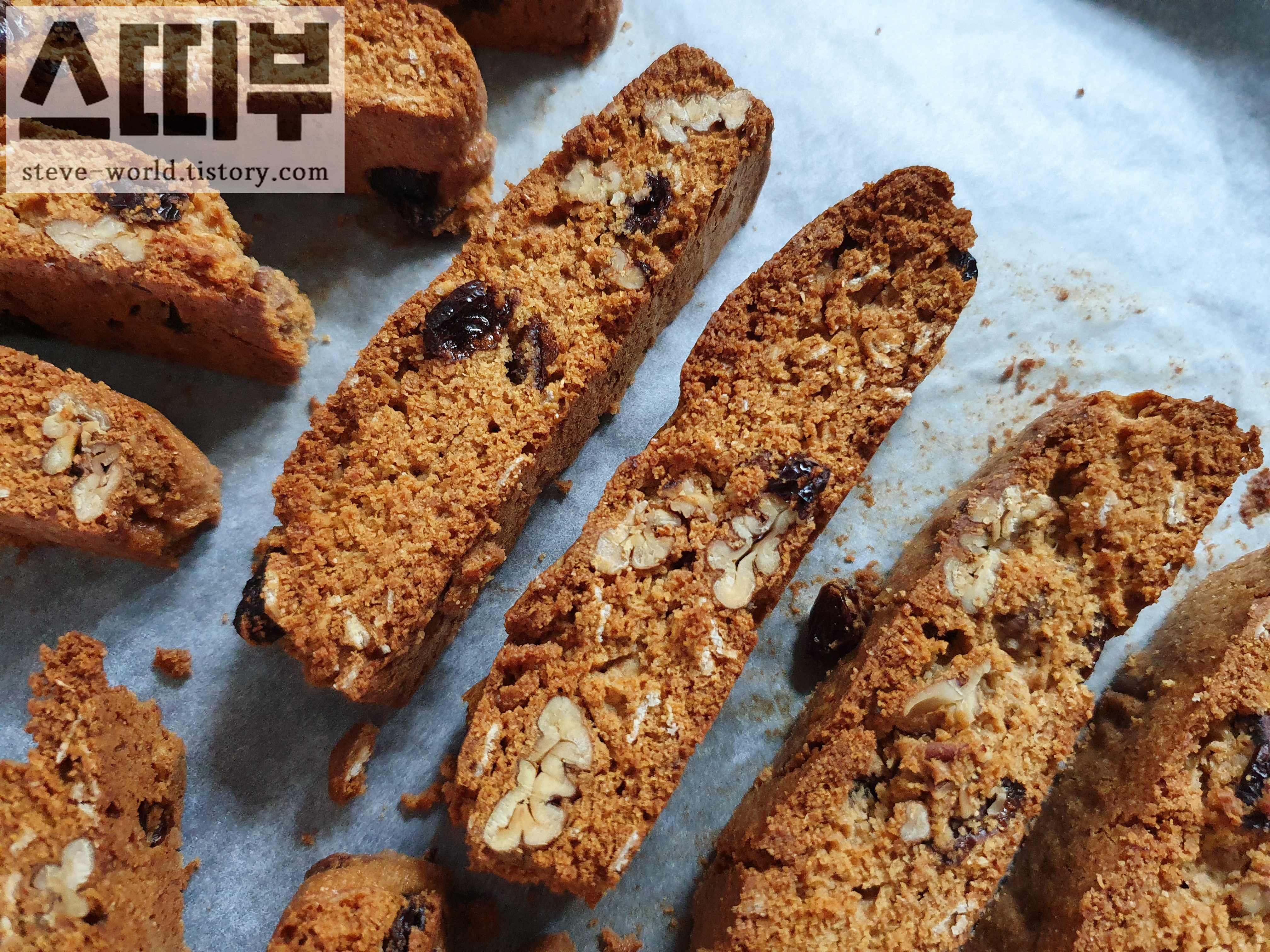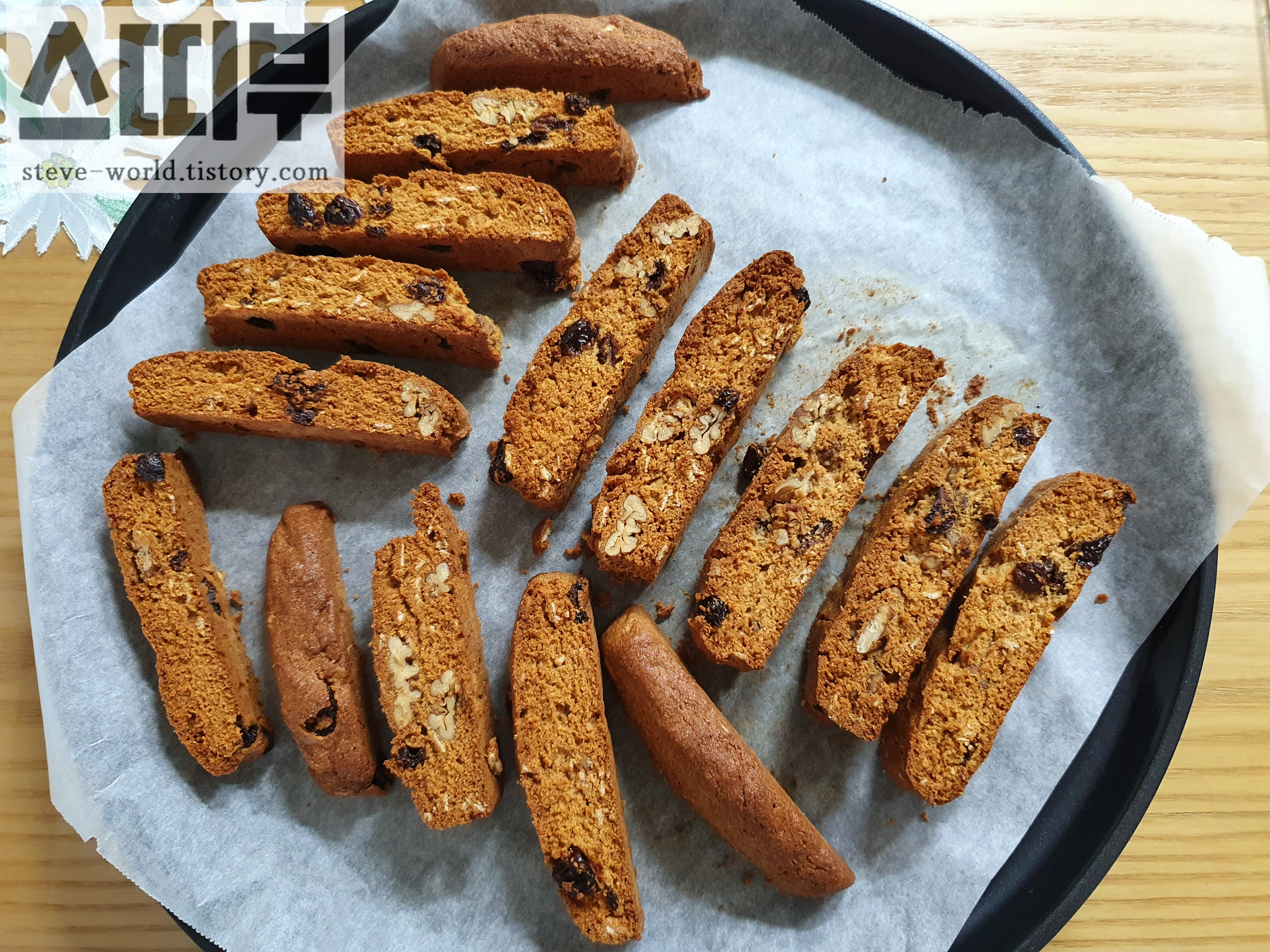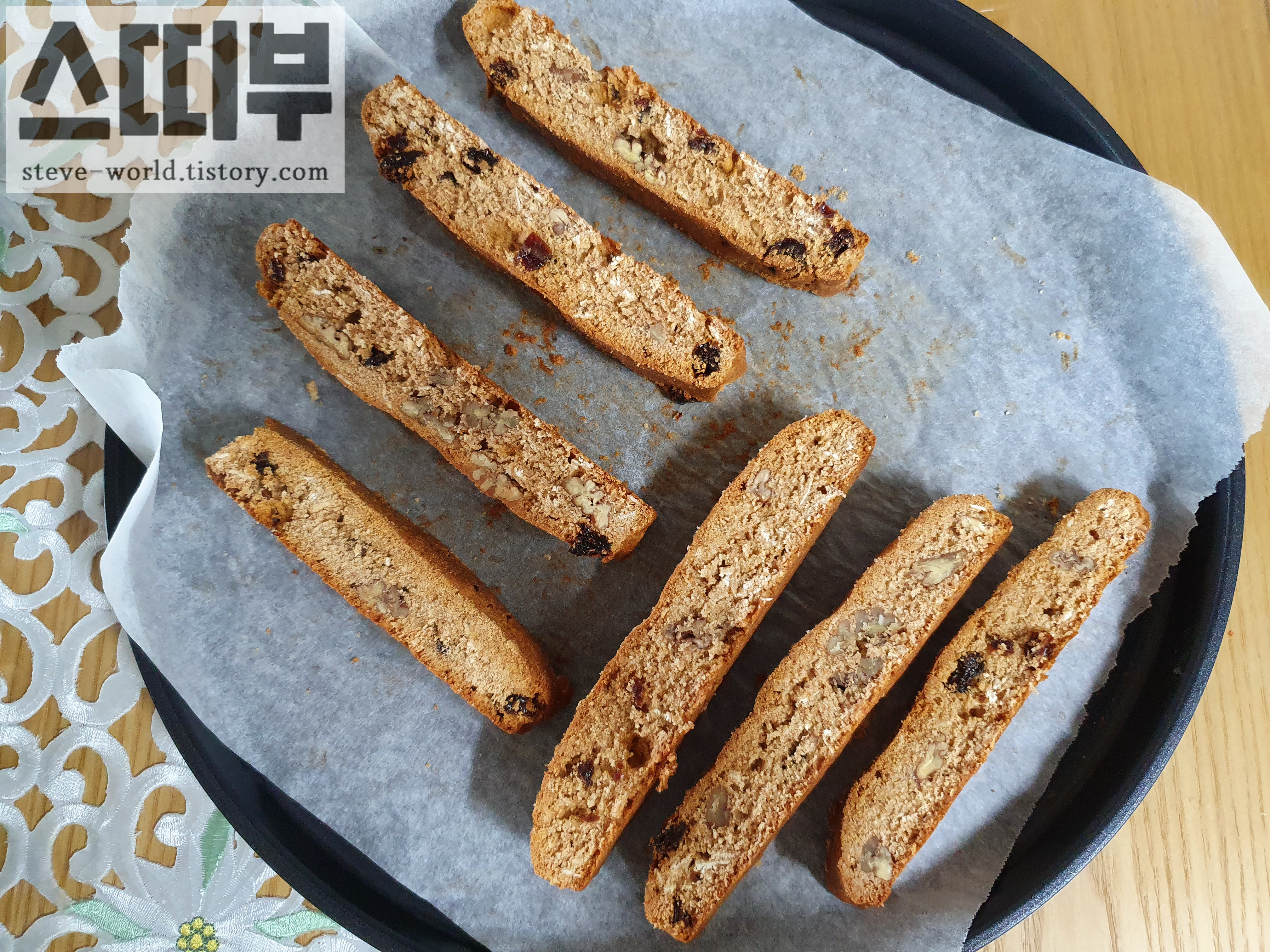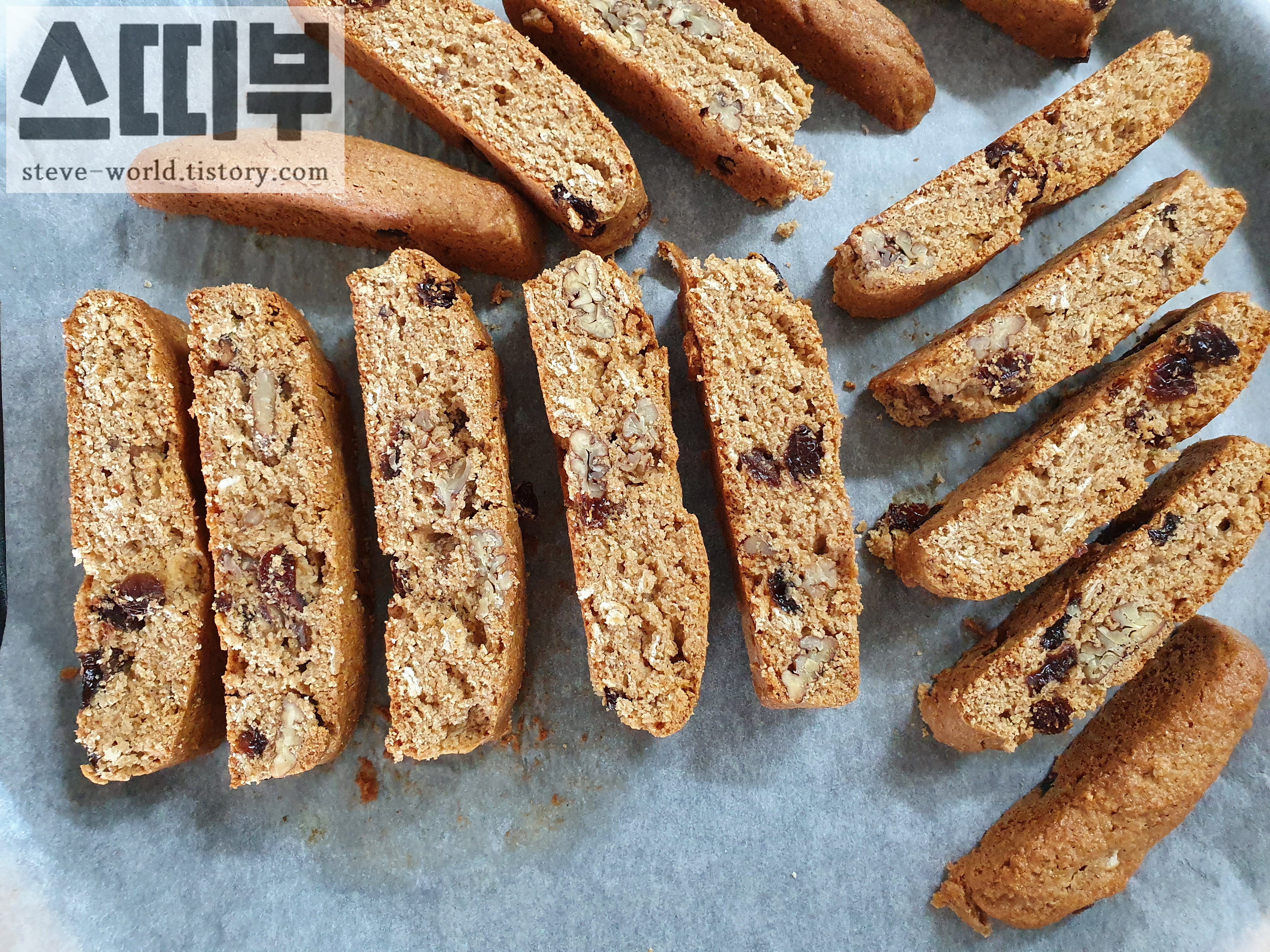 수분이 다 날아가서 더욱 단단하고 고소하면서도 달콤한 비스코티가 완성되었습니다.