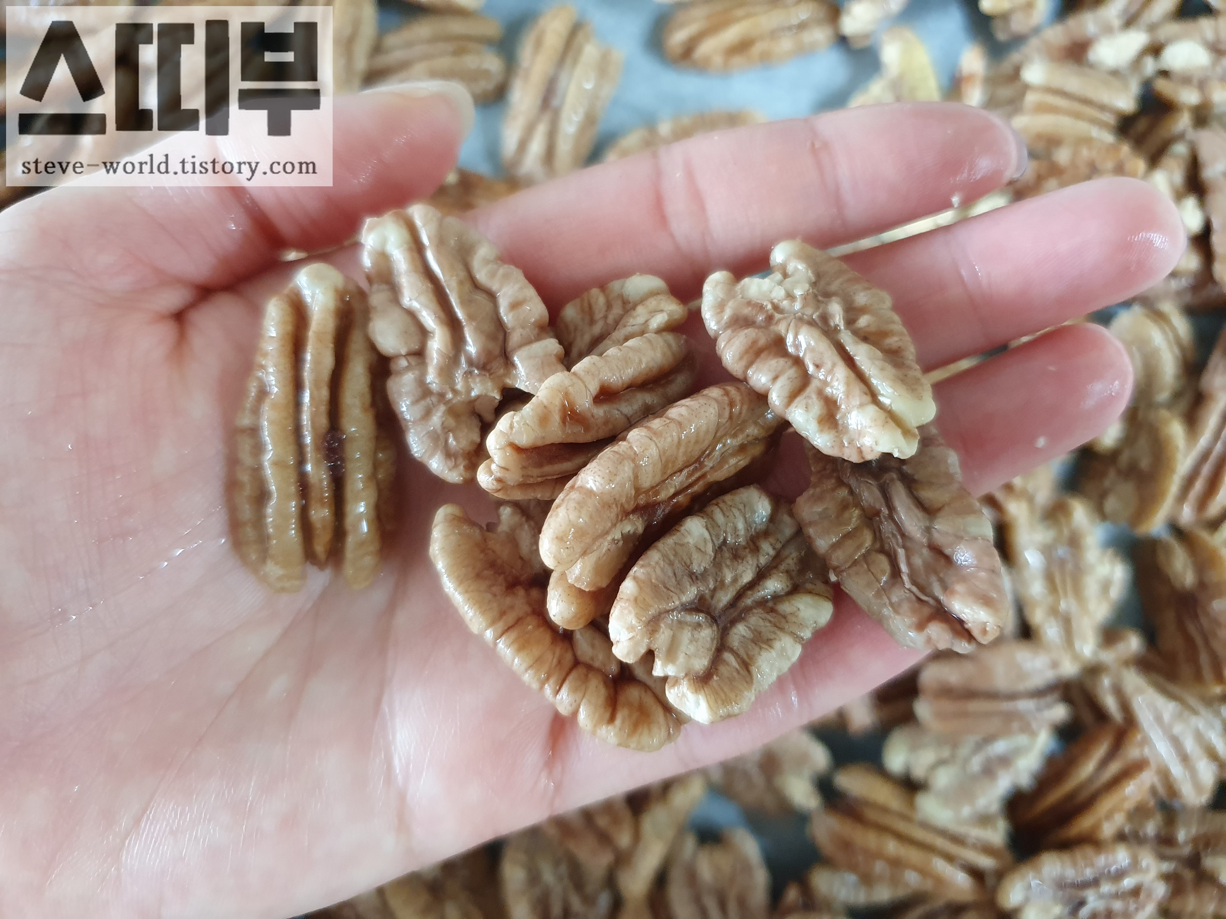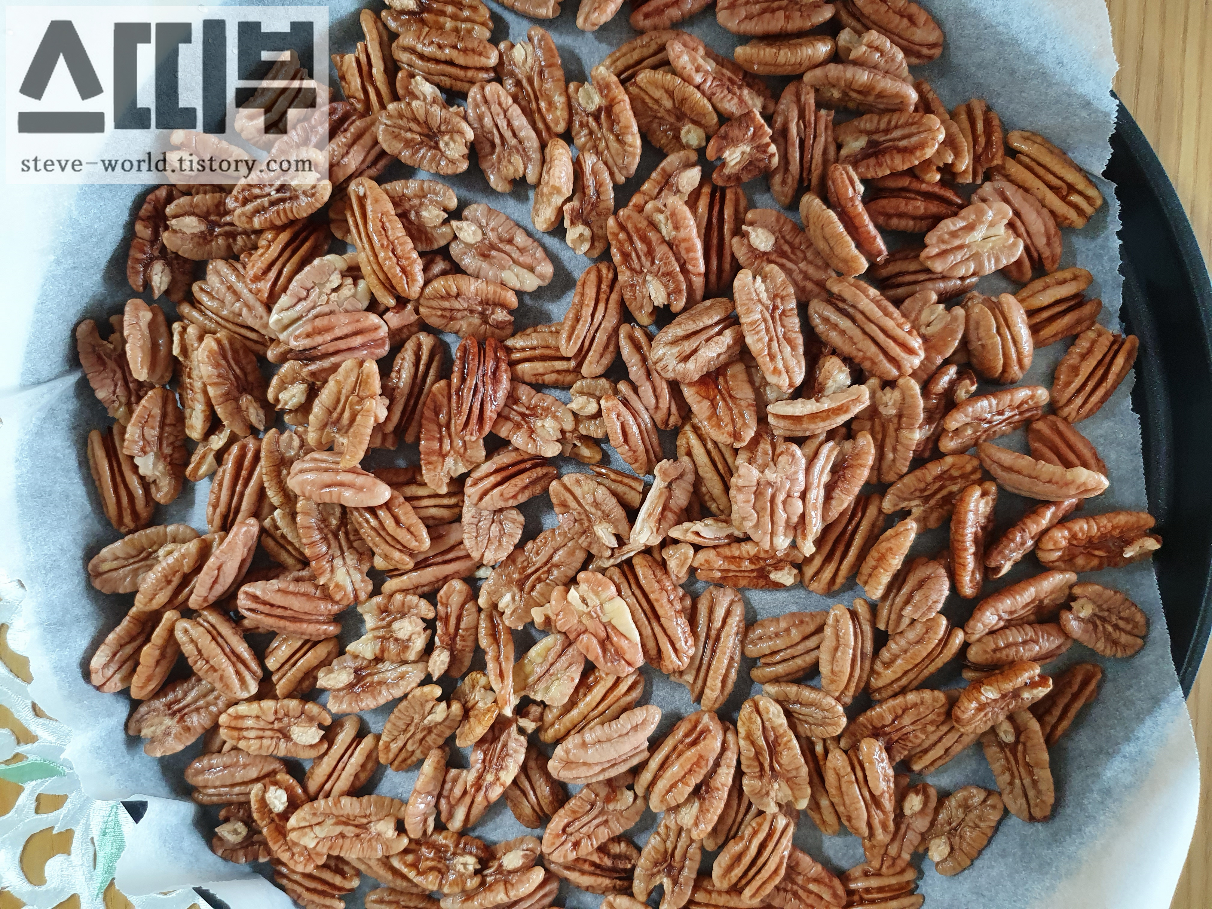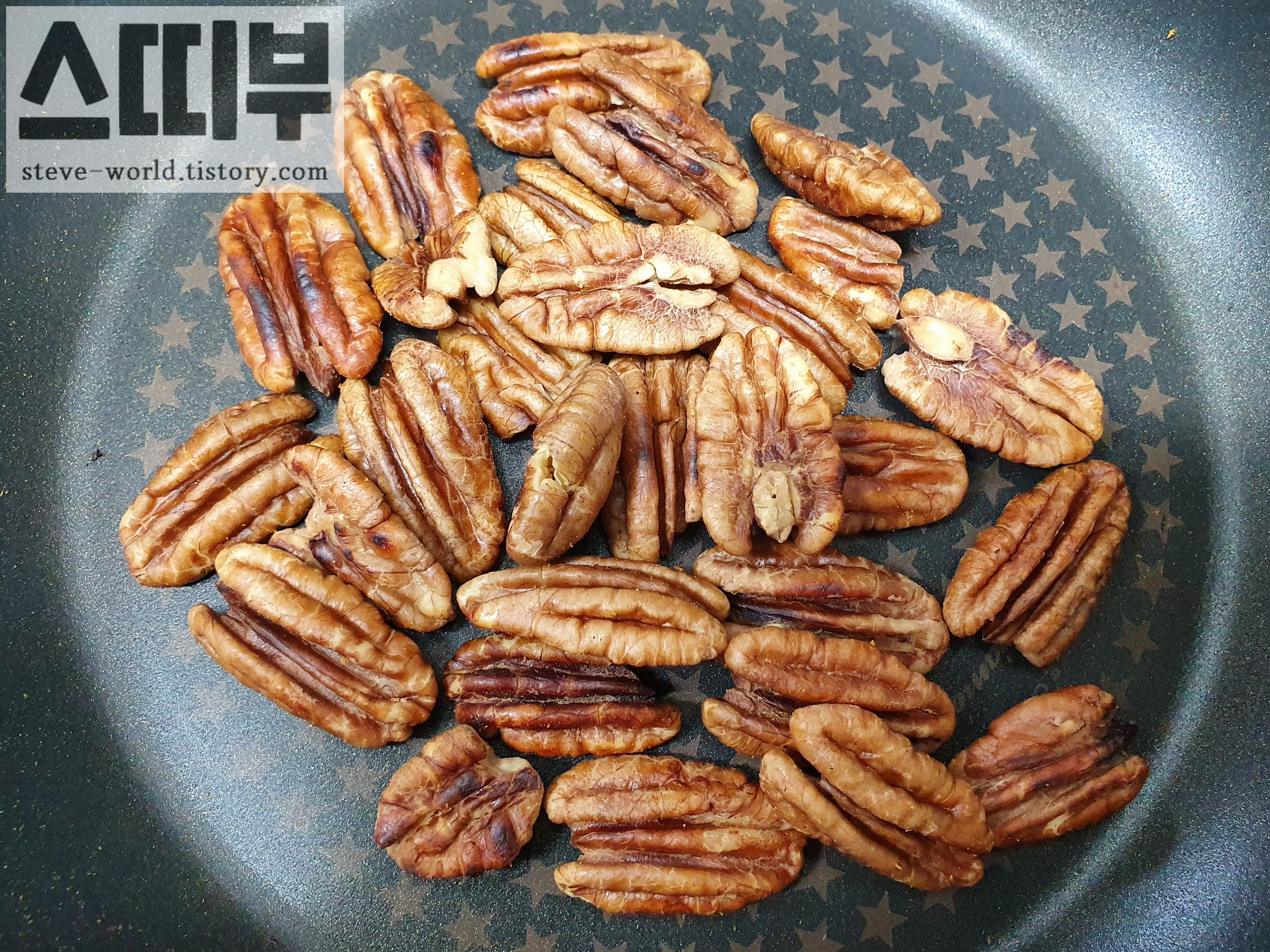 - 피칸 전처리 : 끓는 물에 데쳐 불순물을 제거하고, 마른 팬에 한번 볶아주었습니다.