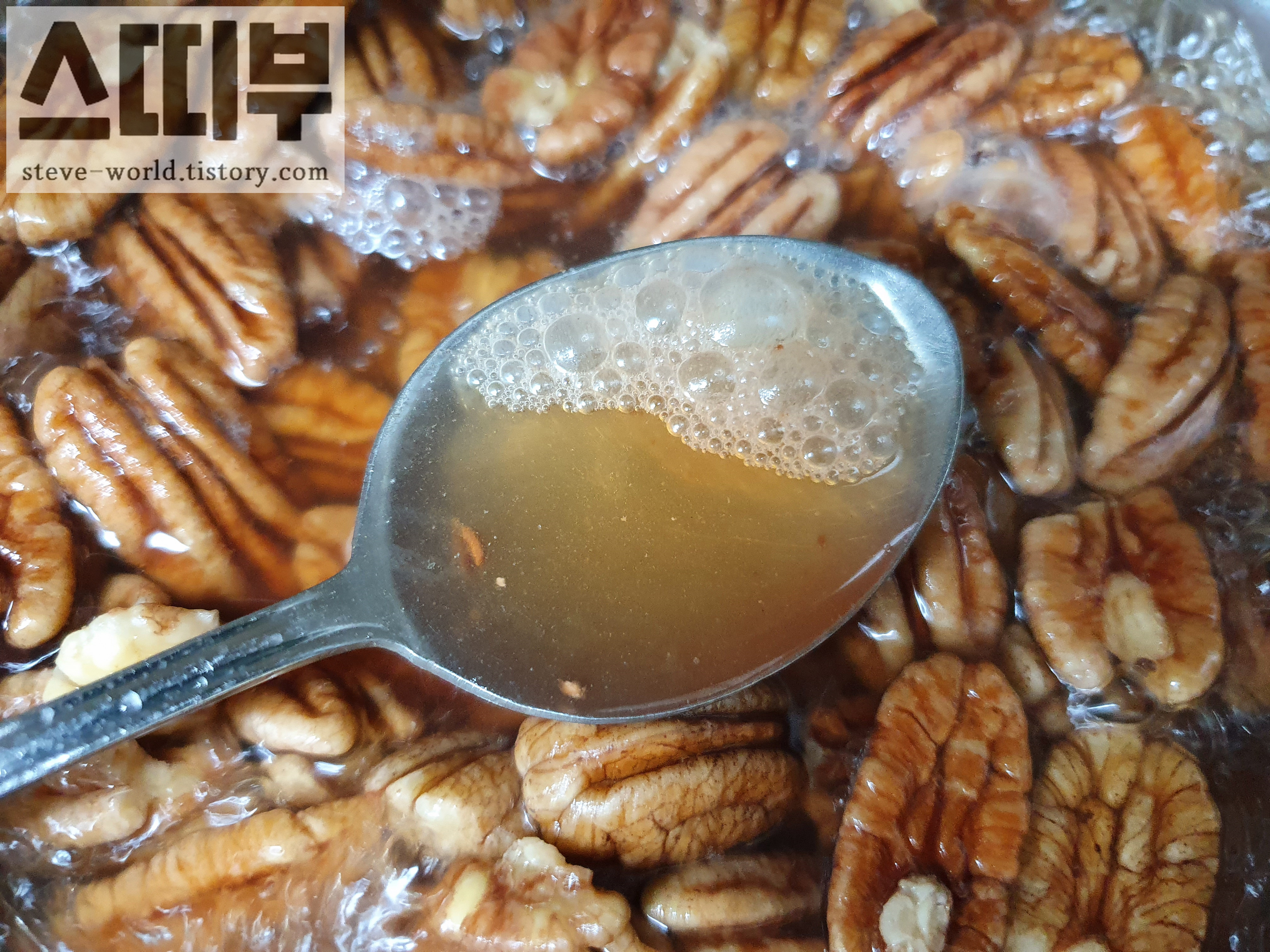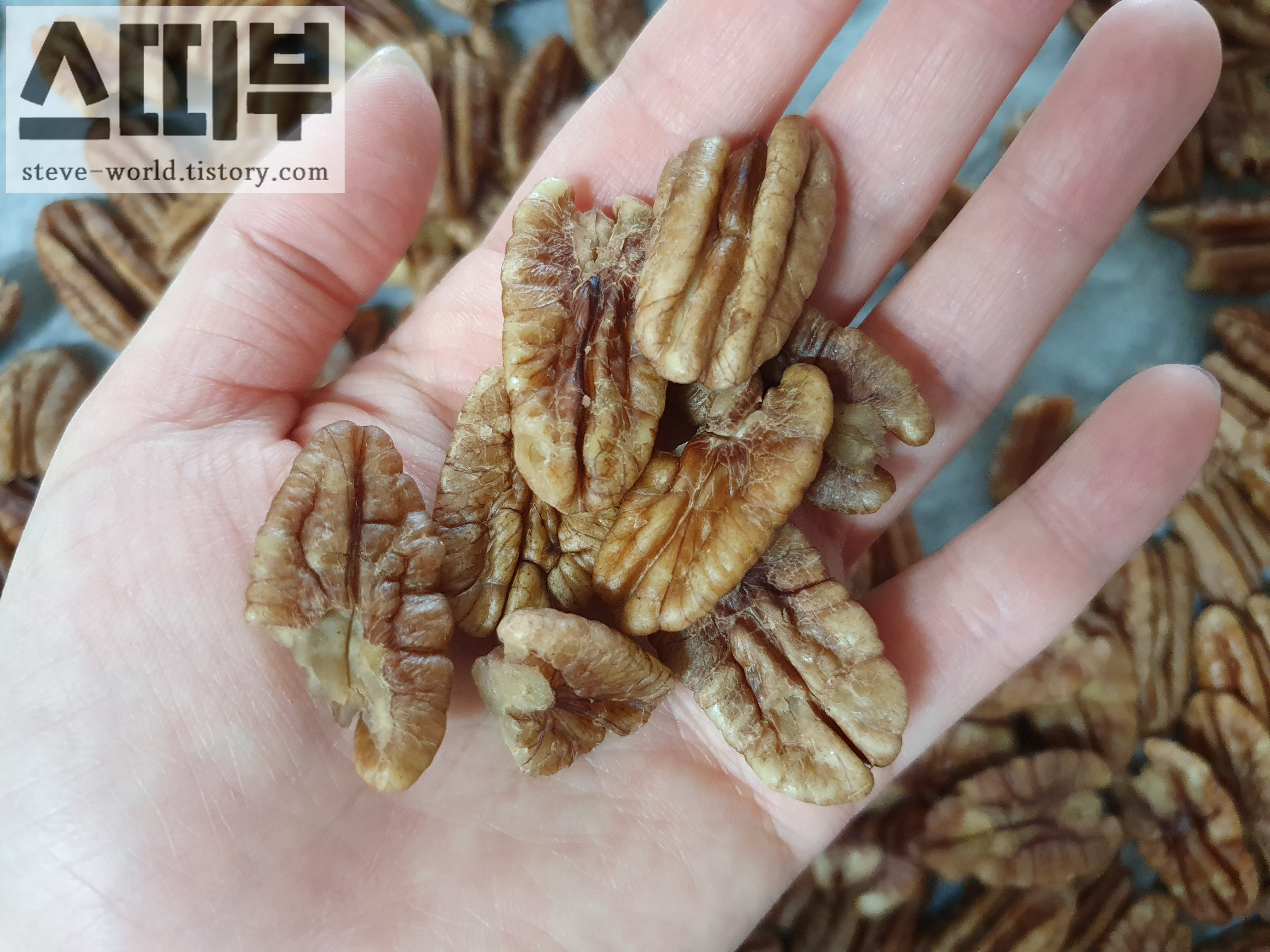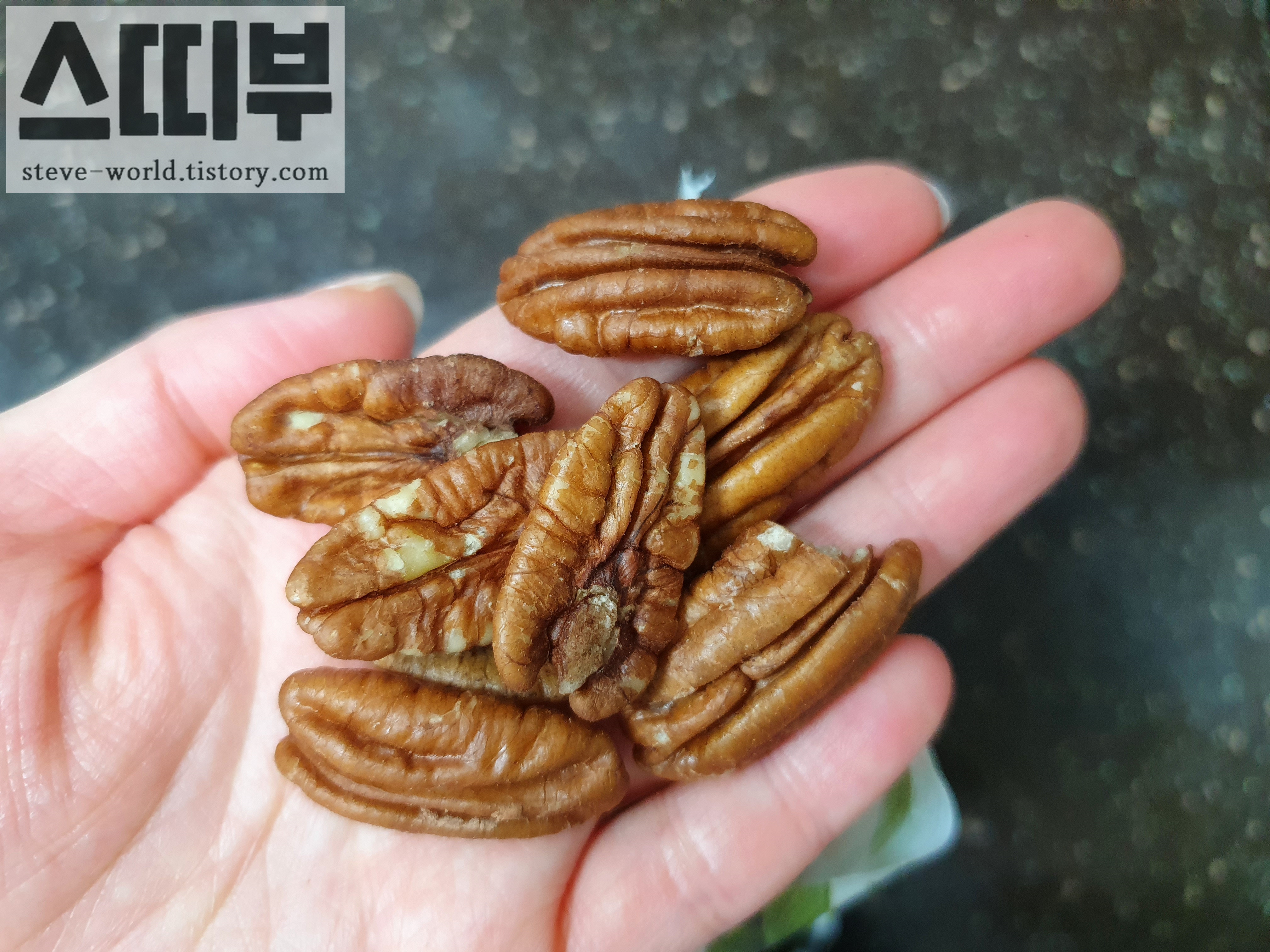 - 피칸 전처리 : 끓는 물에 데쳐 불순물을 제거하고, 마른 팬에 한번 볶아주었습니다.