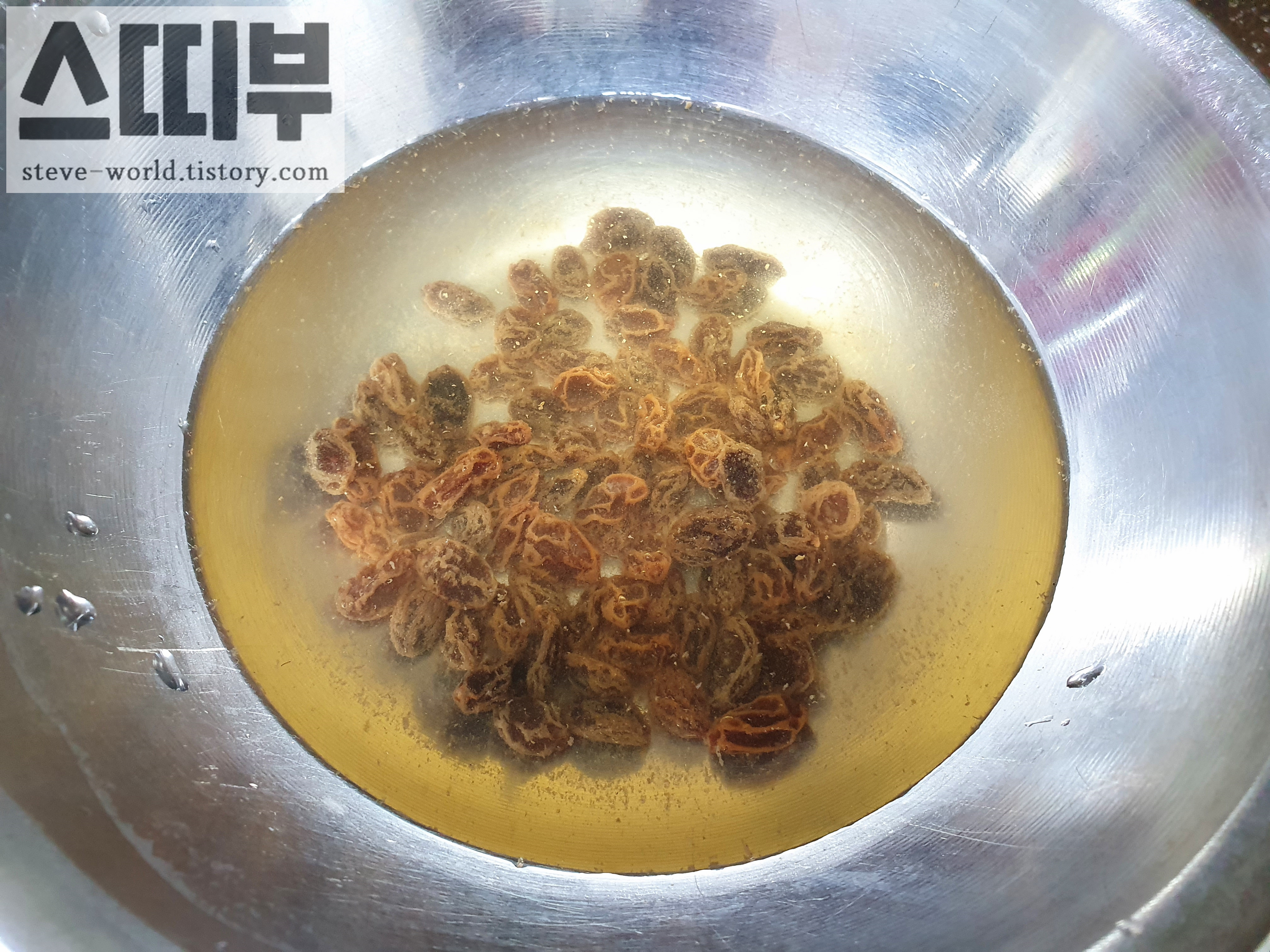 - 건포도 전처리 : 뜨거운 물에 1분 정도 담가 기름기를 제거하고 여러 번 깨끗한 물로 헹군 후 체에 밭쳐 물기를 털고 키친타올에 물기를 한번 더 제거해서 사용했습니다.