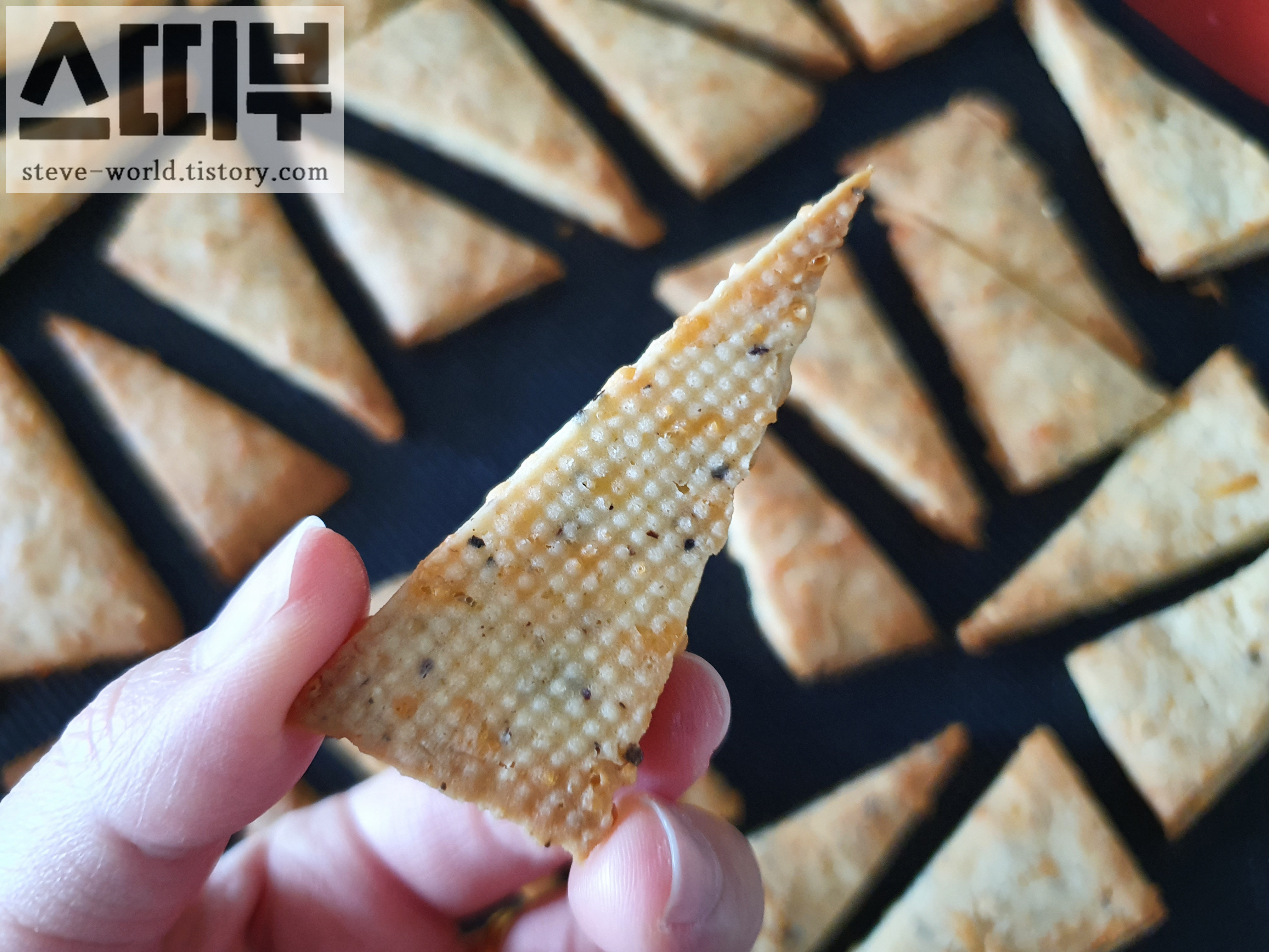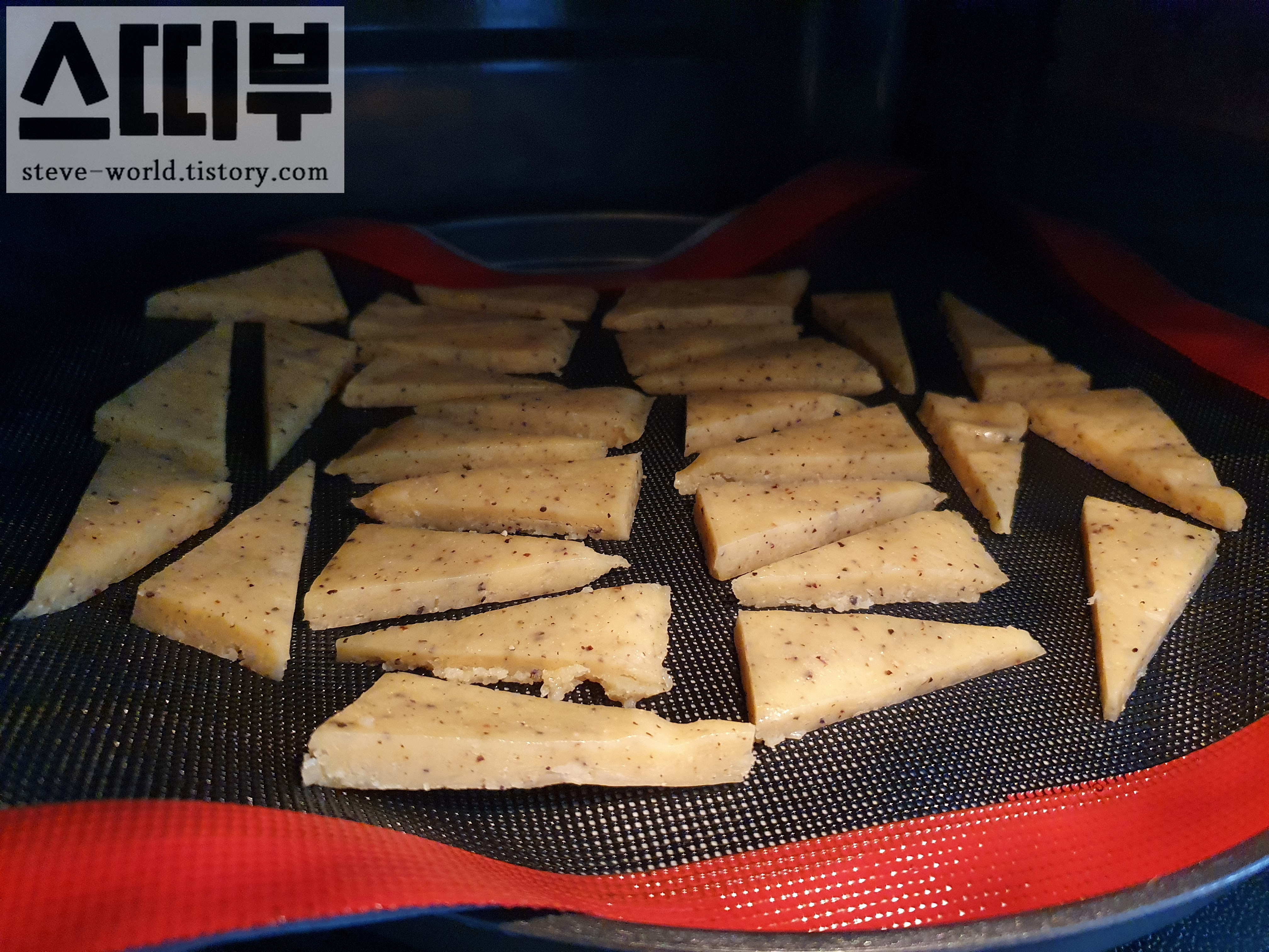 이번 치즈 페퍼 쿠키를 위해 타공 매트를 구매했는데, 타공 매트를 재단하지 않고 사용했더니, 매트가 좀 울어있습니다.