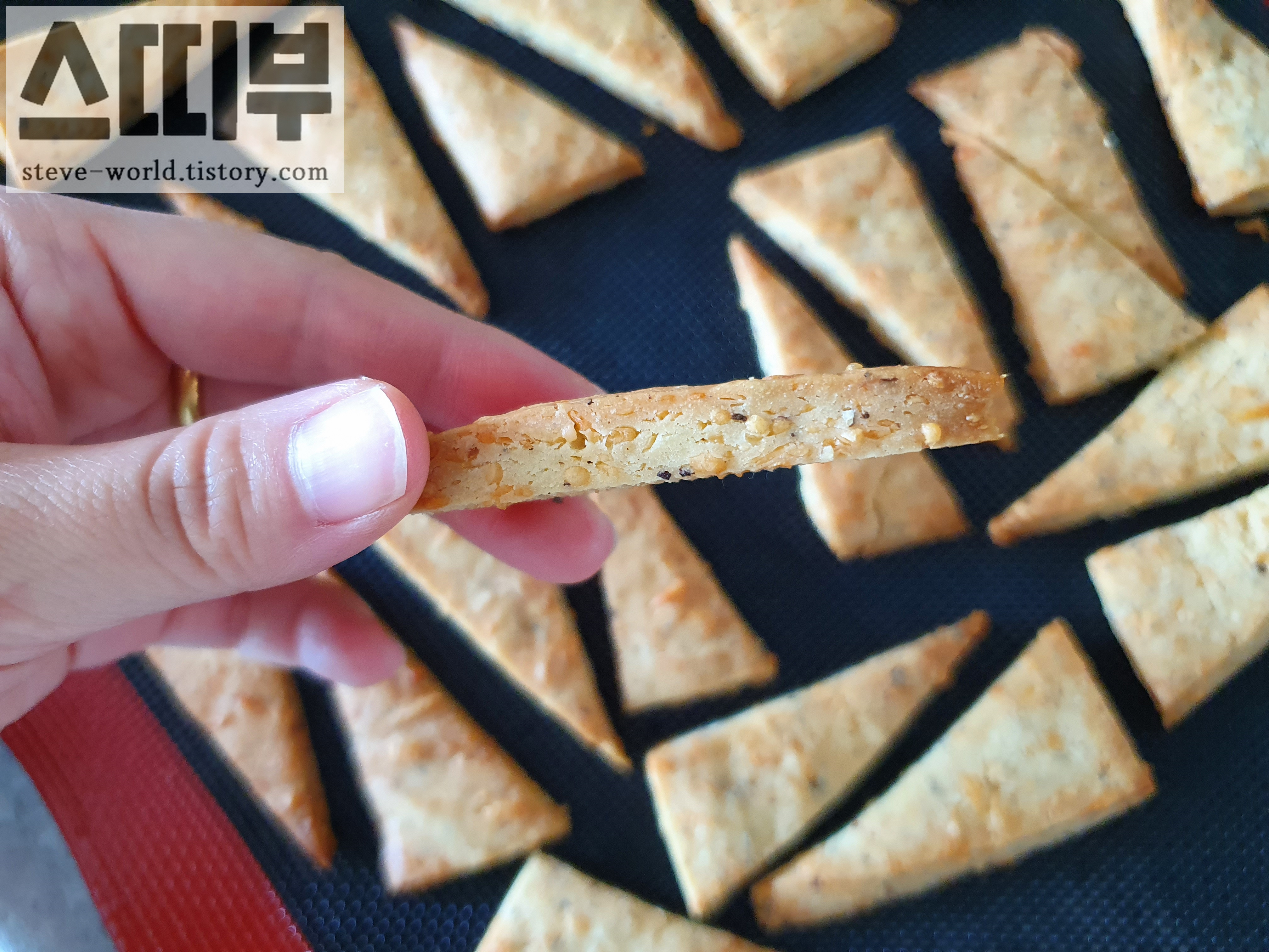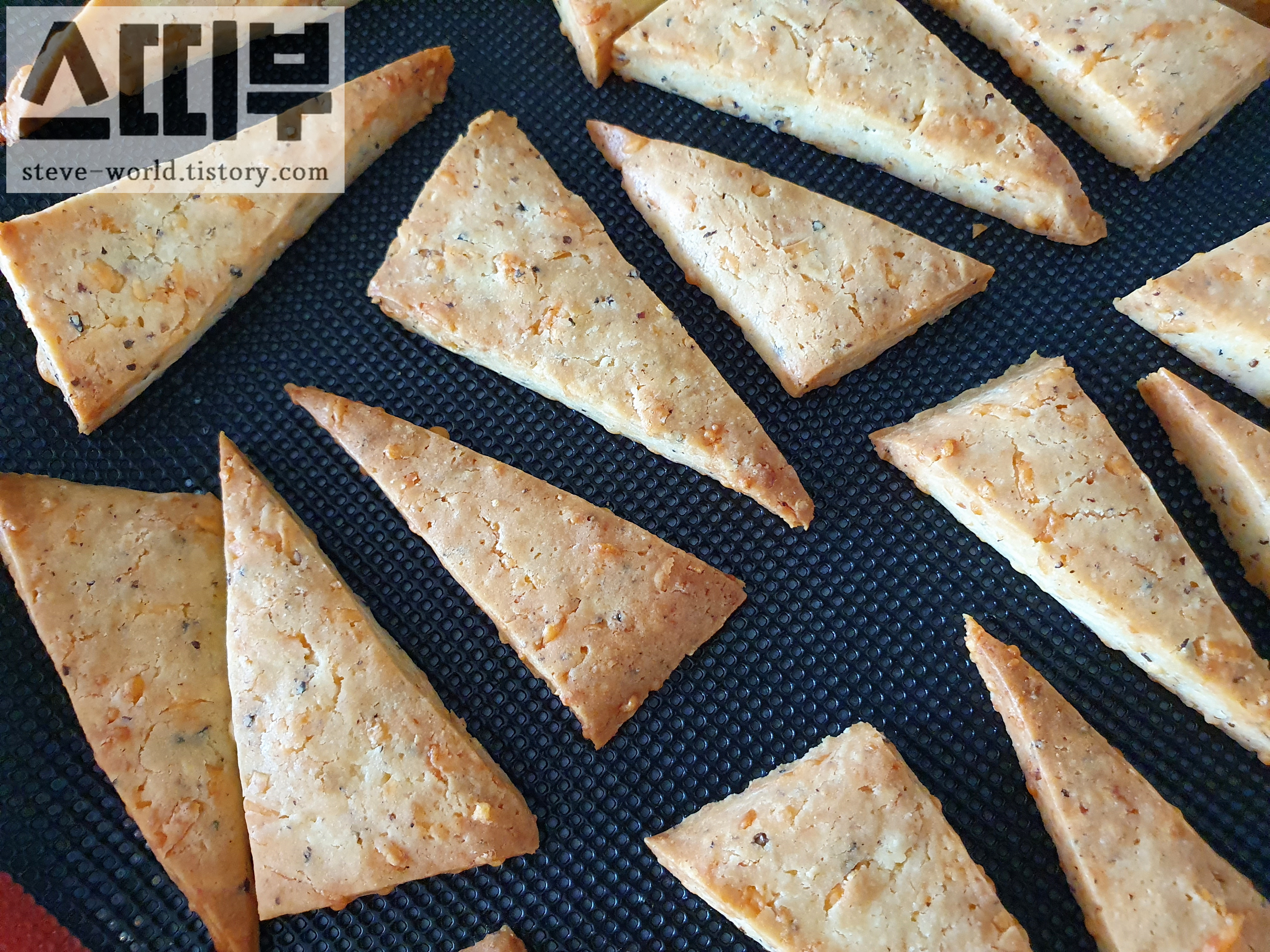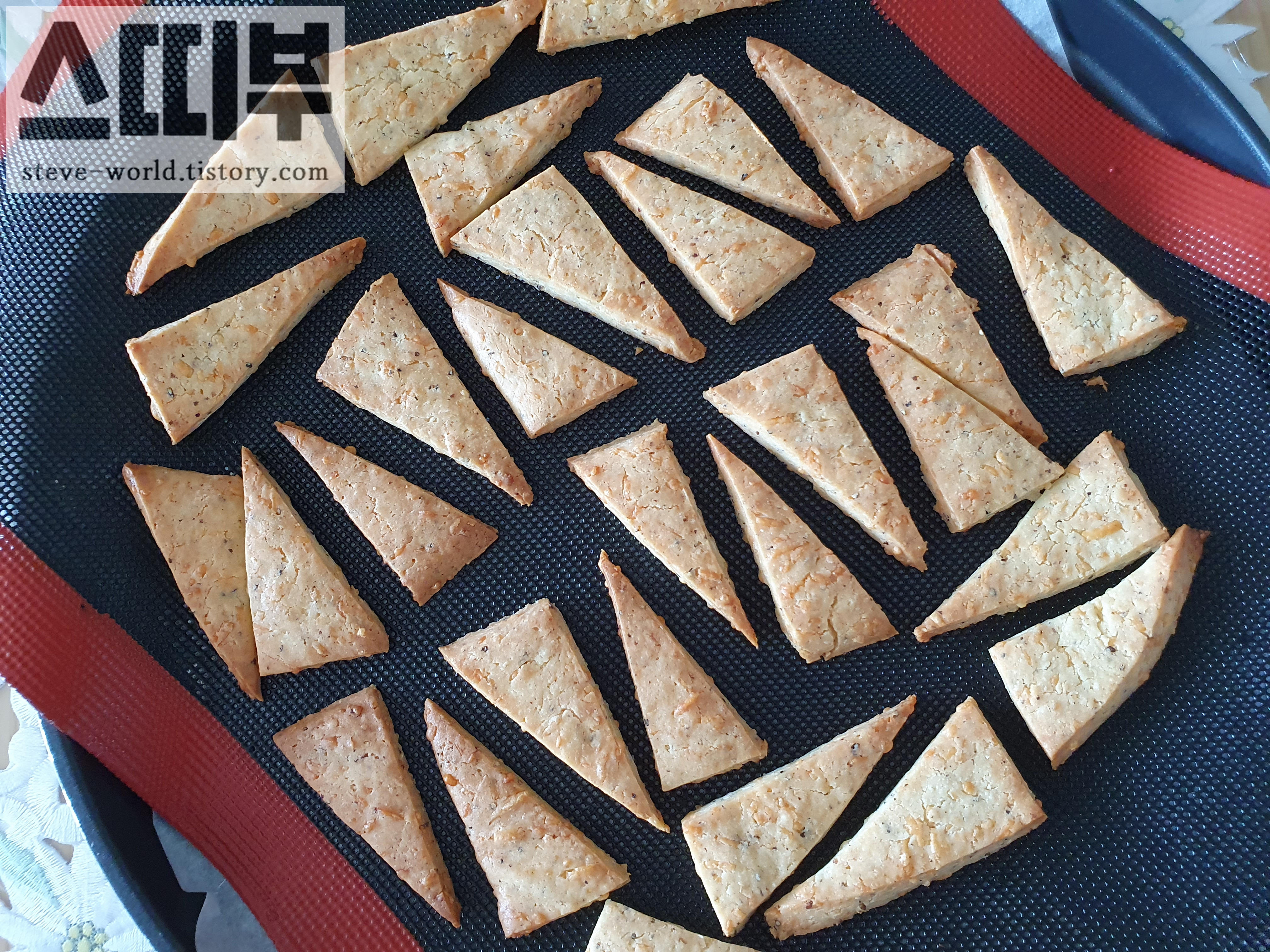 이번 치즈 페퍼 쿠키를 위해 타공 매트를 구매했는데, 타공 매트를 재단하지 않고 사용했더니, 매트가 좀 울어있습니다.