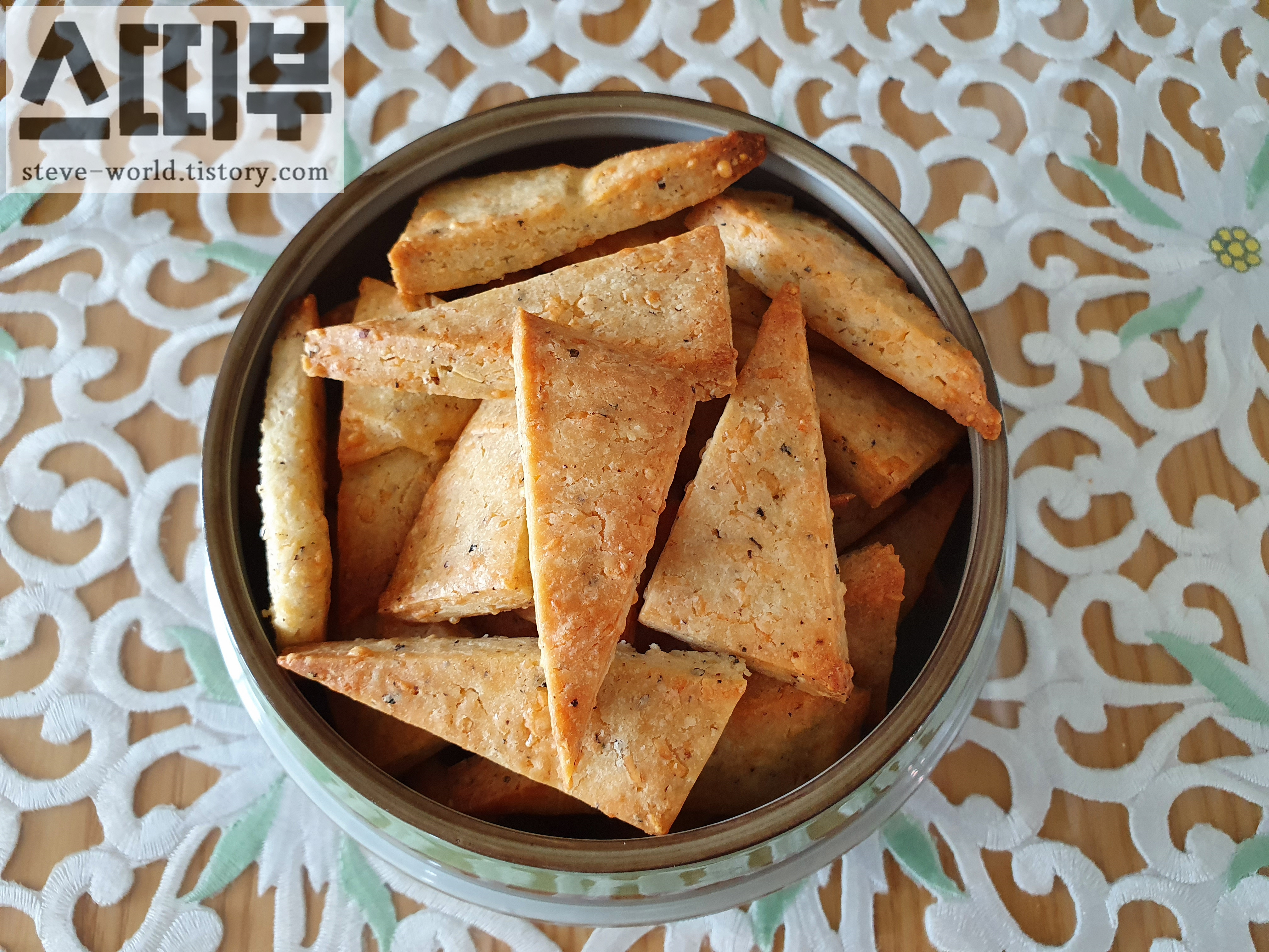 방콕하기 좋은 비 오는 날 손쉽게 만들 수 있는 짭짤한 쿠키를 소개하려고 합니다. 맥주나 콜라와 함께 먹기 좋은 짭짤한 치즈 페퍼 쿠키입니다. 후추의 매콤한 맛이 중독적입니다. 고소한 치즈향 나는 쿠키를 한가득 쌓아두고 맥주와 함께 넷플릭스 즐기기에 딱 좋습니다.
