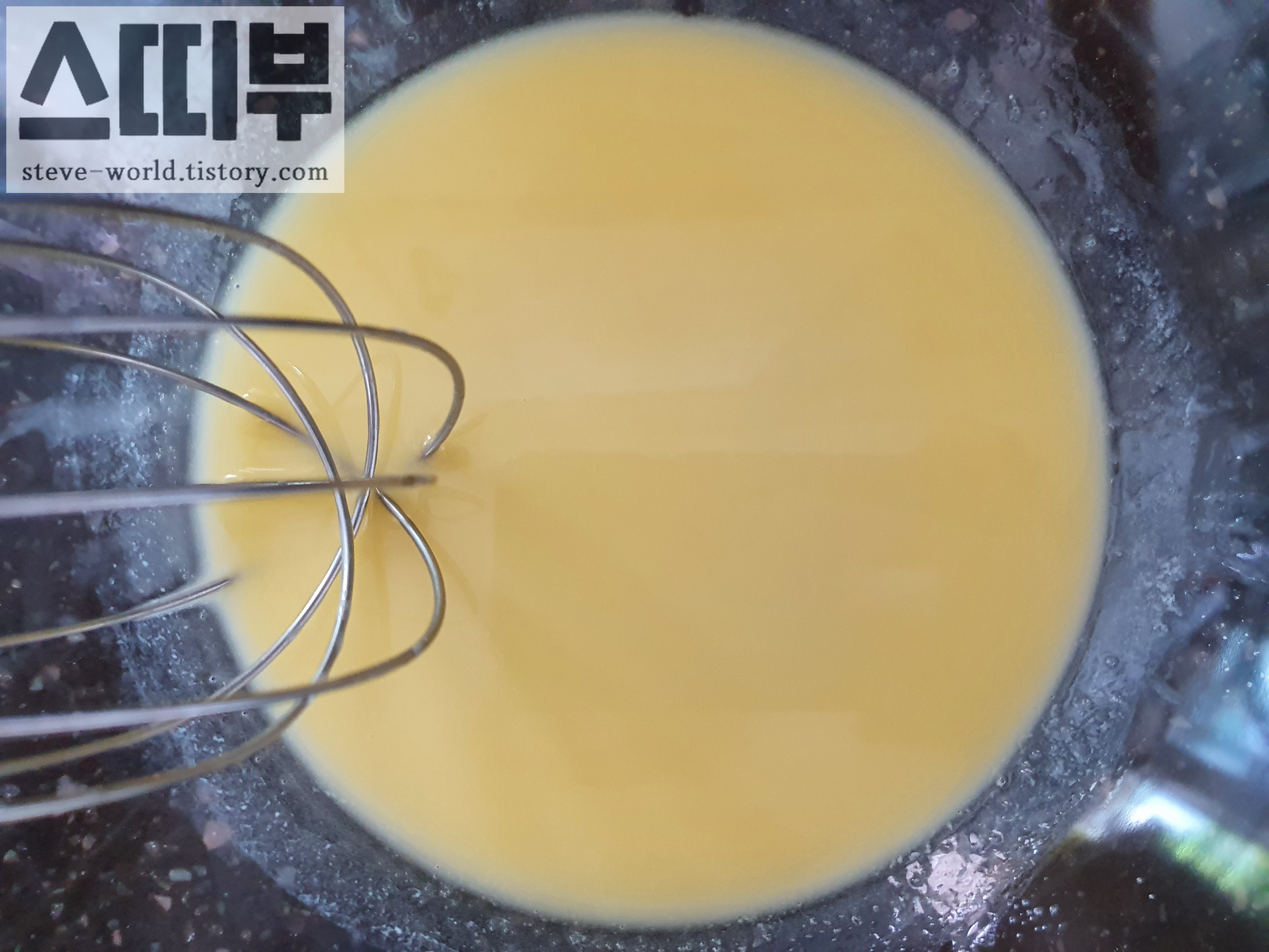 [3] 실온의 계란을 넣고 가볍게 섞습니다.